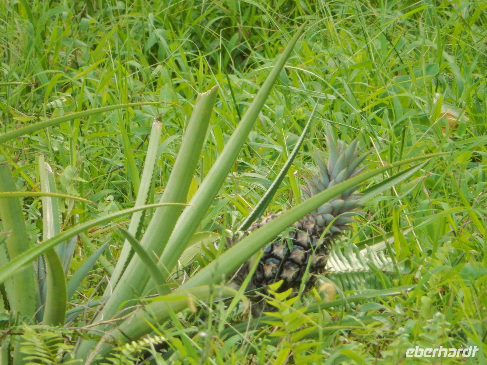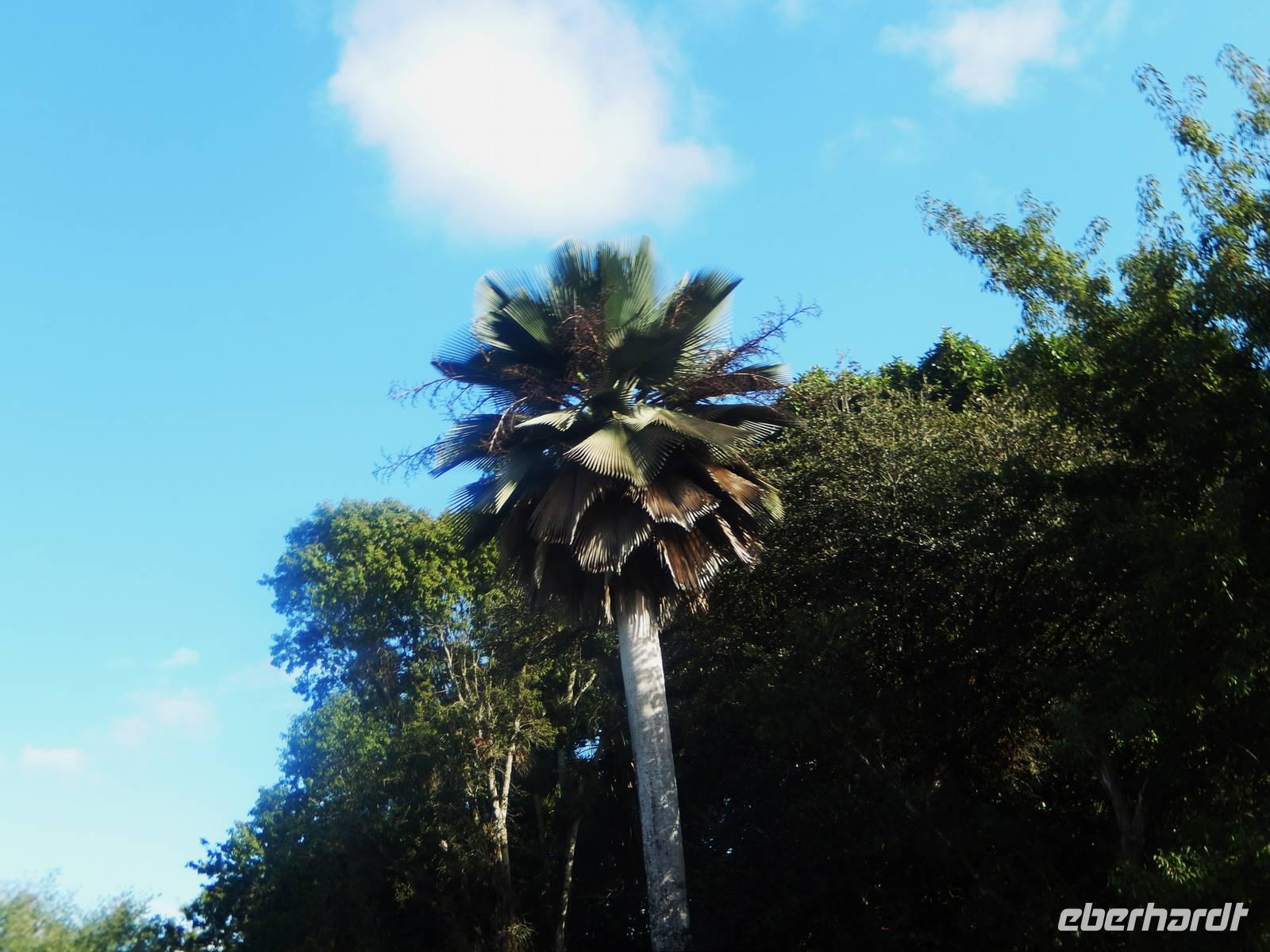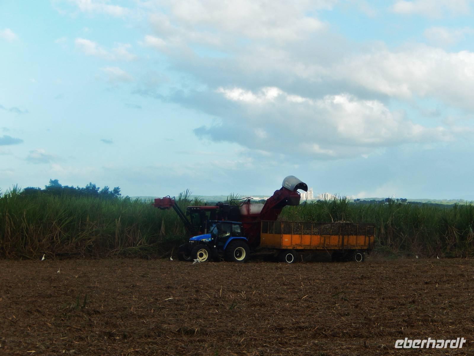 Nach dem Mittagessen fahren wir weiter zu einem Botanischen Garten. Auf der Fahrtstrecke wird an einem Feld zufällig gerade Zuckerrohr geerntet. Wir halten und sehen es mit einer Hexlermaschine abgeerntet wird. Luis erklärt uns den Unterschied der maschinellen Ernte und der traditionellen Erne per Machete.