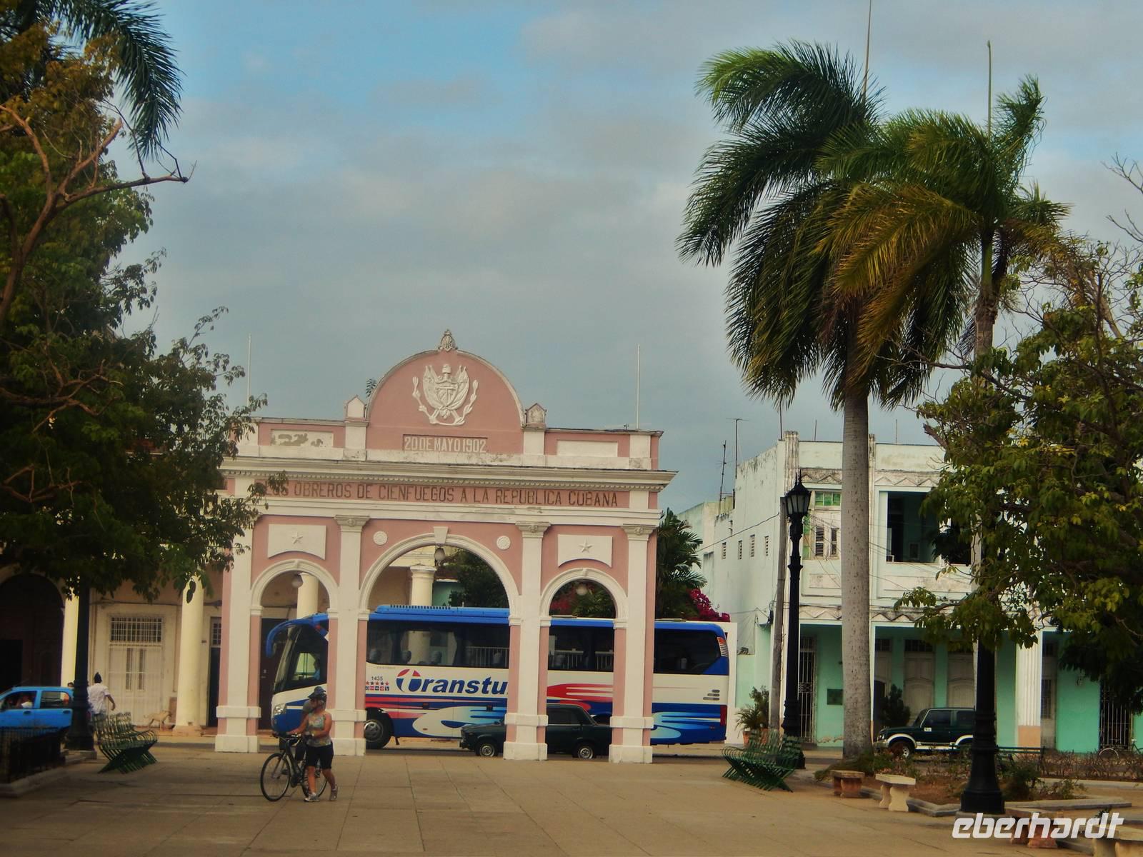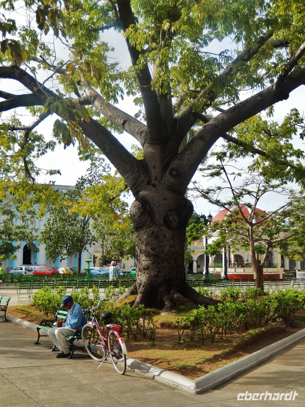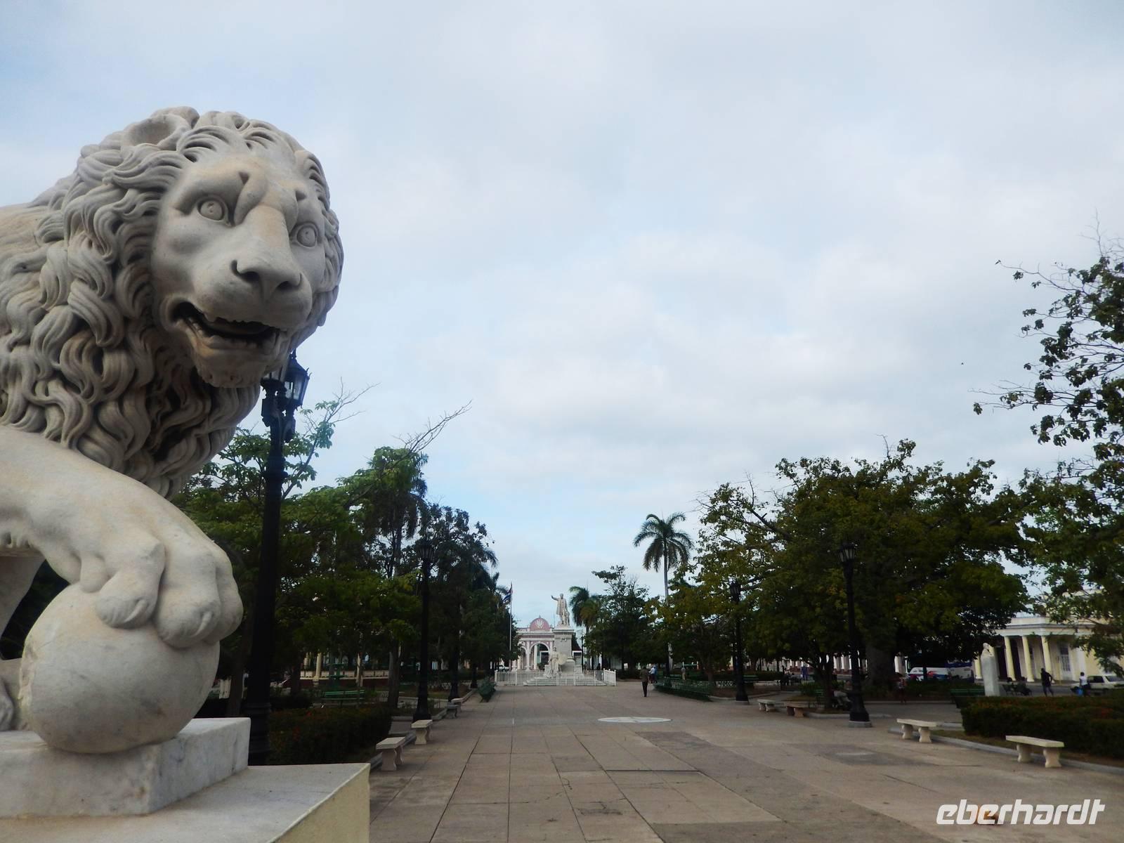 Nach einem leckeren Frühstück spazieren wir in Cienfuegos Zentrum. Die 1819 gegründete Kolonialstadt birgt viel Geschichte und interessante Bauwerke. Verständlich, dass Cienfuegos den Beinamen Perle des Südens trägt. Beim Spaziergang auf der mit drei Kilometern längsten Allee von Kuba, dem Prado, finden wir viele Hinweise auf den hier hoch verehrten Musiker Benny More. Weiter geht es auf der Boulevard, der belebten Einkaufsstraße, zum Parque Marti. Hier befindet sich das Teatro Terry, eines der prunkvollsten Theater des Landes. Nach einem kurzen Besuch des Souvenirmarktes fahren wir weiter zum Höhepunkt des heutigen Tages, dem Mausoleum von Che Guevara. Auf halber Strecke halten wir an einem Zuckerrohrfeld, Luis holt seine immer bei sich tragende Machete und zeigt uns wie man traditionell Zuckerrohr erntet. Das dürfen wir natürlich auch selbst probieren und kauen anschließend alle auf dem frisch geernteten Zuckerrohr. Unsere Zähne waren nicht gerade begeistert. Auf der Weiterfahrt schauen wir einen Film über das Leben und Wirken von Che Guevara. Der Revolutionär hat sich bis zum heutigen Tag weltweit als Mythos und Ikone etabliert, sein Gesicht ziert Hauswände und ist auf riesigen Postern in ganz Kuba zusehen. Wer ist dieser Mensch, und warum hat dieser Argentinier eine so enorme Bedeutung für die Kubaner? All das erfahren wir im Museum und durch Luis ergänzende Erläuterungen. Wir erreichen Santa Clara, die Che Guevara Stadt. Hier wurde der Sieg gegen Batista gefeiert und Che`s sterbliche Überreste geborgen. Nach kurzen Anstehen, beim immer sehr gut besuchten Mausoleum, gelanden wir ins Innere und gehen zunächst zu den Gräbern von Che Guevara und den anderen Revolutionären. Dann geht es weiter ins Museum, wo Fotos von Ernesto Guevara von Kindheitstagen bis zu seinen letzten Jahren in Bolivien zu sehen sind. Mitunter auch viele erhaltene Artefakten aus seinem Leben. Wieder Außen angekommen sehen wir uns das riesige, ihm zu Ehren erbaute, Monumento y Memorial an. Auf einem gewaltigen Steinquader thront eine ca. 7 Meter hohe Statue von Che, mit ehrenden Zitaten.