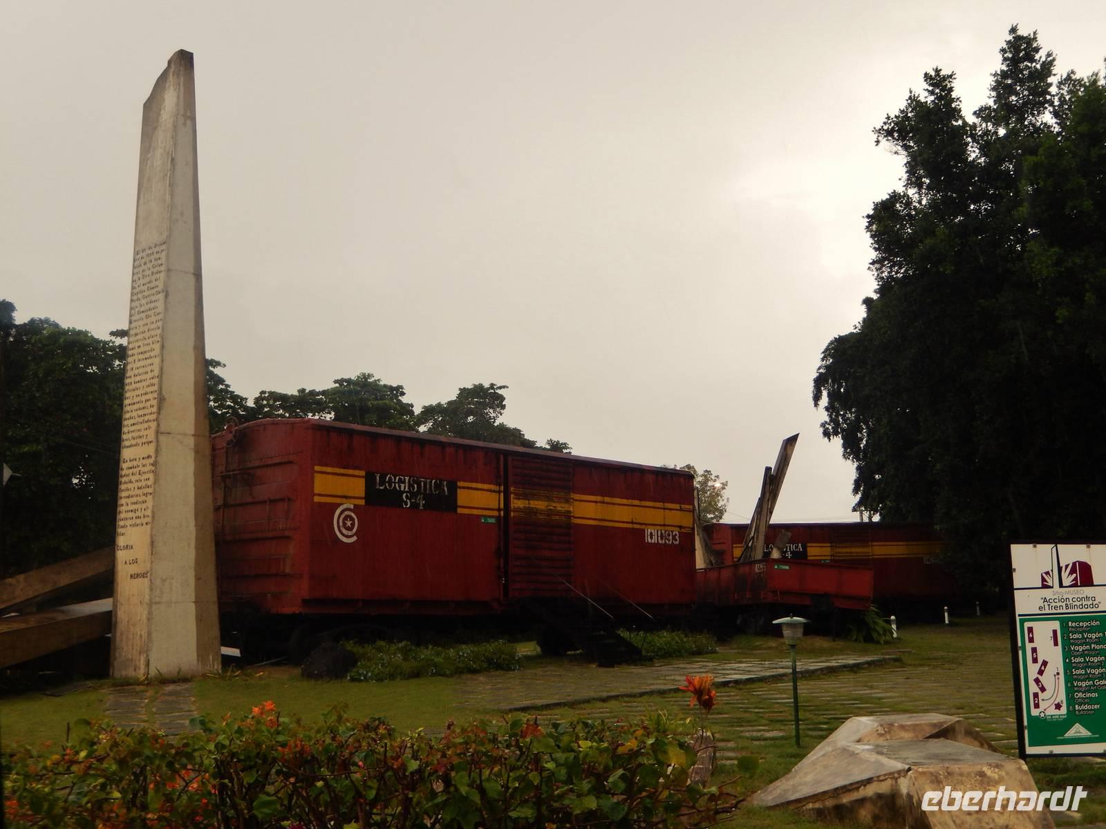 In der Che Gevara Stadt Santa Clara angekommen, unternehmen wir einen Spaziergang durch deren schöne Gassen und Straßen. Hier werden wir in die Zeit der Revolution versetzt: wir sehen das elfstöckige Hochhaus Santa Clara Libre, eine Bastion von Batistas Soldaten, die heute noch unzählige Einschusslöcher aufweist. Den berühmten Tren Blindado schauen wir uns nur vom Bus aus an, denn es regnet wie verrückt. Der gepanzerte Zug mit 400 bewaffneten Soldaten, den Batista damals zur Verstärkung beim Kampf geschickt hatte, wurde hier in Santa Clara von 14 Revolutionären siegreich eingenommen. Ein sehr bedeutendes Ereignis in der Revolutionsgeschichte von Kuba.