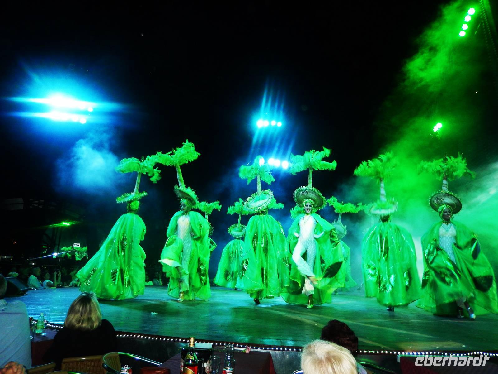 Um sieben Uhr fahren wir zu einem Restaurant am Hafen und genießen ein leckeres Menü aus Meeresfrüchten oder traditionellem Hühnchen. Später spazieren wir am Hafen entlang zu unserem Bus. Punkt 21.00 Uhr vernehmen wir einen lauten Knall, den täglichen Kanonenschuss. Wie schön doch Havanna bei Nacht ist! Dann brechen wir voller Vorfreude auf, denn heute erwartet uns ein ganz besonderes Ereigniss: eine kubanische Tanzshow! Die eine Hälfte unserer Gruppe sieht sich das Cabaret Parisien in Havannas schönstem Hotel National an. Der andere Teil fährt noch einmal quer durch Havanna bis zur berühmten Tropicana Show. Wir lassen uns von bunten Kostümen, Akrobatik und schönsten Tänzen verzaubern. Um Mitternacht holt Che uns wieder ab und wir fallen müde, aber voller neuer Erlebnisse und Eindrücke ins Bett.