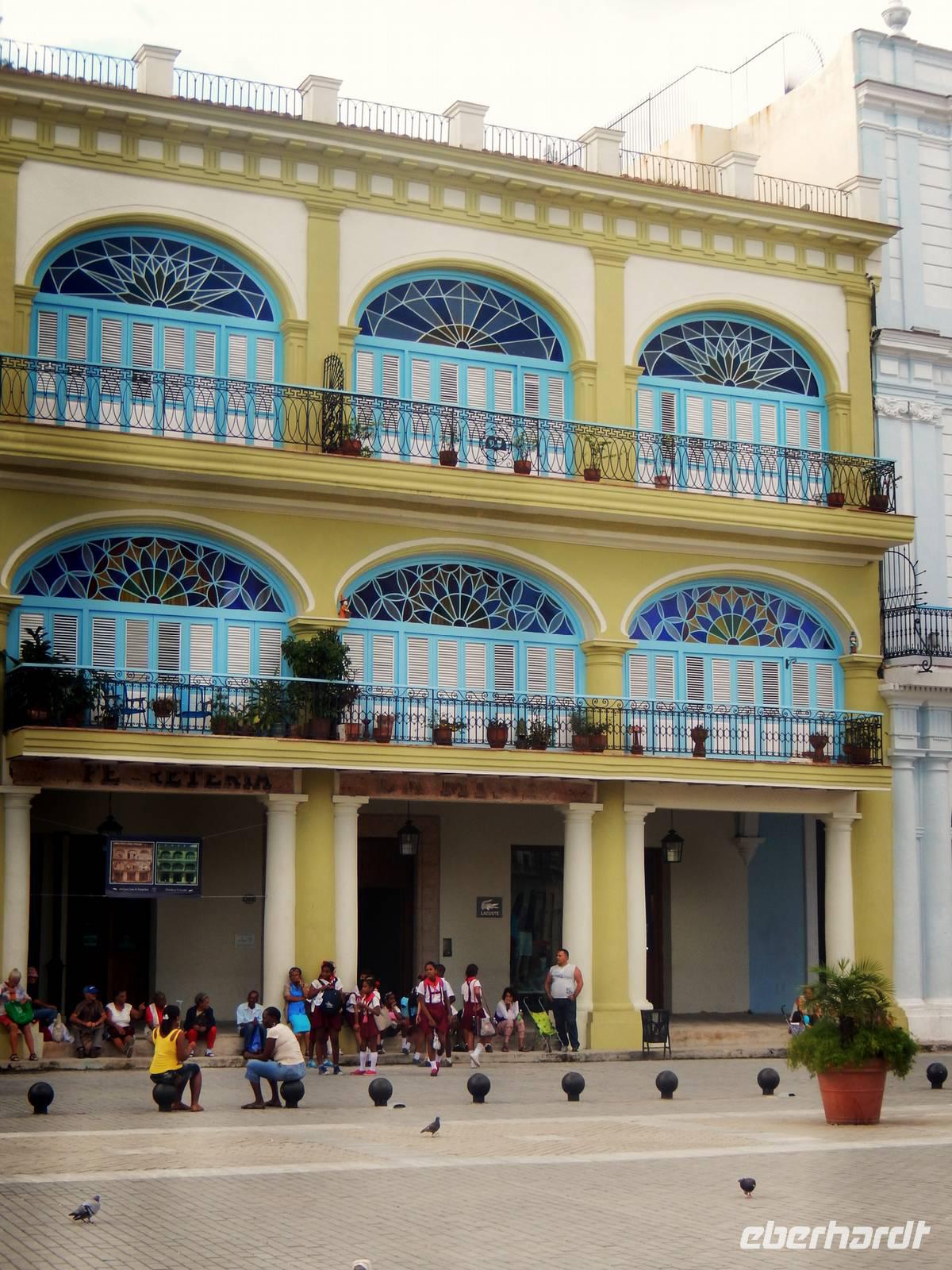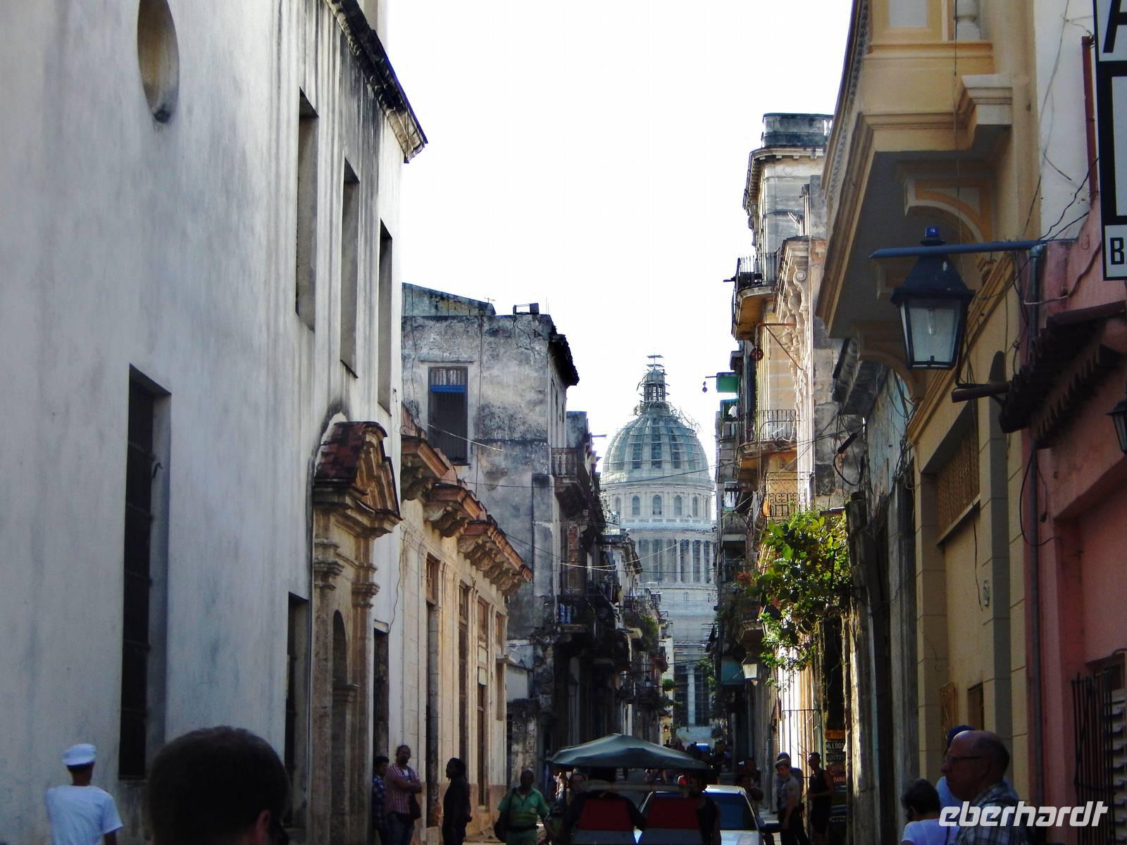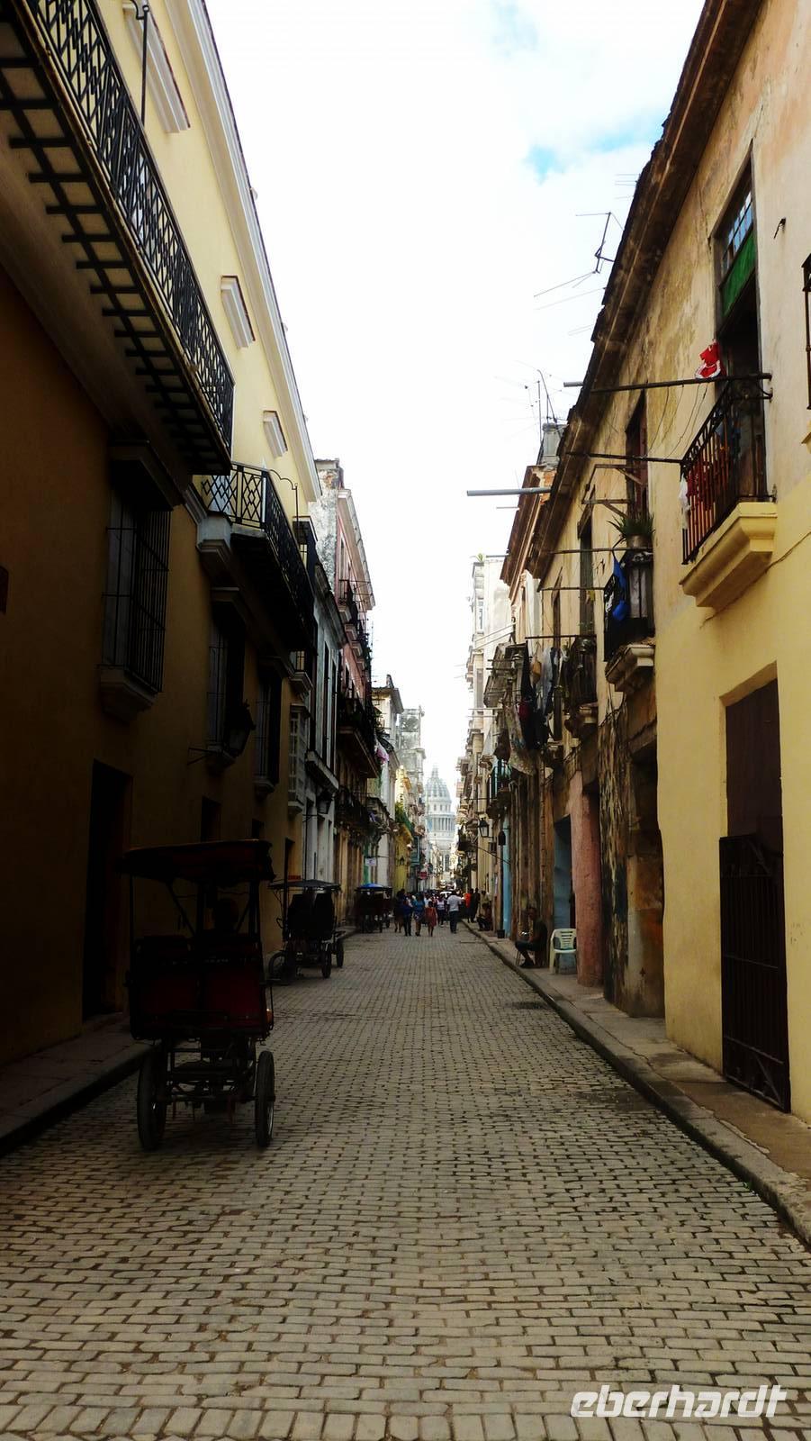 Nach dem Frühstück begeben wir uns zum Franz von Assisi Platz und laufen von hier aus zum Rum Museum. Von einer netten Frau namens Lido bekommen wir die Produktionsschritte und die Herstellung der berühmten Sorte Havanna Club erläutert. Eine wichtige Rolle spielt dabei auch die Zuckerrohrherstellung und -verarbeitung. Darunter auch spezielle Sorten, die bei uns in Deutschland nicht zu finden sind. Dazu gehören zum Beispiel der Gran Reserva mit 15-jährigem Rum. Anschließend gelangen wir zur Havanna Club Bar, wo wir lernen wie man einen richtigen Mojito mixt. Natürlich wurde auch gleich verkostet. Später spazieren wir am Hafen entlang und fahren dann in eine andere Ecke Havannas. Wir legen einen Fotostopp am Revolutionsplatz ein und bestaunen das riesige Konterfei von Che Guevara am Innenministerium. Einige Blocks weiter gelangen wir zum Cementario Colon, zum Friedhof Kolumbus. Luis führt uns hindurch, er weiß wo die berühmten und interessantesten Gräber zu finden sind. Besonders berührt hat uns das Grab der Amelia, die bei der Geburt Ihres Kindes gestorben ist. Durch einige Wunder, die hier geschehen sind, hat sich das Grab zur Pilgerstätte entwickelt. Familie, Mütter, Väter beten hier für Ihre Kinder, das Grab ist voller Dankestafeln für die in Erfüllung gegangenen Wünsche. Gegen Mittag fahren wir in ein Restaurant im vornehmen Viertel Playa, welches mit vornehmen Häusern und Botschaften glänzt. Wir verzehren ein leckeres Menü aus Maniok, Kochbananen, Broiler, dazu Eis und Kaffee. Nun fängt es schon wieder zu regnen an. Somit verschieben wir den geplanten Stadtrundgang und fahren auf einen riesigen Kunstmarkt, der von Souvenirverkäufern nur so zu bersten scheint. Hier kann man günstig schöne Gemälde kaufen, welche es in Deutschland nur zu horrenden Preisen geben würde. Als das Wetter wieder besser wird, brechen wir zu einem Spaziergang vom Frank von Assisi Platz bis hinunter zur Plaza Vieja auf. Eine schöne Strecke mit vielen interessanten Gebäuden und Hotels. Wir schauen uns zum Beispiel ein schönes kleines Hotel an, welches früher ein Franziskanerkloster war, und nun auch von Franziskanern bzw. als Franziskaner verkleideten Personal betrieben wird. Dann geht es weiter aus der Calle Brasil, für mich die Lieblingstraße in Havanna. Auf dem Weg bekommt man einen guten Eindruck über das Leben der Centrohabaneros. Die enge Gasse gibt den Blick auf das Capitol frei, wir laufen unter wäschebehangenen, baufälligen Balkonen die einen einzigartigen Charme versprühen. Hier bieten sich unzählige Gelegenheiten für Fotografieliebhaber. Danach geht es am Capitol vorbei wieder ins Hotel, wo wir im Pool auf der Dachterrasse auf dem letzten Stock des Hotels entspannen und uns anschließend zum Abendessen wieder versammeln.