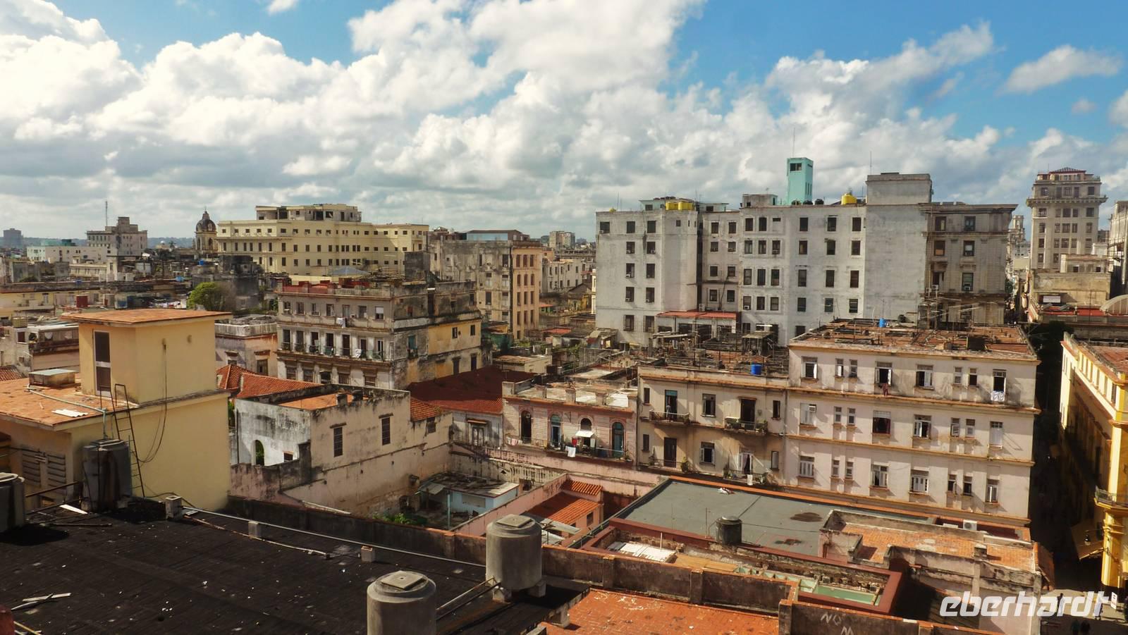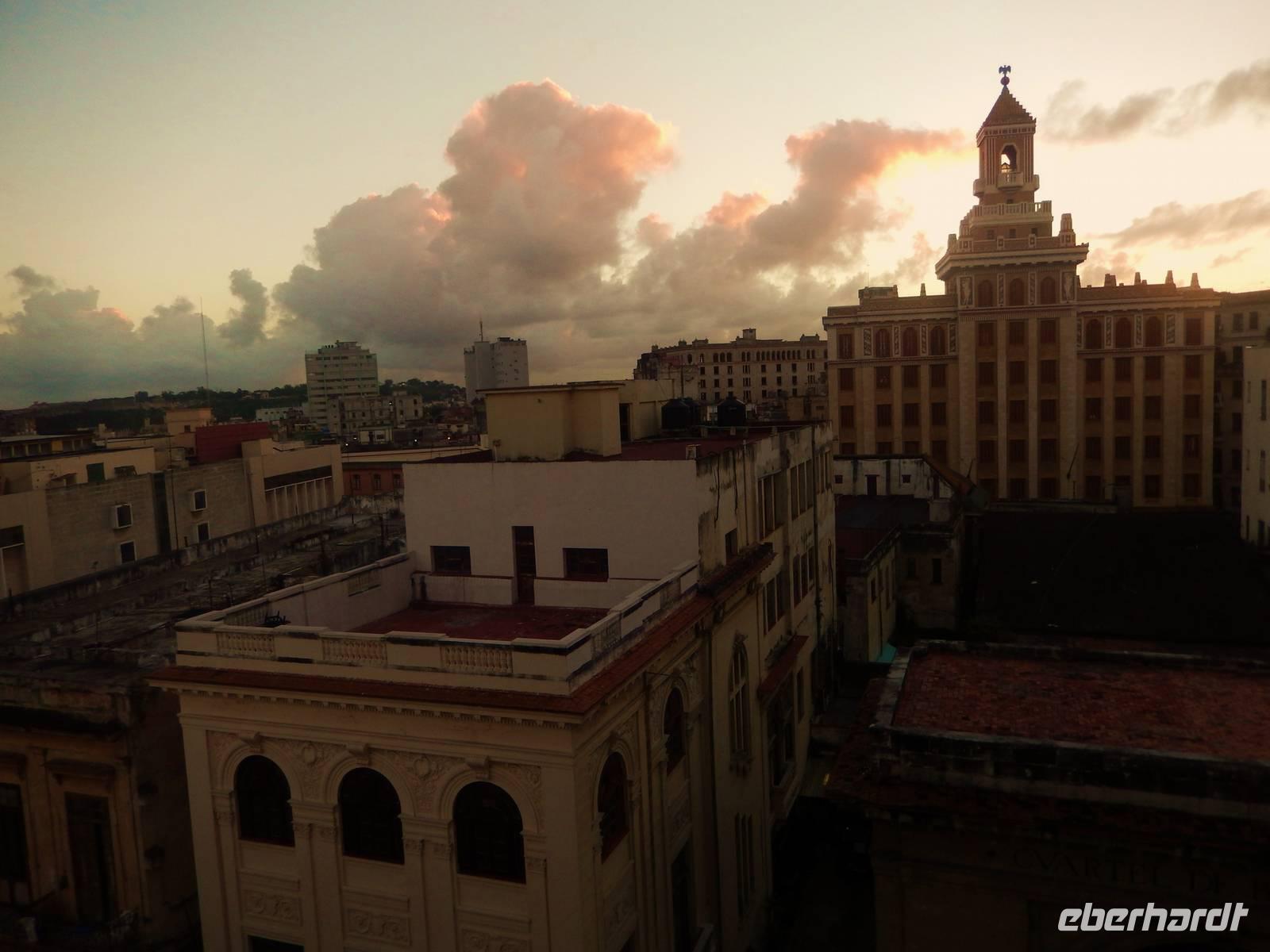 Dann ist Freizeit angesagt, jeder kann nach seinen Vorstellungen die Stadt erkunden. Vorher gibt es aber noch gemeinsam einen leckeren Kaffee, Cappuchino oder Mojito auf der Hotelterrasse zu trinken. Wer Lust hat, bestaunt den Sonnenuntergang hinter der zerfallenen Häuserfront auf dem Dach des Hotels. Ein atemberaubender Anblick!