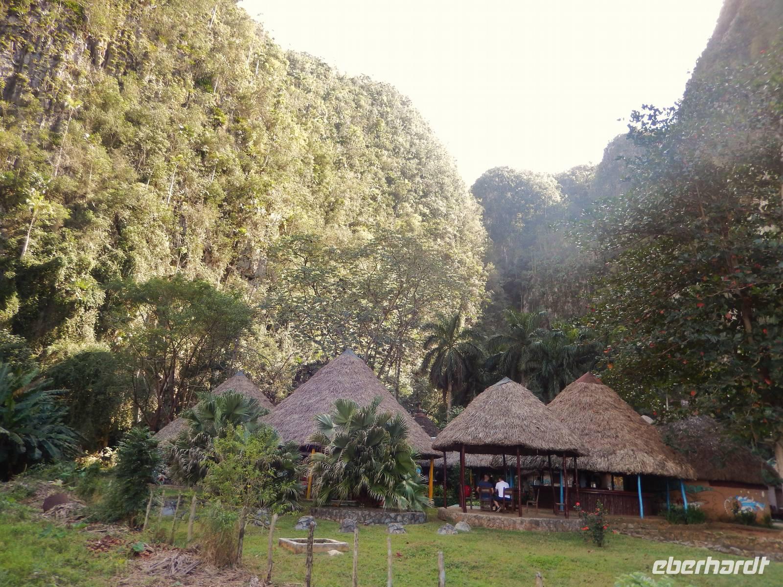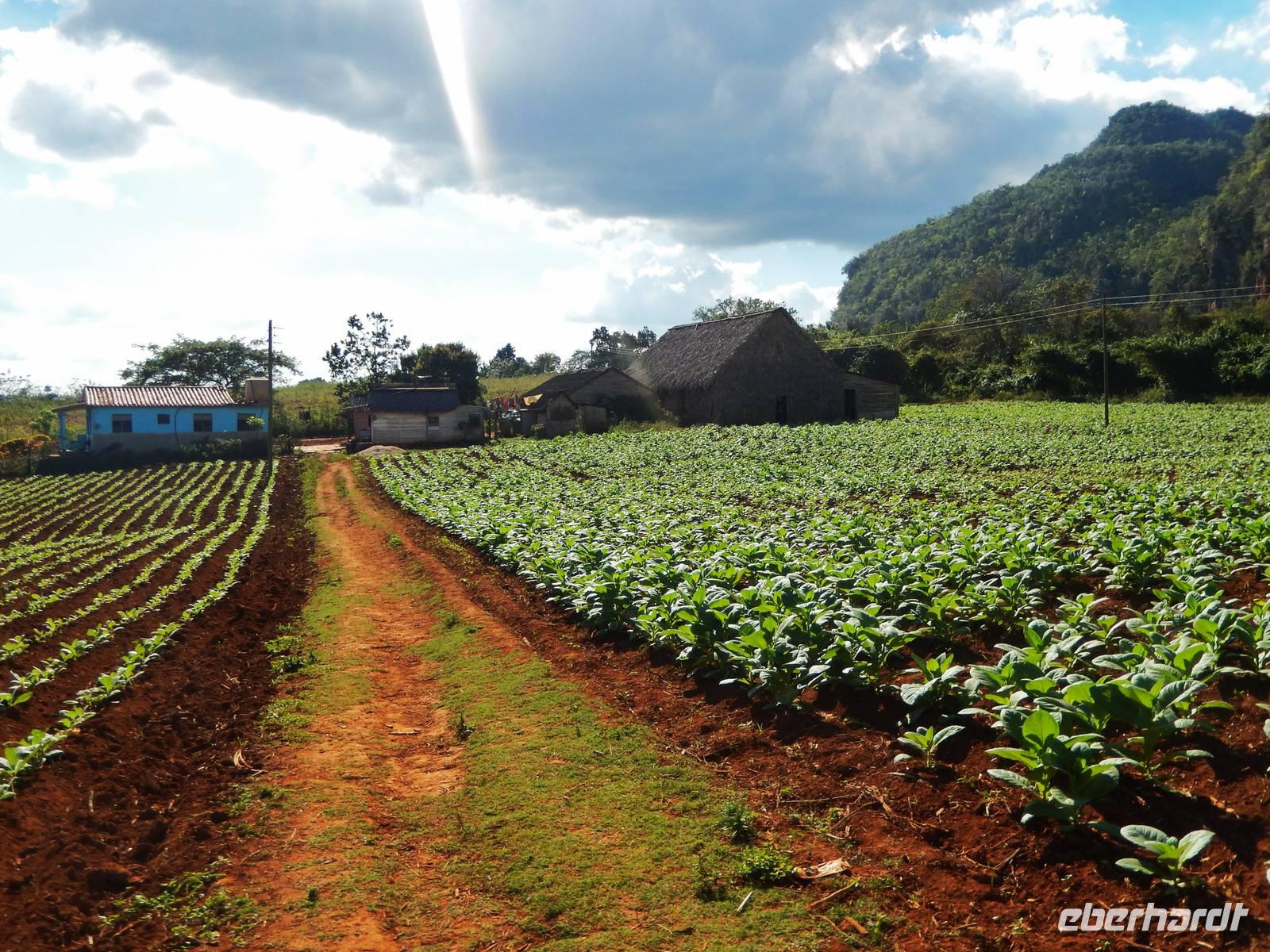 In Pinar del Rio unternehmen wir später einen ausgedehnten Spaziergang durch das Dorf über die nahegelegenen Tabakfelder und besichtigen ein Tabakhaus und das Haus einer Familie von Tabakbauern. Da wir noch nicht müde sind, fahren wir zusätzlich noch weiter in die Höhle Cueva del Indio. Für nur 5 CUC kann man hier eine riesige, ca. 165 Jahre alte Höhle besuchen. Nach einen kleinen Entdeckungsspaziergang durch das Höhlenlabyrinth, durchqueren wir diese weiter auf einem Boot und bestaunen riesige Stalagmiten und Stalagtiten.