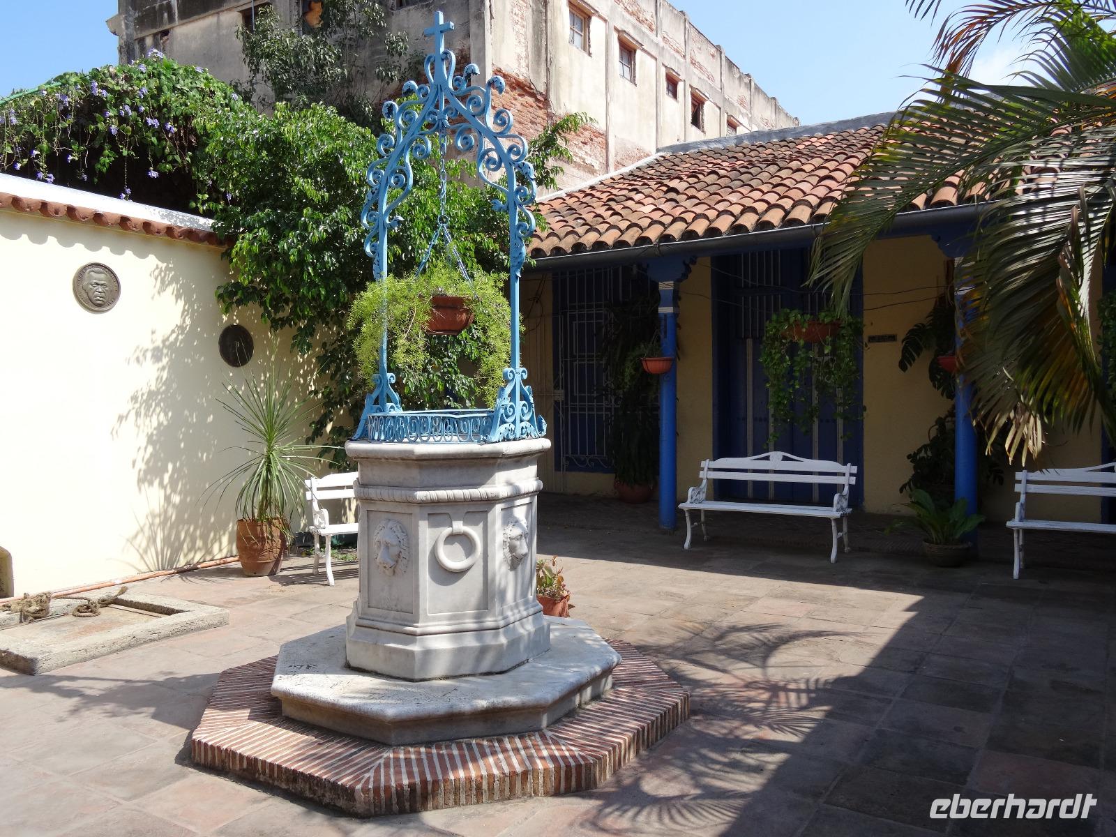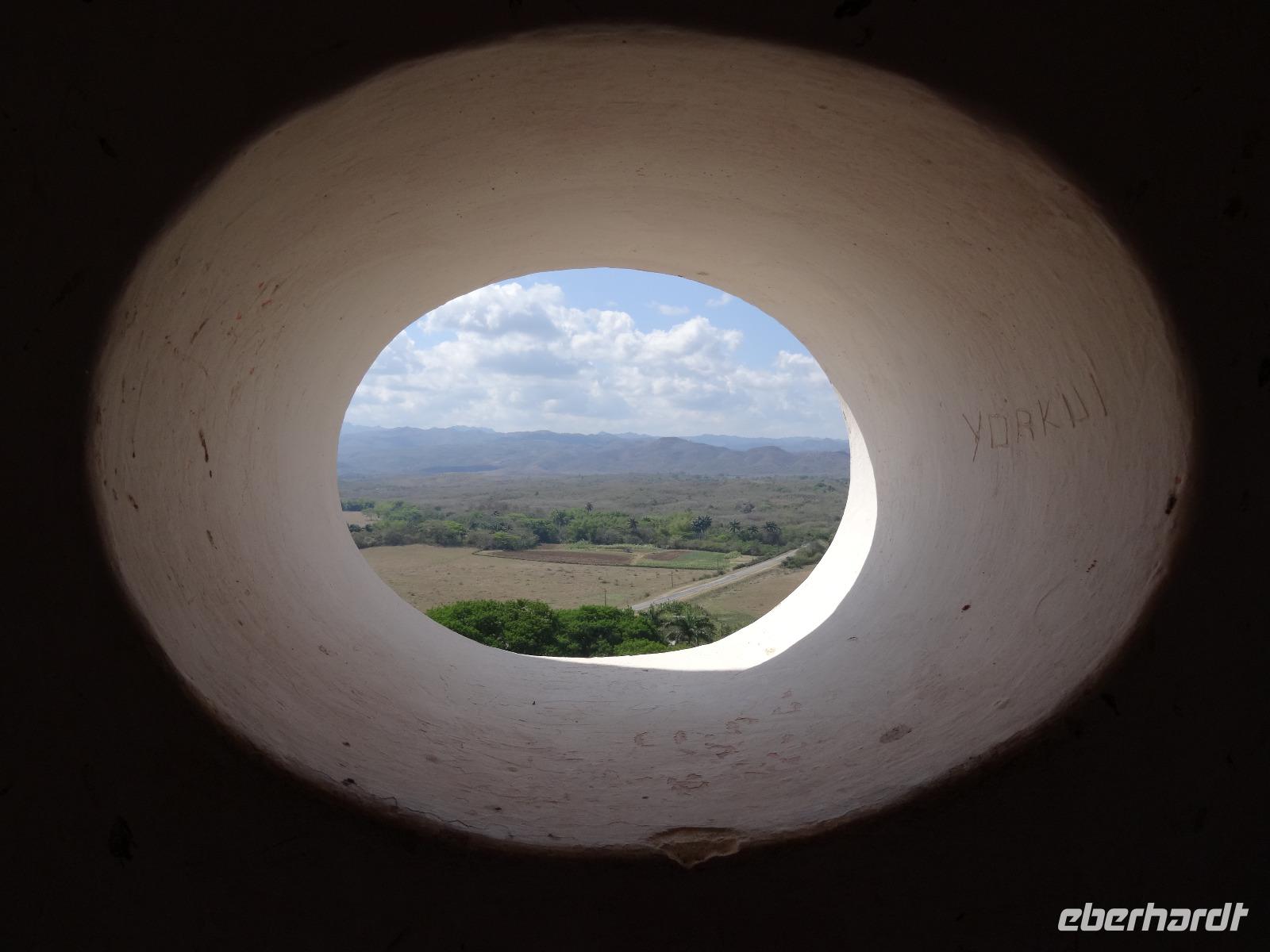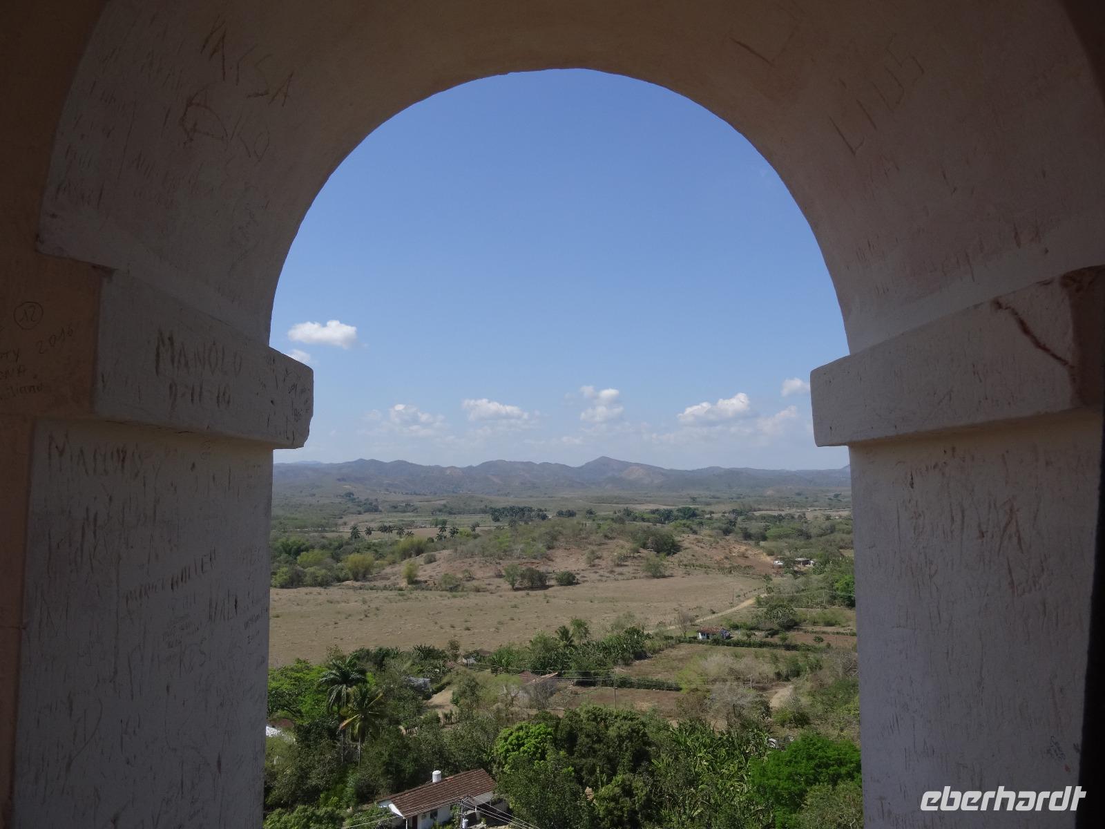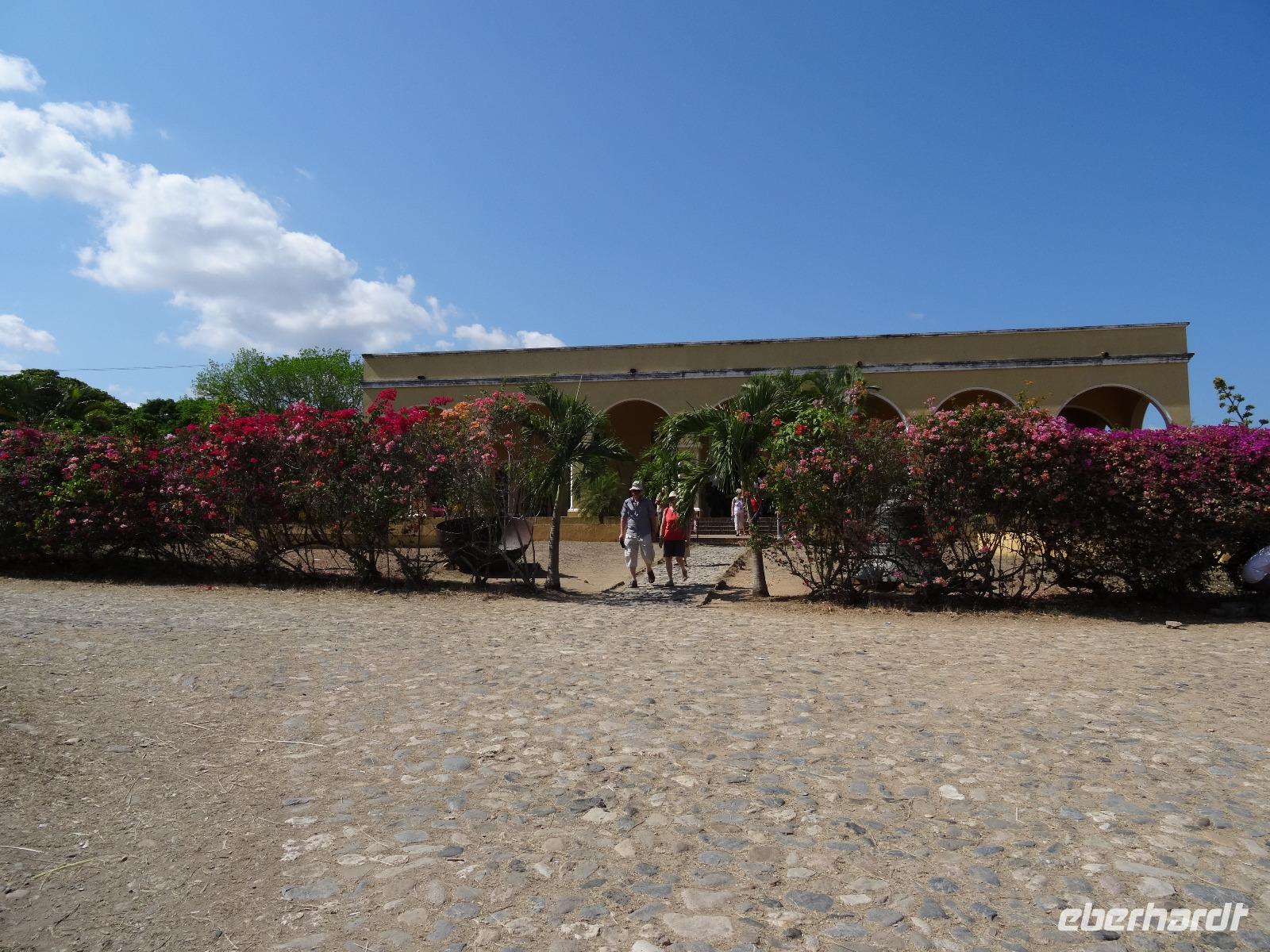 Den heutigen Stadtrundgang in Camaqüey funktionierten wir kurzerhand um in eine Stadtrundfahrt mit den überall bereitstehenden Bici-Taxis, Fahrradrikschahs der Marke Eigenbau. Jeweils zwei Personen enterten die bedrohlich ächzenden Gefährte und so ging es als kleiner Konvoi durch die engen Straßen der Altstadt. Wir stoppten unterwegs immer wieder und sahen dabei den Parque Ignacio Agramonte, die Kathedrale Metropolitan, die Plaza San Juan de Dios, die Plaza del Carmen mit den bekannten Bronzestatuen der Darstellung kubanischer Alltagsszenen sowie das ehemalige Hospital Padre Jose Ollalo. Auch wenn man Mitleid mit den Fahrern dieser Gefährte haben müsste, war es doch eine besonders interessante Art und Weise, diese kulturhistorisch bedeutende Stadt zu "erfahren". Anschließend verließen wir die Stadt der Tonkrüge, um die sich einige Legenden ranken, und begaben uns in westlicher Richtung in die Provinz Sancti Spiritus mit dem Ziel Valle de los Ingenios, dem Tal der Zuckermühlen. Nach langer Fahrt durch die kubanische Zentralprovinz mit ihren Viehherden, Palmen- und Bananenhainen erreichten wir Manaca Iznaga mit der gleichnamigen Casa. Sie ist die bekannteste der ehemaligen Zuckermühlen und mit ihrem 44 Meter hohen Sklaventurm auch die berühmteste. Nach einem schmackhaften Mittagessen und den Erklärungen zur Herstellung von Zuckerrohrsaft mittels einer alten Zuckerrohrpresse bestiegen wir die 136 Stufen des ehemaligen Sklaventurmes. Oben angekommen eröffnete sich uns ein fantastischer Ausblick über die einstmals üppigen Zuckerrohrplantagen bis nach Trinidad hinein. Es war beeindruckend, den Blick soweit in die Landschaft lenken zu können. Wieder Boden unter den Füßen, ging es die letzten 23 Kilometer zu unserem Hotel an der Playa Ancon, wo uns zwei entspannte Tage in einer All-Inklusive-Anlage erwarteten.