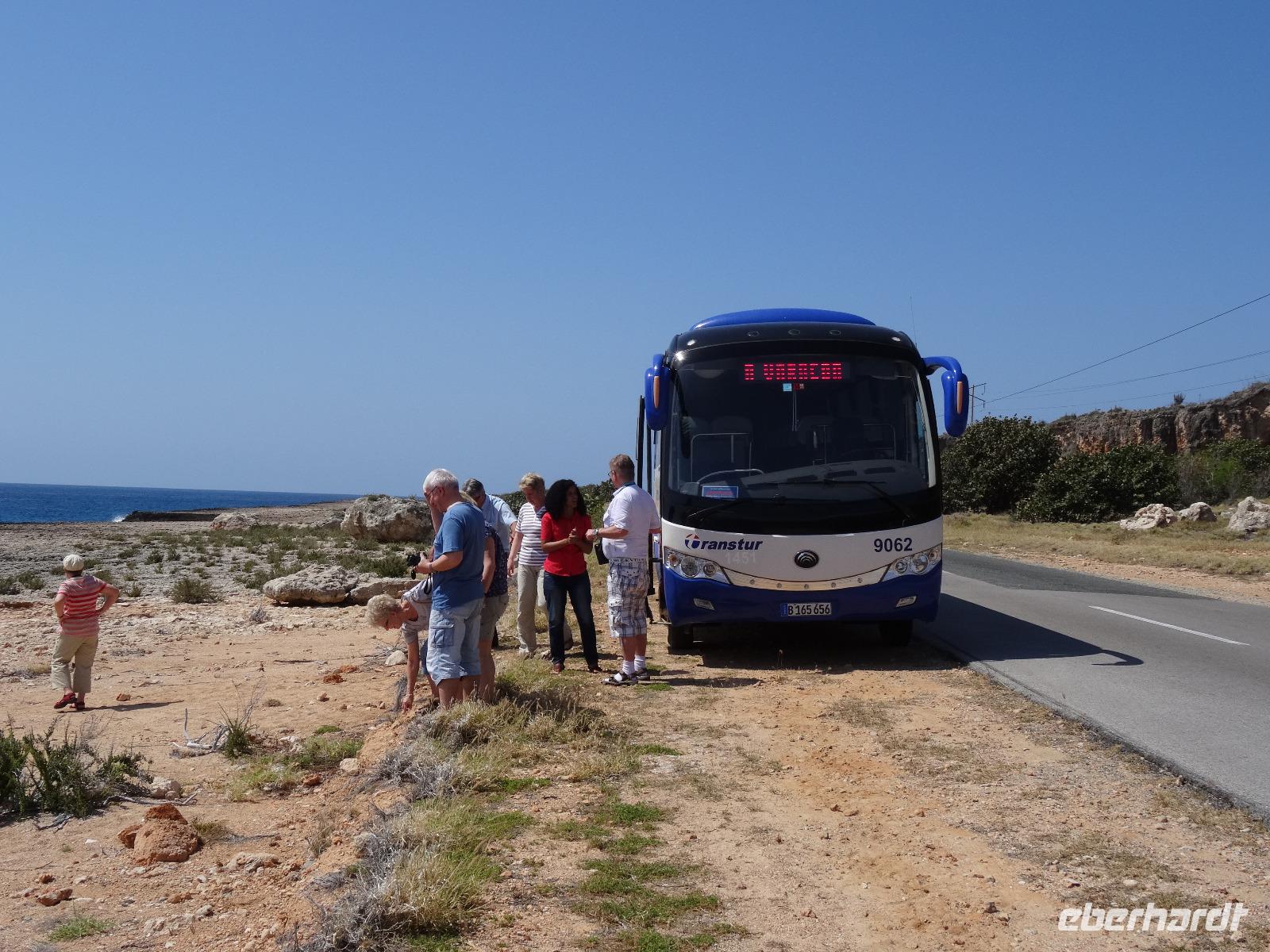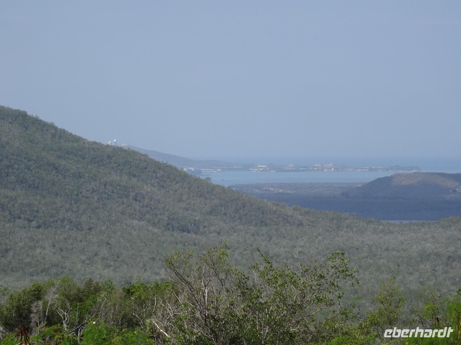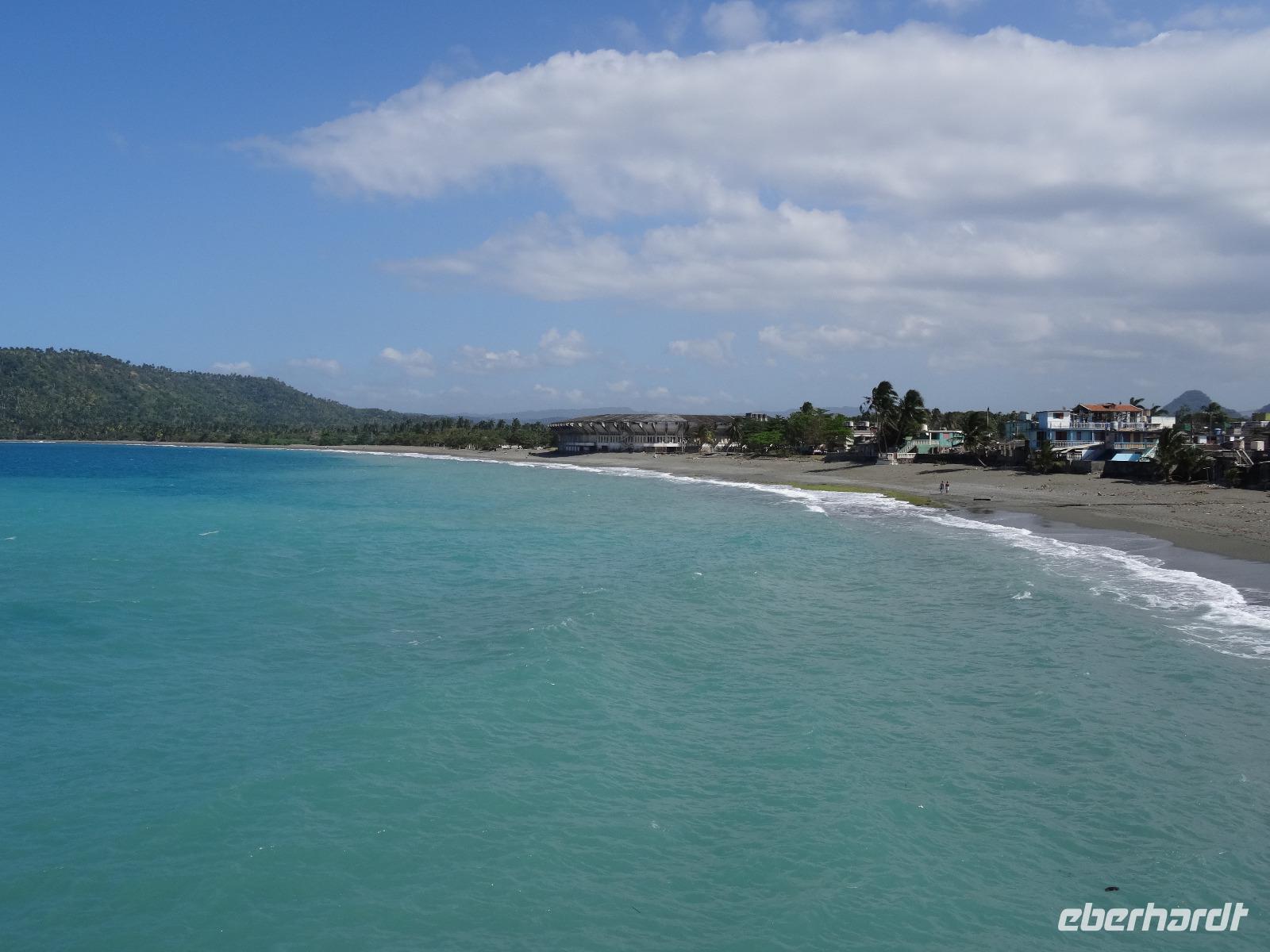 Nach einem überaus reichhaltigen Frühstück begannen wir unsere fünfstündige Fahrt durch die Provinz Guantanamo nach Baracoa, Kubas ältester Stadt ganz im Südosten der Insel. Über eine fast autofreie Autobahn fuhren wir an einer üppig grünen Landschaft vorbei nach Guantanamo, wo wir einen kurzen Stopp einlegten. Etwas außerhalb der Stadt beginnt die gleichnamige Bay, welche durch den angrenzenden US-amerikanischen Militärstützpunkt weltweit bekannt ist. Von einer kleinen Aussichtsplattform konnte man in weiter Ferne zumindest die Anlage erahnen, wenn auch nicht wirklich sehen. Aber das ist bekanntermaßen auch nicht Sinn und Zweck militärischer Objekte, schon gar nicht in diesem speziellen Fall. Weiter führte uns unsere Tour durch die Sierra der Maquey, später entlang der Karibikküste. Gegen Mittag machten wir eine Picknickpause an einem kleinen Strand in der Nähe von San Antonio del Sur. Am klaren und wunderbar warmen karibischen Meer genossen wir unter Palmen anderthalb schöne und entspannte Stunden. Baden inklusive. Anschließend setzten wir unsere Fahrt nach Baracoa über das Gebirge fort und erreichten nach einiger Zeit einen Aussichtsturm in Alto de Cotilla, von wo aus man einen tollen Blick auf die umliegenden Berge der Sierra del Purial hatte. Am frühen Nachmittag erreichten wir endlich Baracoa. Wir stoppten zuerst am Malecon, vor der Festung Fuerte Matachin und der Statue von Christoph Columbus, bevor wir zu Fuß einen Rundgang durch die teilweise restaurierte Altstadt von Baracoa machten. Unser Weg führte uns natürlich auch zur Kirche Nuestra Senora de Conception und dem 500 Jahre alten Kreuz "Cruz de la Parra". Danach stiegen wir die Treppen zum altehrwürdigen Hotel El Castillo hoch und genossen einen fantastischen Blick auf die Stadt und die angrenzende Bucht. Unser Abendessen nahmen wir heute in unserer Hotelanlage etwas außerhalb Baracoas ein, bevor wir an der Hotelbar mit einem Mojito oder Cuba Libre die Eindrücke des Tages Revue passieren ließen.