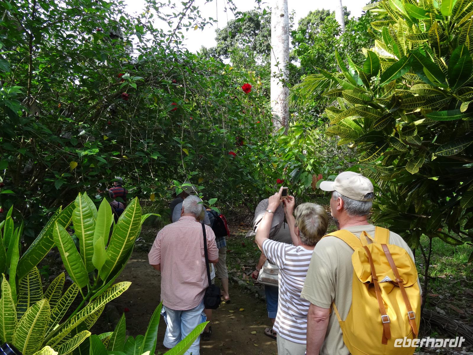 Für uns brach heute mit strahlendem Sonnenschein der vorletzte Tag auf Kuba an. Nach einer beinahe zweieinhalbtausend Kilometer langen Reise durch das Enfant Terrible der karibischen Inseln waren wir nun ganz im Westen des Landes angekommen. Nachdem wir gestern Pinar der Rio und Vinales besuchten, ließen wir es heute etwas gemütlicher angehen. Wir verließen Havanna und fuhren in den knapp 70 Kilometer entfernten Nationalpark Las Terrazas, ein fünftausend Hektar großes Naturparadies, welches als gelungenes Rekultivierungsprojekt angesehen werden kann. Nachdem wir uns mit dem ökotouristischen Vorzeigeprojekt vertraut gemacht hatten, bummelten wir zum Haus des bei einem Unfall früh verstorbenen populären kubanischen Sängers Polo Montanes, welches wir besichtigten. Der anschließende Rundgang durch die kleine Ortschaft führte uns zu einem Café, wo wir hiesige Kaffeespezialitäten zu trinken bekamen. Anschließend fuhren wir weiter zu den der Ortschaft vorgelagerten Banos del San Juan, einem kleinen Fluss, der Aufgrund vieler Gesteinsbarrieren zu kleinen Badebecken angestaut wurde. Herrlich im Grünen gelegen und über befestigte Wege und Brücken gut zu erreichen, nutzten vor allem Einheimische aus der Umgebung dieses natürliche Kleinod zum Baden, für Familienausflüge und als Rendezvous-Ort für Verliebte. Wer wollte, konnte hier ins Wasser steigen oder einfach nur die Seele baumeln lassen. Ein kurzer Spaziergang brachte uns zum Restaurant Casa del Campesino, wo wir uns gemütlich unter einem Palmendach Reis, Hühnchen und Schweinefleisch schmecken ließen. Aufgrund der üppig grünen Umgebung wähnten wir uns dabei im tropischen Garten Eden. Nach dieser Stärkung stiegen wir wieder in den Bus und legten die wenigen Kilometer bis Soroa zurück, wo wir den Orchideengarten besuchten. Hier konnte man über 700 Orchideenarten aus aller Welt besichtigen. Unser Führer machte uns mit den einzelnen Arten und Besonderheiten verschiedenen Orchideenfamilien vertraut, es war allerdings unmöglich, sich all die Bezeichnungen, lateinischen Namen und umgangssprachlichen Entsprechungen zu merken. Eins blieb uns aber im Gedächtnis haften; die einzigartige Farb- und Formenvielfalt. Vor allem die Botaniker unter uns waren ob dieser Blütenpracht begeistert. Nach einer reichlichen Stunde verließen wir den Orchideengarten und machten uns zu Fuß auf den Weg zu unserem Hotel, welches gleich nebenan gelegen war. Nach dem Einchecken hieß es erst einmal ausruhen und im Swimmingpool ein erfrischendes Bad nehmen. So konnte man nochmal Kraft für die letzte Etappe und den langen Heimflug am Sonntag sammeln.