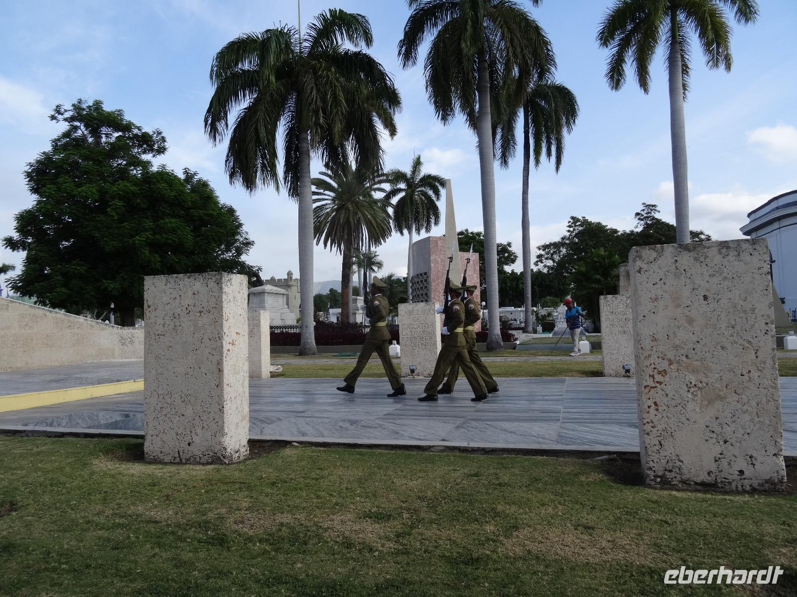 Heute verließen wir den Südosten Kubas und begaben uns auf den langen Weg nach Camaqüey in die gleichnamige Provinz. Nach einem ausgiebigen Frühstück stand als letzte Station in Santiago de Cuba der Cementerio de Santa Ifigenia auf dem Programm, wo sich unter anderem das Grabmal des kubanischen Nationalhelden Jose Marti befand. Wir waren pünktlich zur Wachablösungen um 09:00 Uhr an Ort und Stelle und konnten so der militärischen Zeremonie als einzige Besucher zuzuschauen. Auf dem Weg aus der Stadt in Richtung El Cobre stoppten wir am Platz der Revolution mit dem Monumentaldenkmal von Antonio Maceo und den bedrohlich wirkenden 23 riesigen Stahlmacheten, die den Platz überragen. Am Vormittag erreichten wir Kubas bedeutendsten Wallfahrtsort El Cobre und besichtigten die Kathedrale mit der über 400 Jahre alten Marienfigur, bevor wir am frühen Nachmittag das geschichtsträchtige Städtchen Bayamo erreichten. Wir spazierten zu den Erklärungen unserer Reiseleiterin durch die Hauptstadt der Provinz Granma, sahen uns das Denkmal zu Ehren der kubanischen Nationalhymne an und nahmen einen erfrischenden Cocktail in der örtlichen Casa de La Trova. Nach einem späten Mittagessen machten wir uns auf den Weg in das knapp 3,5 Stunden entfernt liegenden Camaqüey, welches wir am Abend erreichten. Unser Hotel lag nahe dem historischen Stadtkern, welcher seit 2008 zum UNESCO Weltkulturerbe zählt. Nach dem Einchecken führte uns unser Weg durch die labyrinthischen Gassen der Altstadt mitten ins Zentrum, wo wir in einem kleinen Restaurant unser Abendessen einnahmen. Zurück vom Restaurant genehmigten wir uns noch einen kühlen Drink auf der Dachterrasse des Hotels und genossen die fantastische Sicht auf das nächtliche Camaqüey.