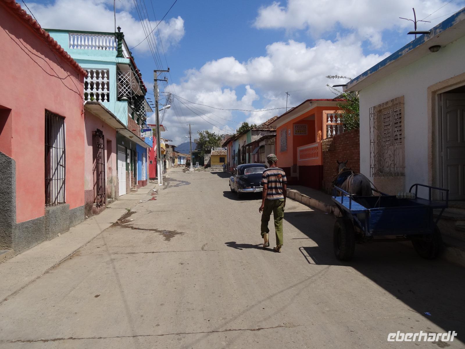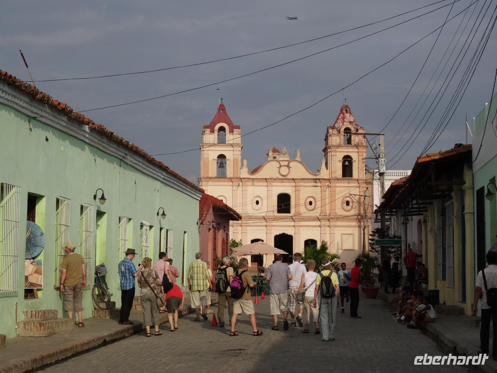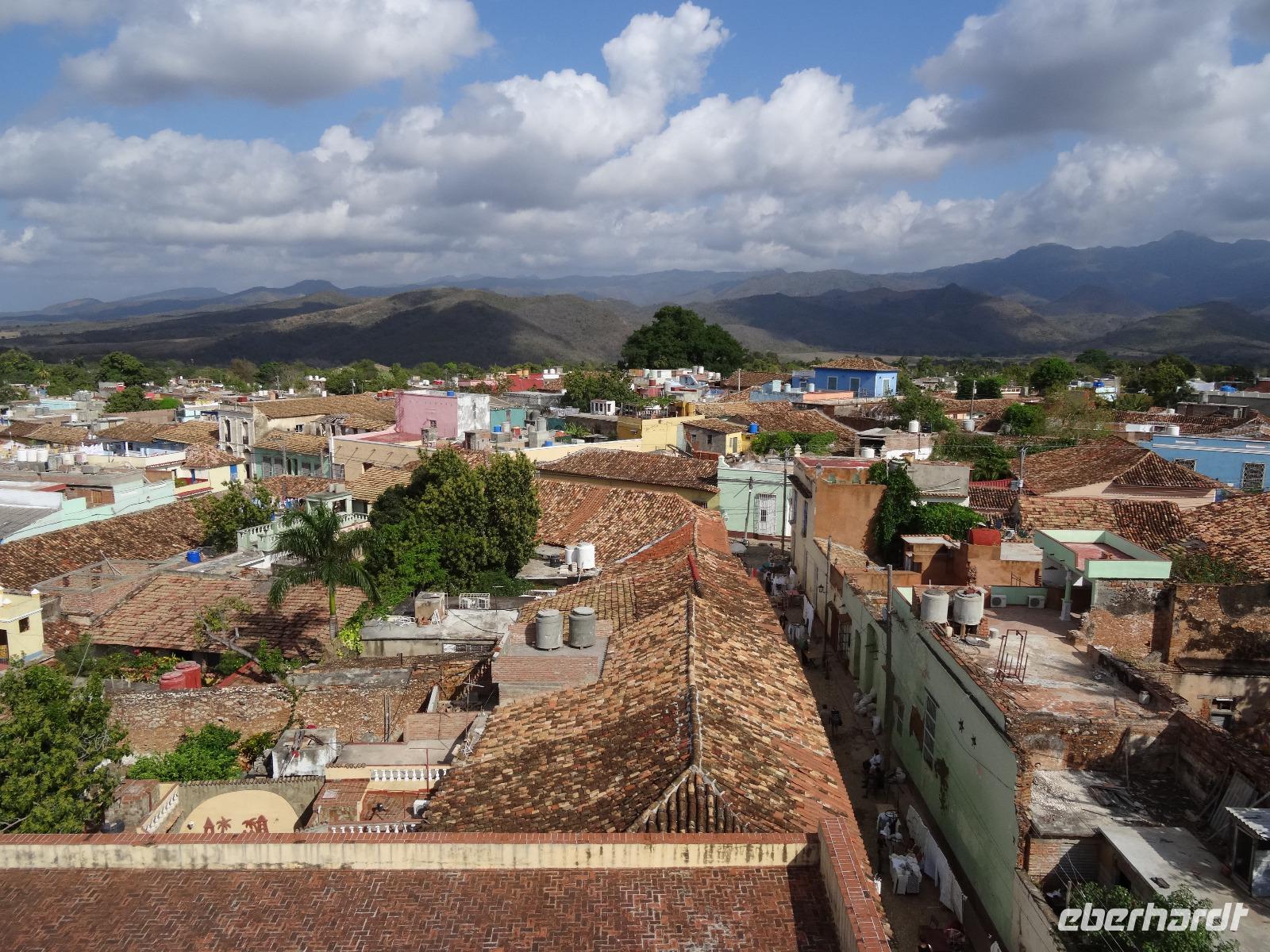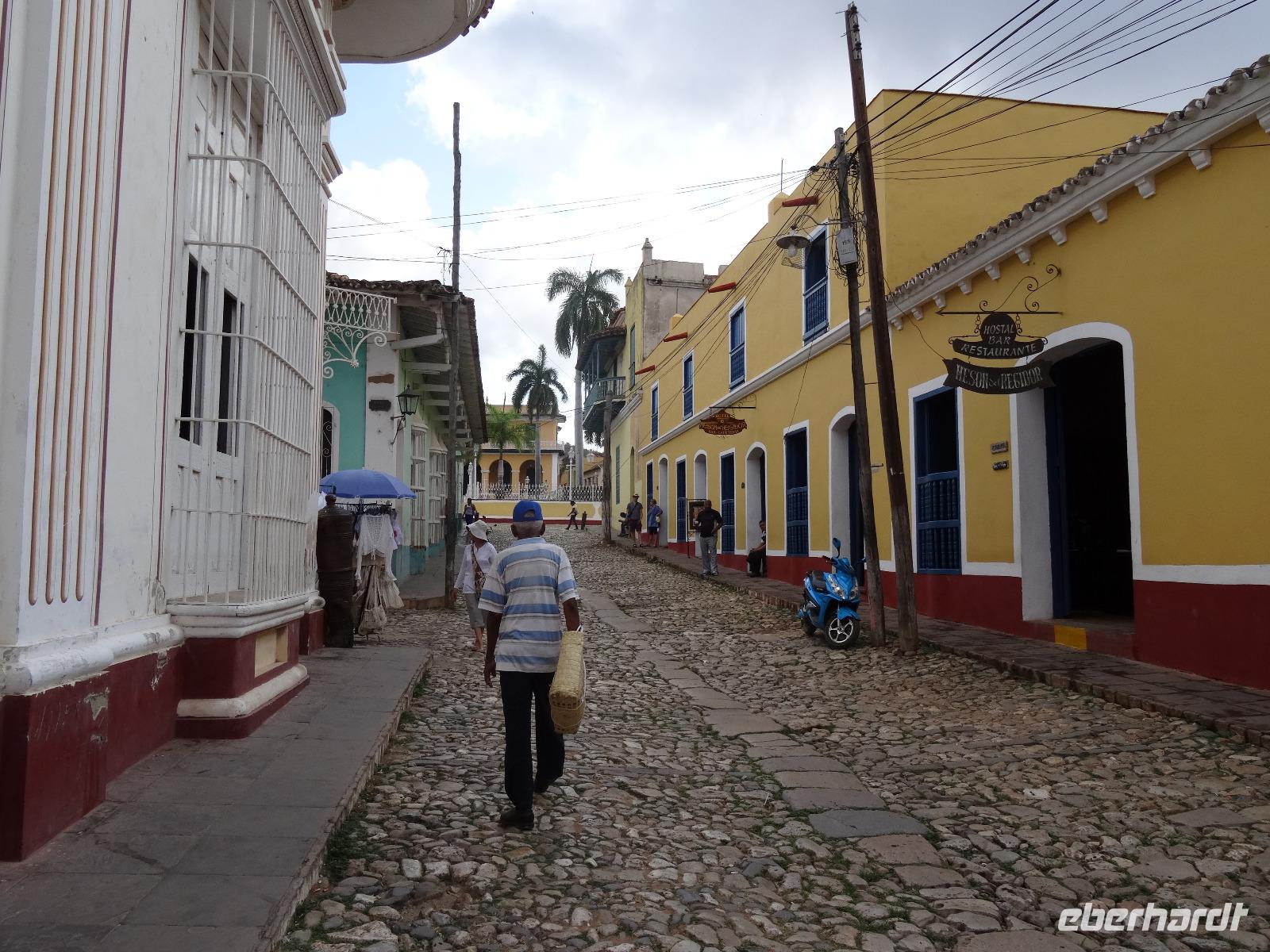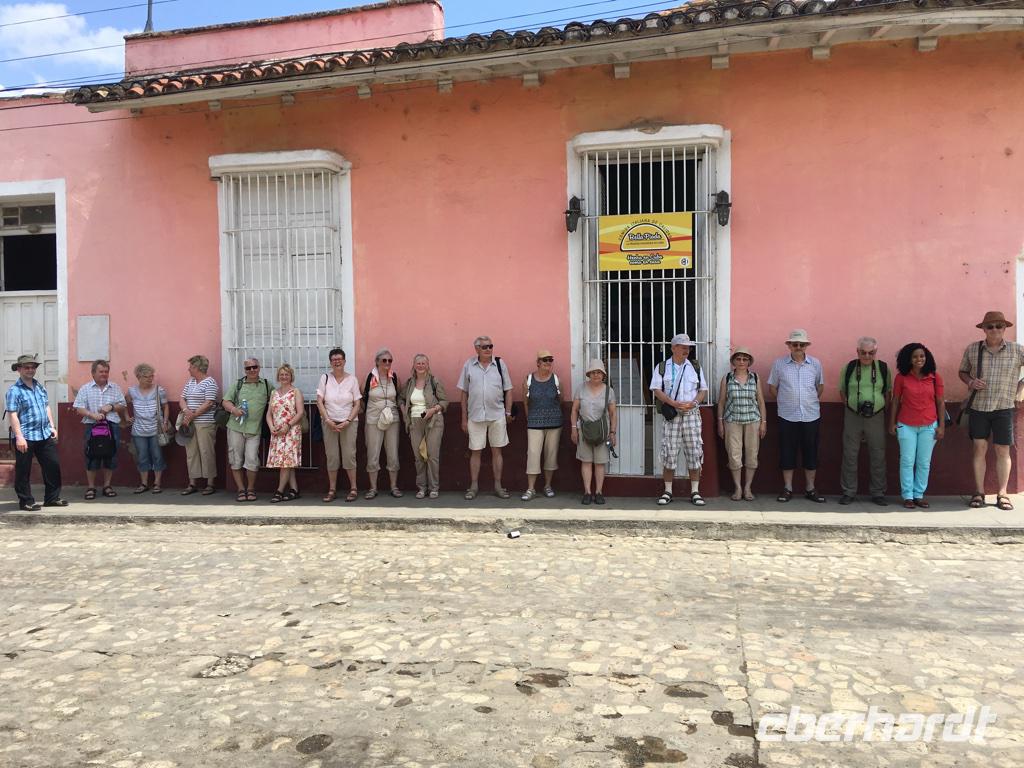 Nach einem ausgiebigen Frühstück fuhren wir mit dem Bus die zwanzig Minuten nach Trinidad hinein. Dieses architektonische Freilichtmuseum war das Ziel des heutigen Vormittages. Uns empfing eine wahrlich beeindruckende Ansammlung schön restaurierter kolonialer Gebäude, die jeden Besucher verstehen lassen, warum Trinidad ganz oben auf der To-Do-Liste jedes Kuba-Interessierten steht und auch die UNESCO das malerische Städtchen zum Weltkulturerbe erklärte. Wir begannen unsere Besichtigung im Museo Municipal de Trinidad im Palacio Cantero, wo uns eine Museumsführerin die Geschichte des Hauses und der Stadt Trinidad erklärte. Ein kurzer Aufstieg auf den Turm des Museums - und die Altstadt von Trinidad lag uns zu Füßen. Ob des sich darbietenden Blickes konnte man ins Schwärmen geraten. Wieder auf dem Boden zurück, führte uns unser Weg zur Plaza Major, wo wir die Kirche der Heiligen Dreifaltigkeit sowie die ehemaligen Villen der Zuckerbarone, welche heute samt und sonders Museen beherbergen, zu Gesicht bekamen. Ein Muss für jeden Trinidad-Entdecker ist der Besuch der Taberna La Canchanchara, wo man die gleichnamige Rum-Spezialität Trinidads zu trinken bekommt. Anschließend erkundeten wir das historische Zentrum mit seinem Katzenkopfsteinpflaster und den farbigen Häusern zu Fuß. Der Zahn der Zeit ist trotz aller Restaurationsbemühungen unübersehbar, ungeachtet dessen erahnt und erfühlt man die Bedeutung dieser Stadt für das ganze Land. Und das spiegelt sich auch in den Gesichtern der Einheimischen wieder. Zurück im Hotel gaben wir uns nun ganz dem karibischen Urlaubsfeeling hin und nutzen die Zeit bis zum Abendessen für Strandspaziergänge unter Palmen oder zum Baden im wunderbar warmen Meer.