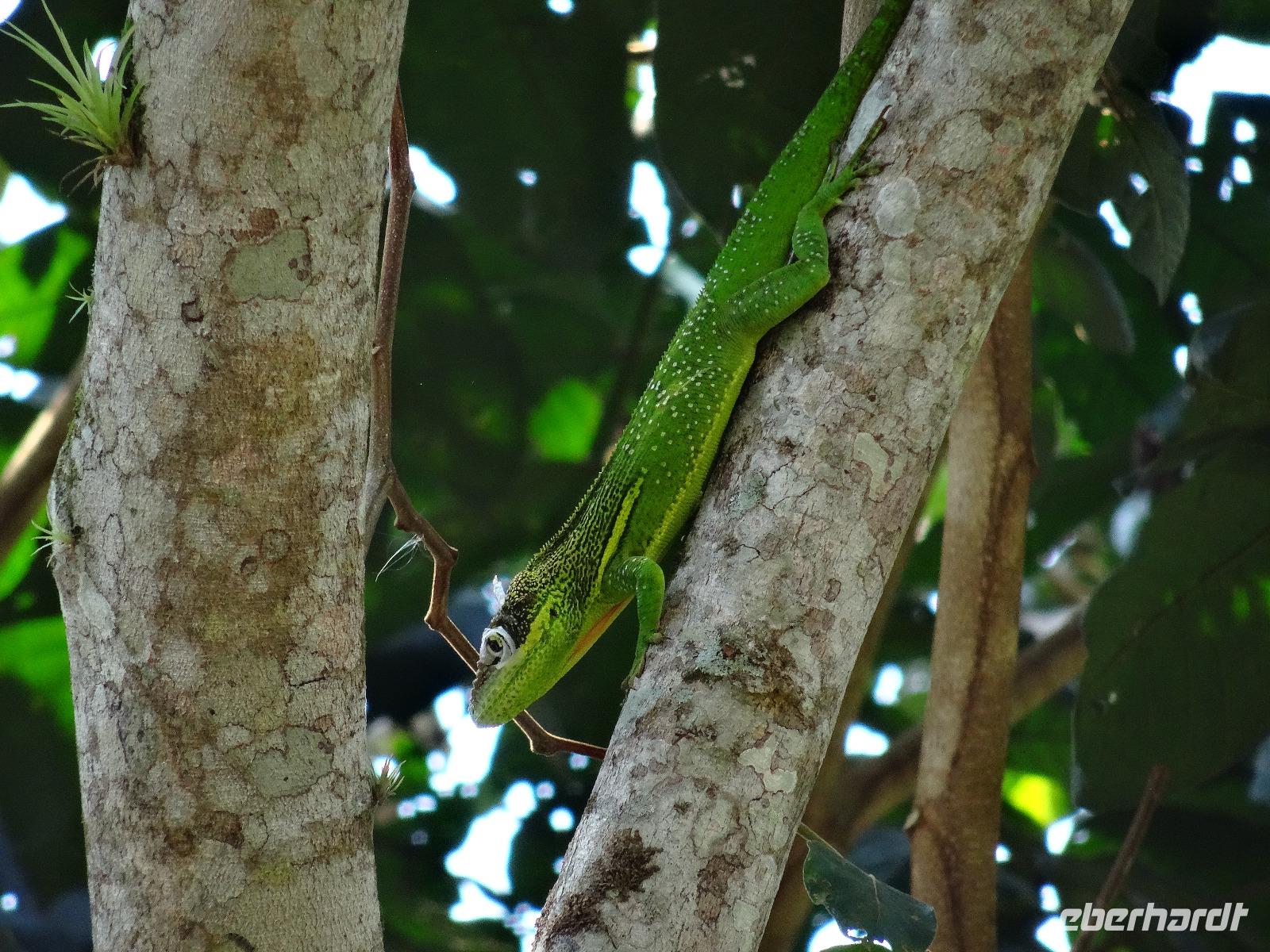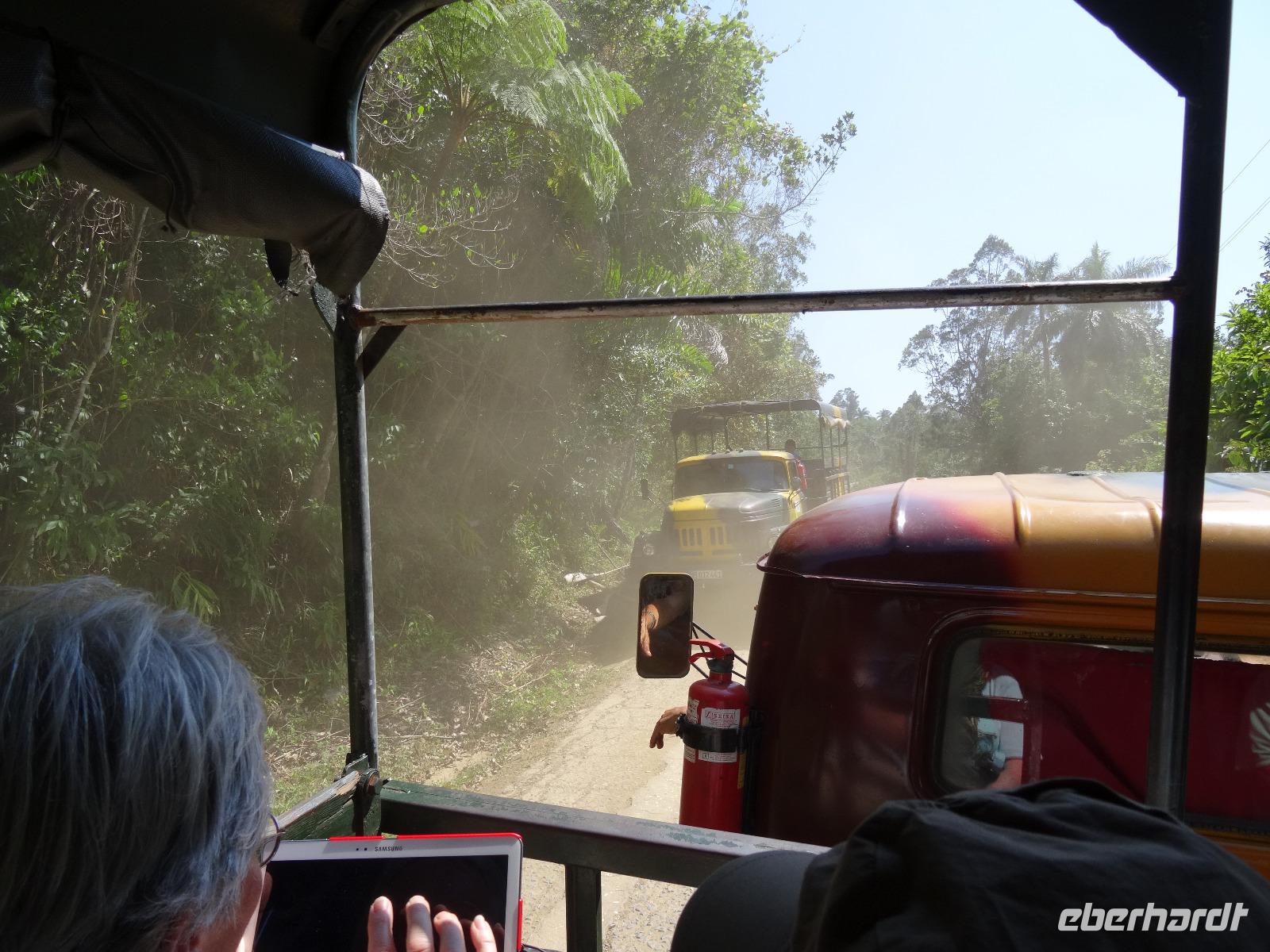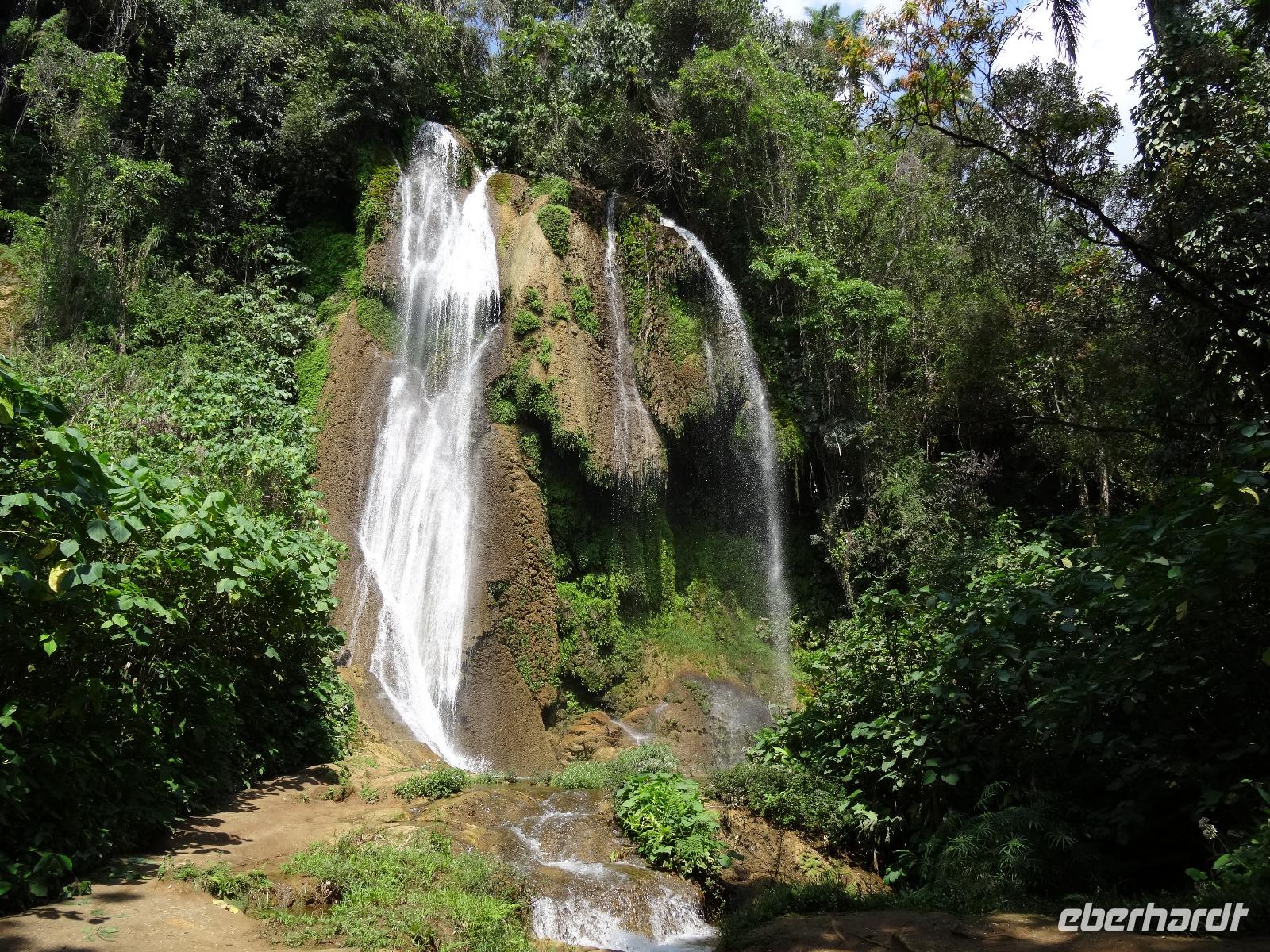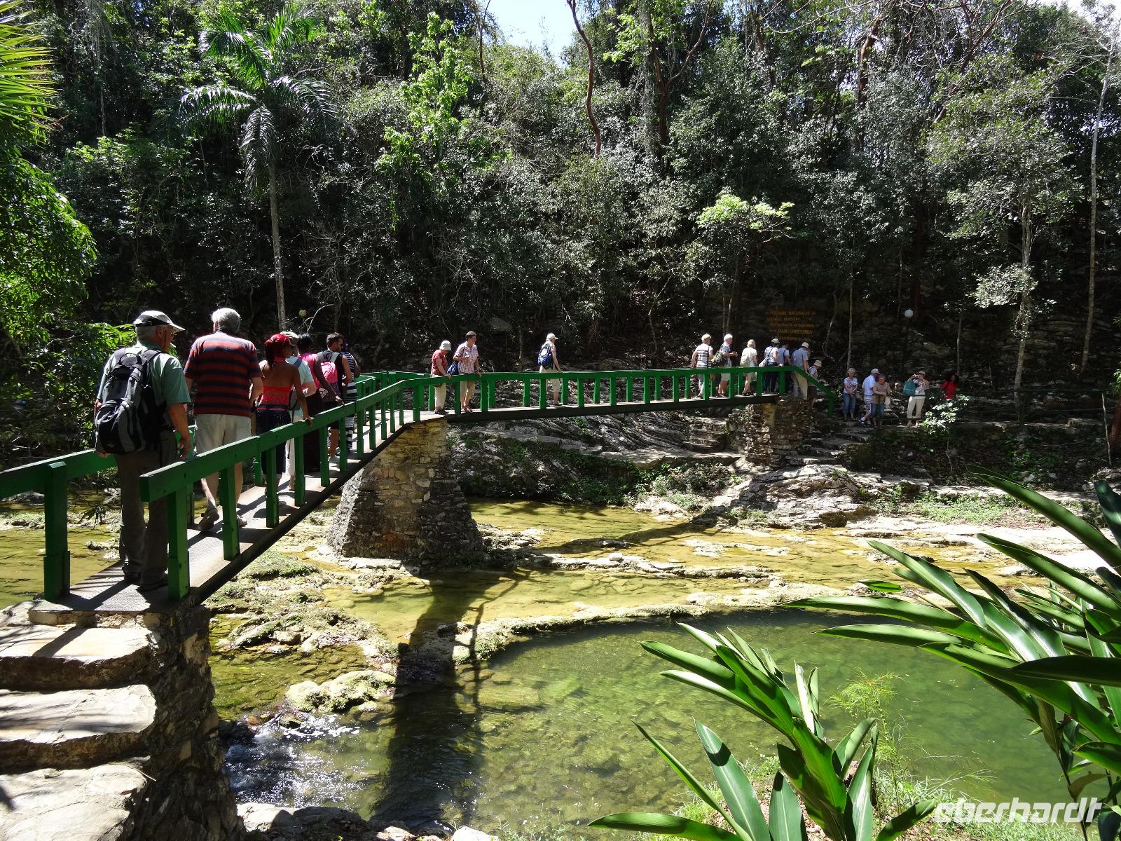 Heute verließen wir vorerst die Karibikküste und bereiteten uns auf eine Fahrt in die Sierra der Escambray vor. Eine halbstündige Fahrt mit dem Bus brachte uns in die Nähe von Trinidad, wo wir in einen fast dreißig Jahre alten russischen Syl, ein Koloss von Fahrzeug, umstiegen. Traditionell werden damit Touristen, aber auch Einheimische in und aus den nahegelegenen Bergen der Sierra de Escambray befördert. Diese Art der Fortbewegung bietet dabei natürlich mehr Abenteuer als Fahrkomfort, was uns schon nach wenigen quietschenden und rumpelnden Minuten klar war. Aufgrund der Steigungen, die teilweise zu überwinden waren, konnte man den Einsatz solcher Fahrzeuge nachvollziehen, zu einem großen Teil wird es aber eher an den moderneren Alternativen mangeln bzw. ein Stück Nostalgie eine Rolle spielen. Nach gut dreißig Minuten erreichten wir Topes de Collantes inmitten der Sierra und stoppten am dortigen Info-Center. Wir befanden uns hier schon auf knapp 800 Meter Höhe und in landschaftlich sehr schöner Umgebung. Nachdem unser Naturführer Valentin zugestiegen war, setzten wir unsere Fahrt mit dem altehrwürdigen Syl fort. Unterwegs sahen wir Bromelien, die auf Stromleitungen wuchsen - ein beeindruckender Anblick! Nach nochmals knapp halbstündiger Fahrt begannen wir unsere Wanderung durch den Nationalpark. Unterwegs erfuhren wir von Valentin vieles über die regionale Flora und Fauna, unter anderem über den hier angepflanzten Kaffee. Am Wasserfall El Rocio bot sich uns ein tolles Fotomotiv, bevor es zum baden an eine kleinen Lagune ging. Nach sehr interessanten drei Kilometern Wanderung erreichten wir die Casa La Gallega, wo wir nach dem Willkommenstrunk La Carambola unser Mittagessen einnahmen. Nach einer guten Stunde verließen wir die Sierra de Escambray wieder und gelangten mit unseren Syl an den Ausgangspunkt der Bergetappe zurück. Nicht ohne vorher noch Obst und Früchte an einem kleinen Stand zu probieren. Die anschließende Fahrt nach Cienfuegos führte uns unmittelbar an die Karibikküste zurück zu unserem Hotel am Rande der gleichnamigen Bucht. Nach einem schmackhaften Abendessen im Hotelrestaurant haben sich einige aus unserer Gruppe noch eine schöne Tanz- und Musik-Show angeschaut.