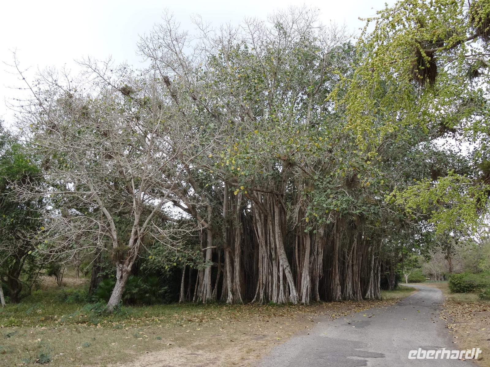 Der heutige Tag startete gleich mit einem botanischen Highlight, denn wir waren am führen Morgen die ersten Besucher im "Jardin Botanico Soledad", dem botanischen Garten von Cienfuegos. Wir wurden von der deutschsprachigen Führerin Alicia herzlich begrüßt und durch einen Teil des 97 Hektar großen Geländes geführt. In dem einstmals mit Unterstützung der Harvard-Universität gegründeten Garten kann man knapp 2000 Pflanzenarten besichtigen. Alicia zeigte uns einen kleinen Ausschnitt davon, u.a. diverse Ficus-Bäume, die amerikanische Eiche, den Baumwollbaum, einen "Leberwurstbaum", Mahagoni,- Eisen- und Ebenholzbaum, Mini- und Maxirockpalmen, Beton- und Königspalmen, verschiedene Bambusarten, Akazien, Gummibäume, einen gewaltigen "Elefantenfuß" sowie ein Hibiskus- und Zimtgehölz. Interessant und kurzweilig von Alicia erklärt, erfuhren wir so in kurzer Zeit sehr viel über die einzelnen Gewächse. Nach dem verlassen des Gartens fuhren wir nach Cienfuegos, wo wir einen ersten Fotostopp am Palacio de Valle, einem ehemaligen Casino und heutigen Restaurant, einlegten. Von hier aus hat man einen guten Blick auf die Bucht von Cienfuegos. Daran anschließend machten wir einen weiteren Fotostopp am Yachtclub und hatten einen schönen Blick auf die Marina und die umgebenden ehemaligen Villen der kubanischen Oberschicht, die dieses Viertel bis zur Revolution bewohnte. Wir setzten unsere Tour durch Cienfuegos mit einem Bummel durch das lebhafte Stadtzentrum fort. Die Fußgängerzone und die angrenzenden Straßen mussten sich für kubanische Verhältnisse nicht verstecken, hier fühlte man sich durchaus in der Neuzeit angekommen. An der Plaza Marti besichtigten wir das Teatro Terry, welches Ende des 19. Jahrhunderts aus Mitteln des ehemaligen Zuckerbarons Tomas Terry entstand. Als die Sonne Ihren höchsten Stand erreichte, verließen wir die "Perle des Südens" und machten uns auf den Weg nach Santa Clara. Nach anderthalbstündiger Fahrt erreichten wir die Stadt, die wie keine andere mit dem Namen Ernesto "Che" Guevara verbunden ist. Nach einem reichhaltigen Mittagessen betraten wir das Mausoleum des Welt-Revolutionärs am Platz der Revolution und erhielten danach im angrenzenden Che-Museum einen kleinen Einblick in sein Wirken auf Kuba. Noch schnell die Monumentalstatue oberhalb des Mausoleums fotografiert, bevor wir in der Innenstadt von Santa Clara einen kleinen Spaziergang unternahmen. Bevor wir anschließend zum Hotel fuhren, dass etwas außerhalb des Zentrums lag, stoppten wir noch für eine kurze Besichtigung des entgleisten Zuges, welcher eine entscheidende Rolle bei der Einnahme der Stadt Ende des Jahres 1958 durch die Rebellenarmee unter Führung Che Guevaras spielte. Den heutigen Tag ließen wir bei einem guten Abendessen und etwas Musik, Show und Mojito/Cuba Libre geruhsam ausklingen.