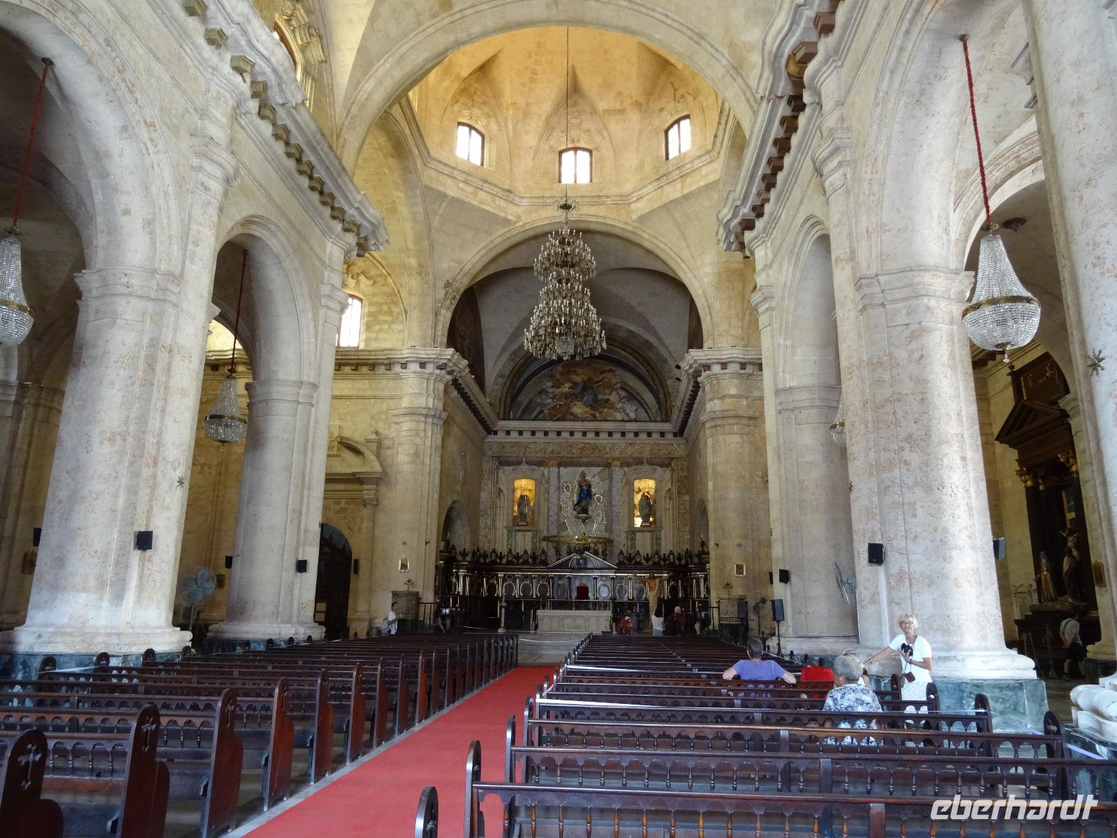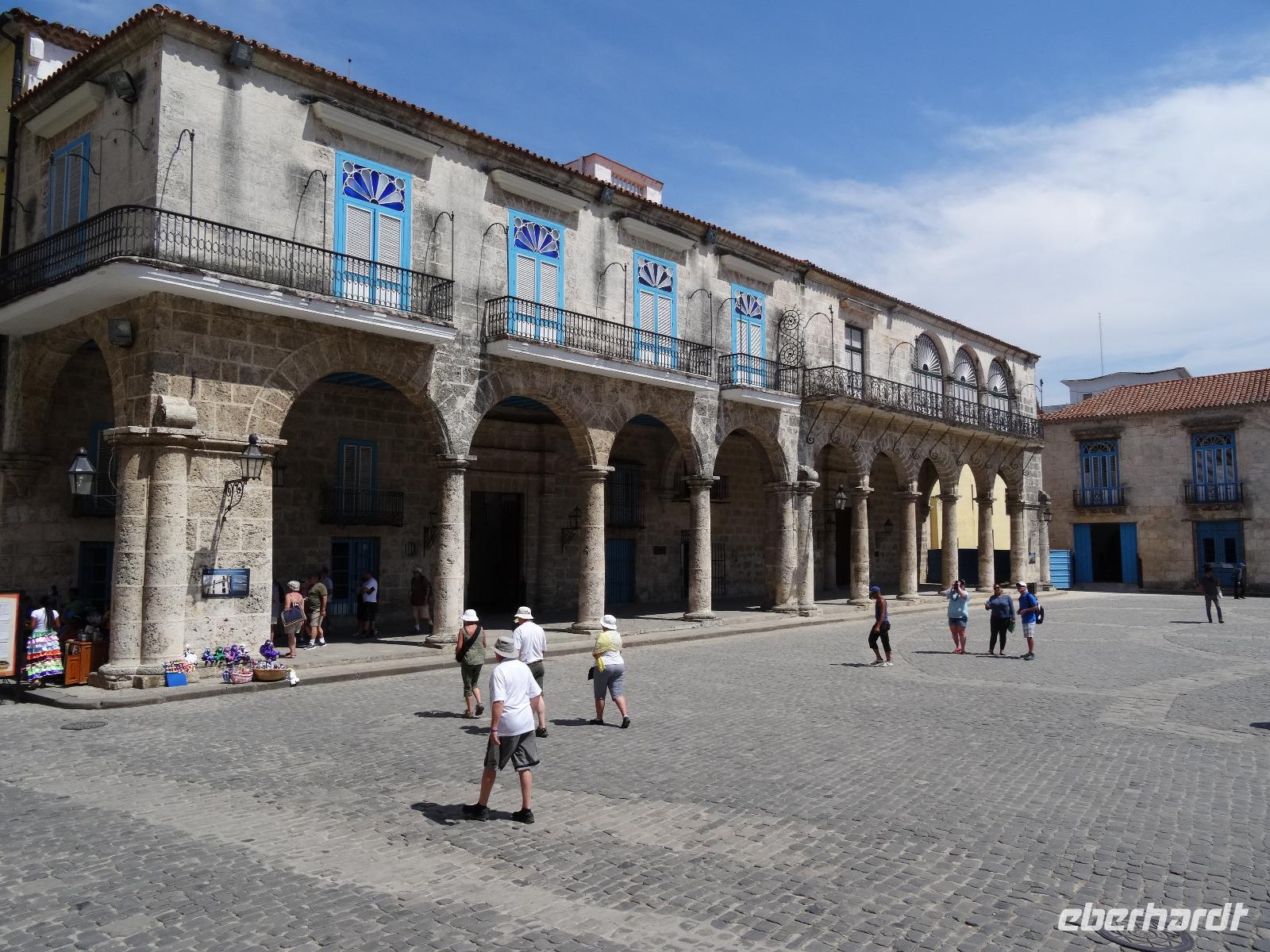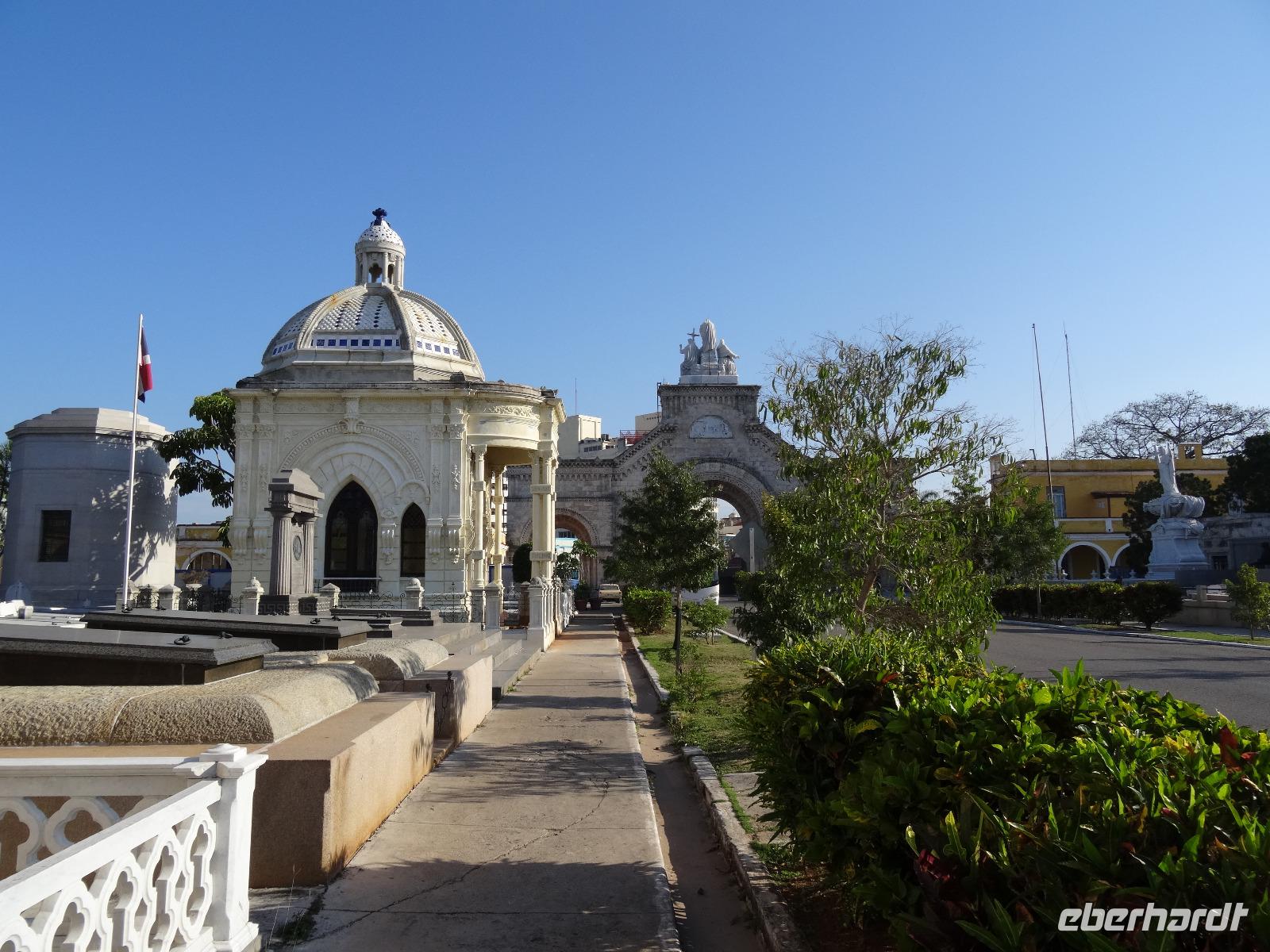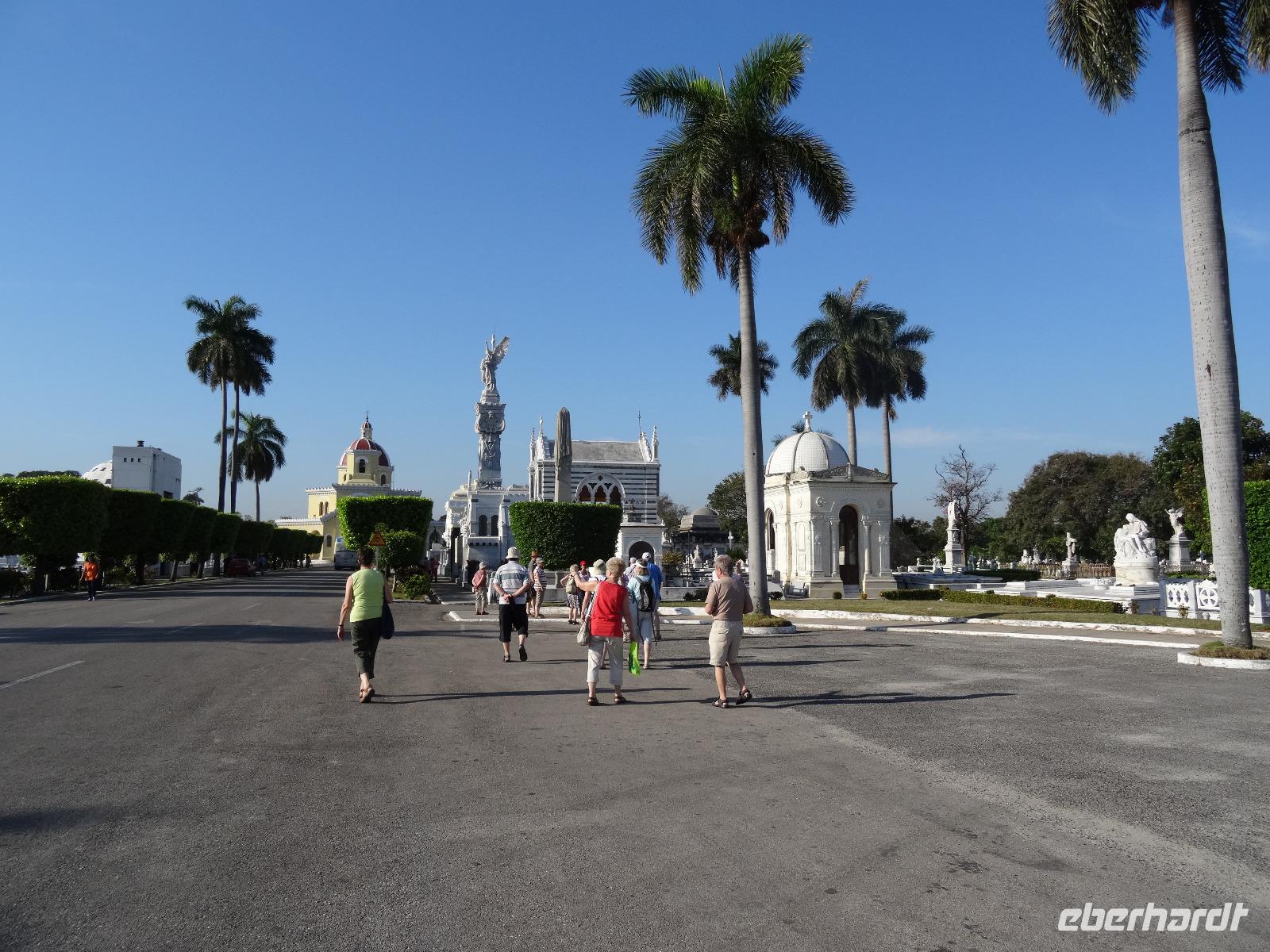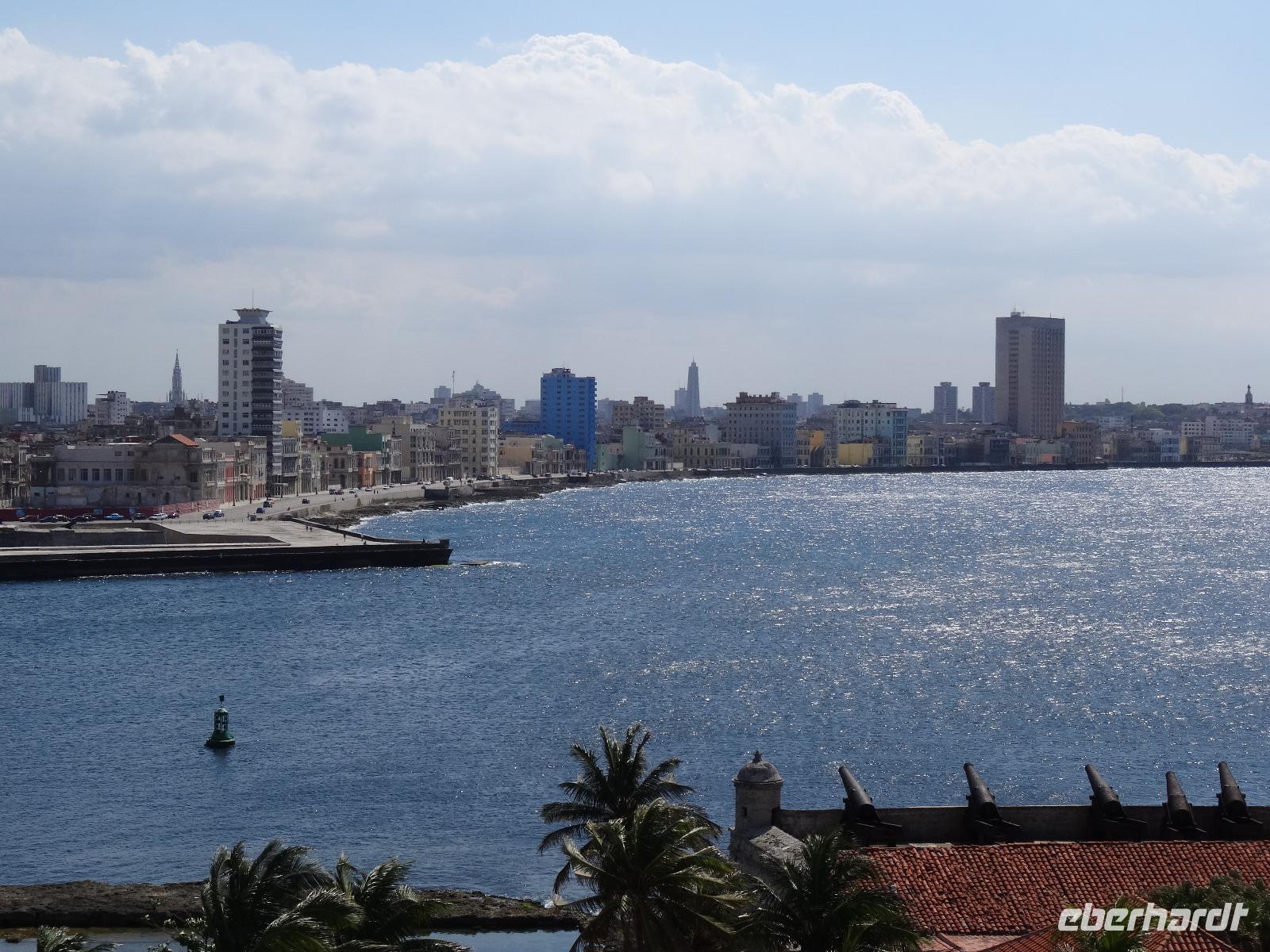 Der heutige Tag stand ganz im Zeichen der bald fünfhundertjährigen Stadt, welche ihre Gründung vor allem der strategisch günstigen Lage an der Straße von Florida verdankte. Von hier aus konnten die Spanier ihre Eroberung der neuen Welt mit einer starken Basis fortsetzen. Unser erstes Ziel am frühen Morgen war der größte Friedhof Lateinamerikas, der den Namen des vielleicht größten Entdeckers der Geschichte trägt: Christoph Kolumbus. Auf einer Fläche von 850 mal 650 Metern kann man hier einige der schönsten Grabanlagen besichtigen, die von Menschenhand erschaffen wurden. Viele Geschichten und Legenden ranken sich um einzelne Gräber, die auch heute noch Anlass zum Staunen, Schmunzeln und zur Verehrung geben. Danach fuhren wir in Richtung Altstadt und stiegen am Hafen aus, um die Christus-Statue auf dem gegenüberliegenden Höhenzug nahe der Festung El Morro zu fotografieren. Ein kleiner Spaziergang brachte uns zur Plaza de Armas, wo im Jahr 1519 La Habana gegründet wurde. In den folgenden zweieinhalb Stunden führte uns unsere Reiseleiterin Marvileivis durch die vielerorts schön restaurierte und 1982 von der UNESCO zum Weltkulturerbe ernannte Altstadt Havannas. Wir besichtigten die Gebäude und Kirchen an der Plaza de San Francisco sowie der Plaza de Cathedral und mischten uns unter die Touristen an der beliebten Plaza Vieja, bevor wir uns zur Stärkung im Café Mercurio unser Mittagessen schmecken ließen.