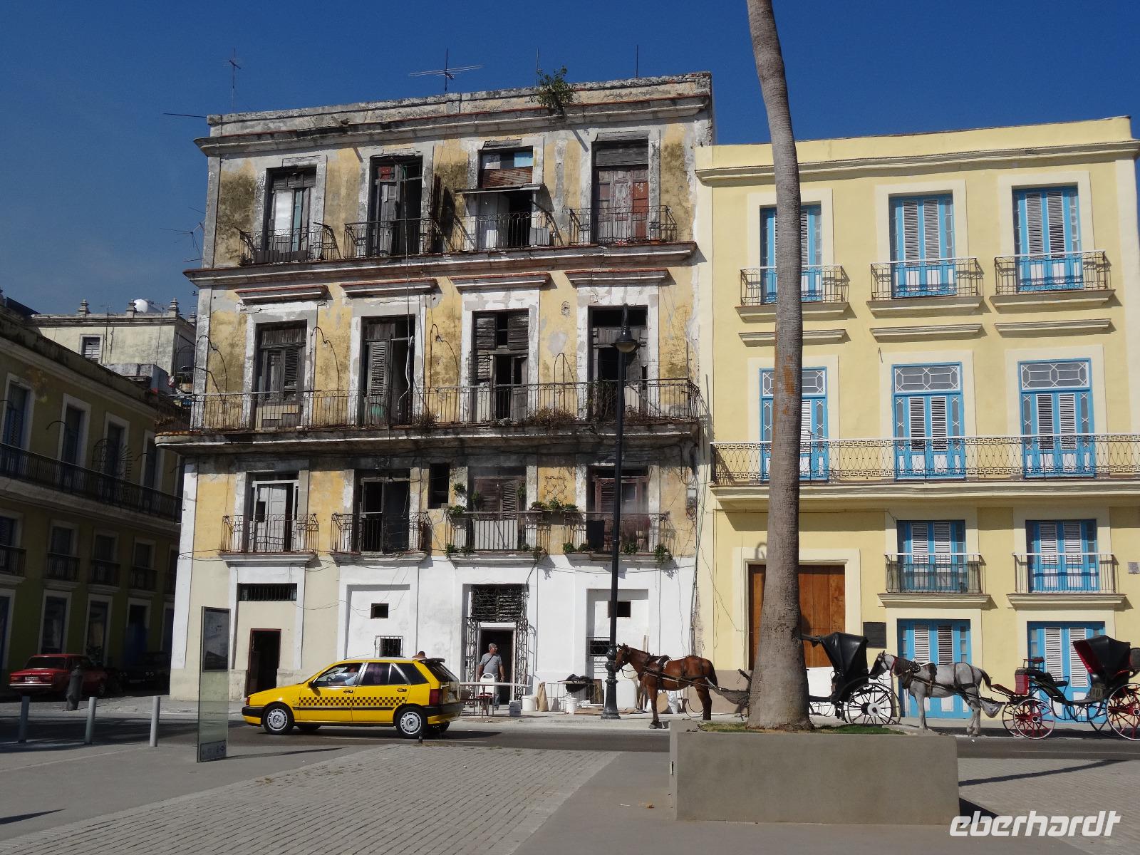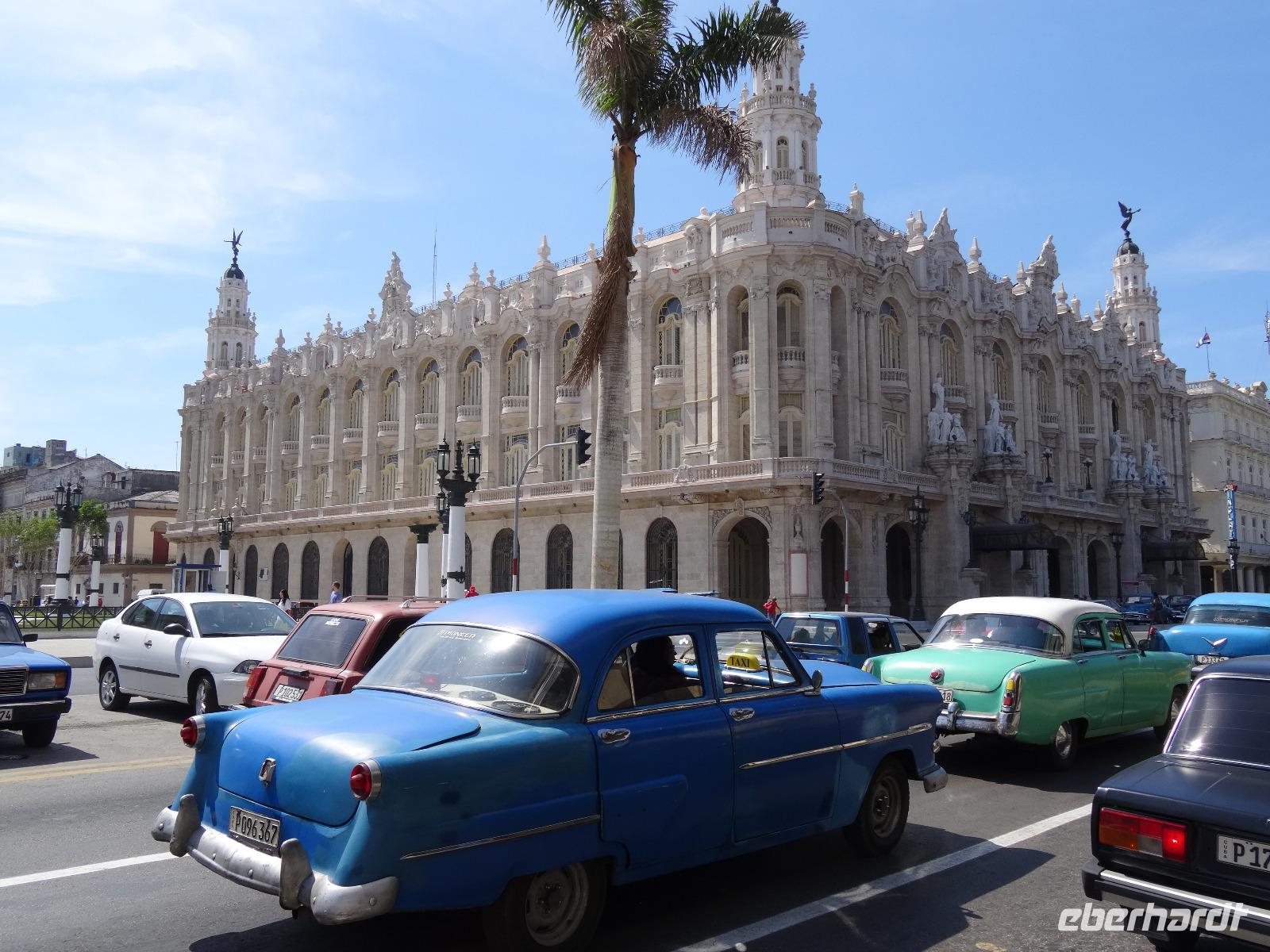 Anschließend ging es zum Havana-Club Rum-Museum, wo wir eigentlich Einblicke in die Geheimnisse der Rum-Herstellung erhalten sollten. Doch leider hatte sich bei der Buchung der Fehlerteufel eingeschlichen und wir waren zu einer völlig anderen Zeit avisiert. Wohl oder übel mussten wir die Besichtigung auf einen anderen Tag verschieben. Wir nutzten die frei gewordene Zeit, um kubanischen Rum und ein paar echte Cohibas und Monte Cristos einzukaufen, denn Rum und Zigarren sind die wohl beliebtesten Mitbringsel von der Zuckerrohrinsel. Bevor wir am Malecon entlang zu unserem Hotel zurück fuhren, stoppten wir für ein paar schöne Fotos an Havannas Gran Teatro und am Capitol, welches gerade von einer deutschen Firma rekonstruiert wird und wo die kubanische Legislative ihre Arbeit in Zukunft wieder verrichten soll. Im Hotel hatten wir etwas Zeit, um kurz durch zu schnaufen, bevor wir im Vorort Miramar ein wunderbares Abendessen in einem kleinen, aber feinen Paladar zu uns nahmen. Neben uns haben hier auch schon einige Größen aus Kunst, Kultur und Politik gespeist. Sowohl national als auch international. Auf dem Rückweg stieg der Großteil der Gruppe am Café Habana aus, um einer Aufführung der legendären Buenavista-Musik beizuwohnen. Knapp anderthalb Stunden ließen wir uns von der Musik und dem sich darin widerspiegelnden Lebensgefühl der Kubaner inspirieren. Am Schluss blieb eine Erkenntnis, die schon während der Show bildhaft zu sehen war: das Leben ist vergänglich, die Schönheit, die Jugend und die Gesundheit sind vergänglich - aber die Kunst, die Künstler und die Musik werden überdauern. Dem konnte man uneingeschränkt zustimmen.