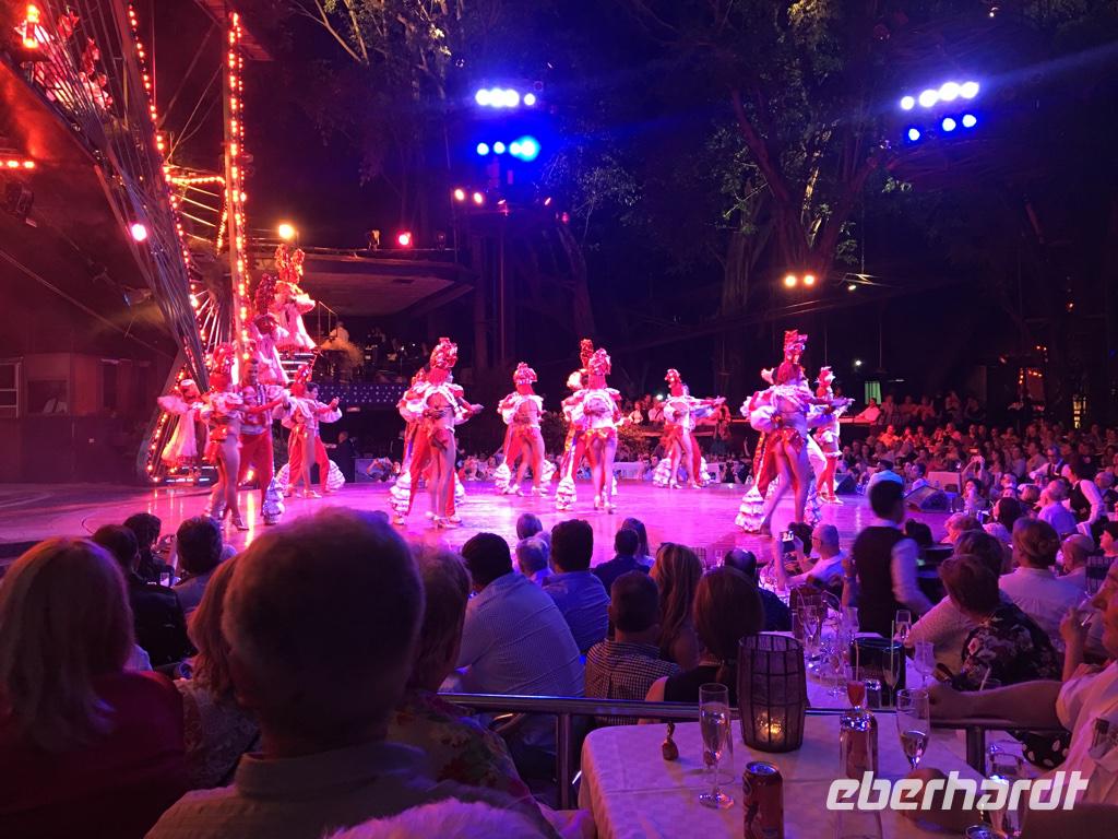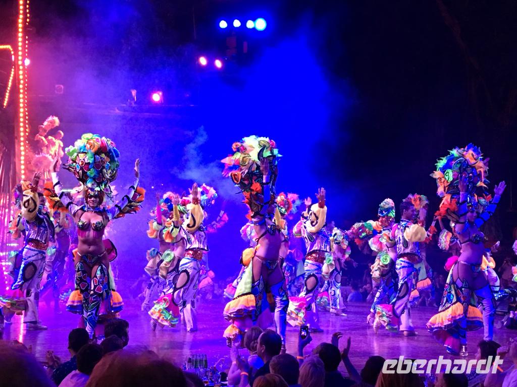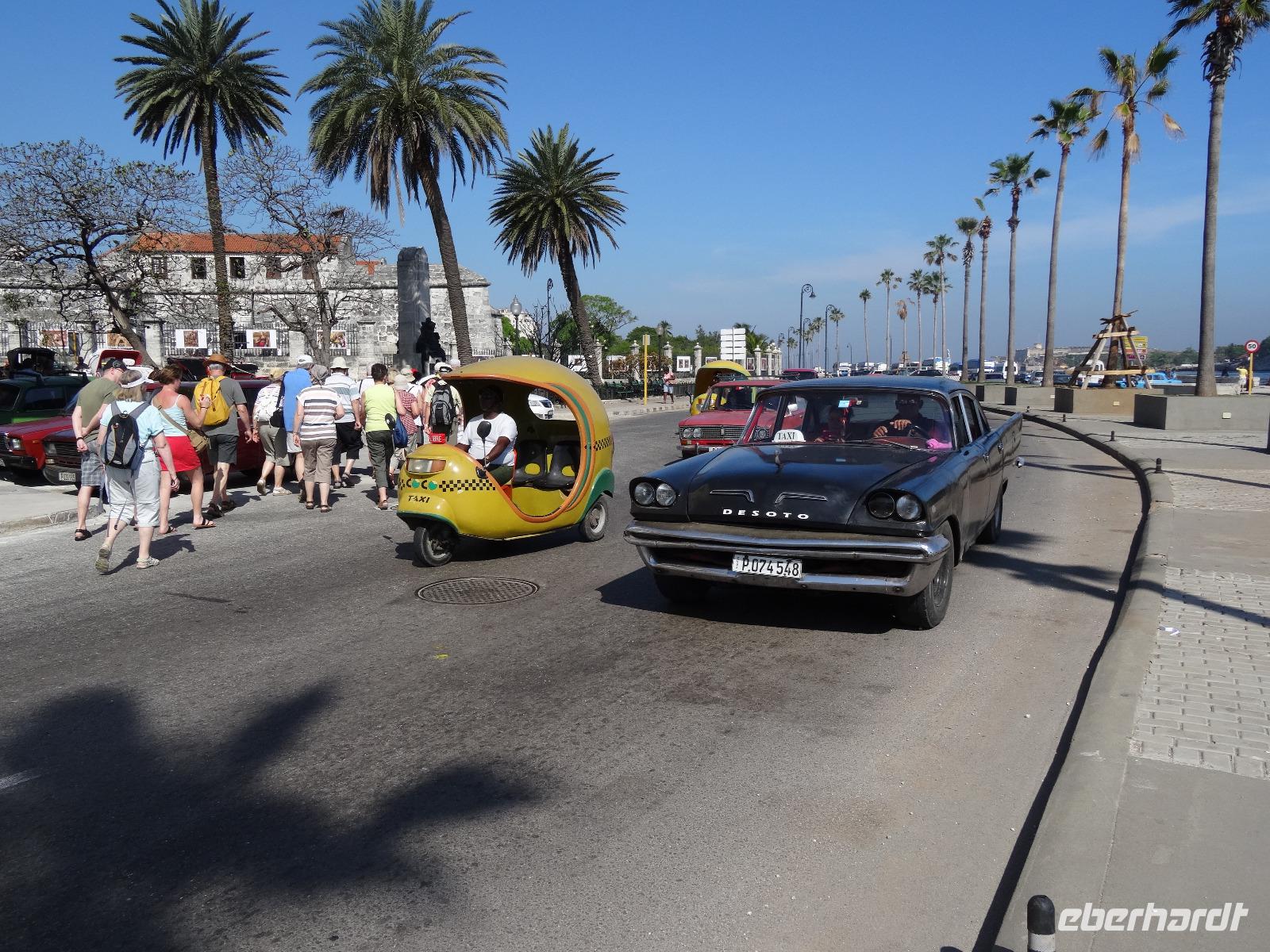 Nur noch knapp 250 Kilometer trennten uns von Havanna, doch wir ließen uns Zeit mit dem Eintreffen in der kubanischen Hauptstadt. Wir folgten zwar der Autobahn Richtung Westen, hielten aber nach knapp zweistündiger Fahrt bei der ehemaligen Zuckerrohrplantage "Australia", um hier mit einem Nostalgiezug eine Entdeckungsfahrt der besonderen Art zu machen. Statt Zuckerrohr werden hier heute Mangos, Guaven, Bananen und noch viele andere Sachen gepflanzt. Die Fahrt mit der alten Dampflokomotive ist nicht nur für Eisenbahnliebhaber eine Freude. Hinter der Lok sitzt man in offenen Wagons und kann den Arbeitern in den angrenzenden Feldern zu sehen. Zwischendurch kann man auch mal auf der Lokomotive mitfahren, was aber eine heiße und nicht ganz saubere Angelegenheit ist. Wir schauten einem Palmkletterer zu, bekommen Früchte zu kosten und können frisch gepressten Zuckerrohrsaft trinken. Alles in allem war es eine abwechslungsreiche und willkommene Unterbrechung der langen Fahrt nach Havanna. Gegen 14:00 Uhr erreichen wir dann die kubanische Hauptstadt und genießen als erstes ein gutes Mittagessen gegenüber der Festung El Morro. Im Anschluss daran begann die von den meisten mit Spannung erwartete Oldtimerrundfahrt durch einen Teil der Zwei-Millionen-Metropole. In mehr als dreißig Jahre alten Cabriolets unterschiedlicher US-amerikanischer Fabrikate, die aber alle sehr gepflegt und wunderbar dekadent aussahen, ließen wir uns durch das pulsierende Havanna chauffieren. Wir stoppten für ein paar tolle Fotos auf die Stadt innerhalb der Festung El Morro, fuhren an der weltbekannten Uferpromenade Malecon entlang und ließen die stundenlangen Reden Fidel Castros am Platz der Revolution vor unserem geistigen Auge auferstehen. Leider ging diese wunderschöne Tour irgendwann einmal zu Ende und wir mussten uns von diesen liebevoll gepflegten Raritäten, die man in dieser Anzahl und Vielfalt wohl nirgendwo sonst mehr zu sehen bekommt, verabschieden. Ein letztes Oldtimer-Erinnerungsfoto und dann checkten wir in unserem Hotel ein. Doch damit war der Tag noch nicht beendet, denn ein weiteres weltbekanntes Havanna-Highlight erwartete uns an diesem Abend noch. Nach einem schmackhaften Essen im Herzen der Altstadt fuhren wir zum Tropicana-Show-Theater, wo uns die gleichnamige Tanzshow erwartete. Es wurde ein fantastischer Abend mit tollen Tänzerinnen und Tänzern, wunderbarer Musik und vielen extravaganten Kostümen. Wir genossen mit vielen anderen Besuchern aus aller Welt dieses exklusive zweistündige Programm und gingen kurz nach Mitternacht zwar müde, aber mit vielen tollen Rhythmen im Ohr zu Bett.