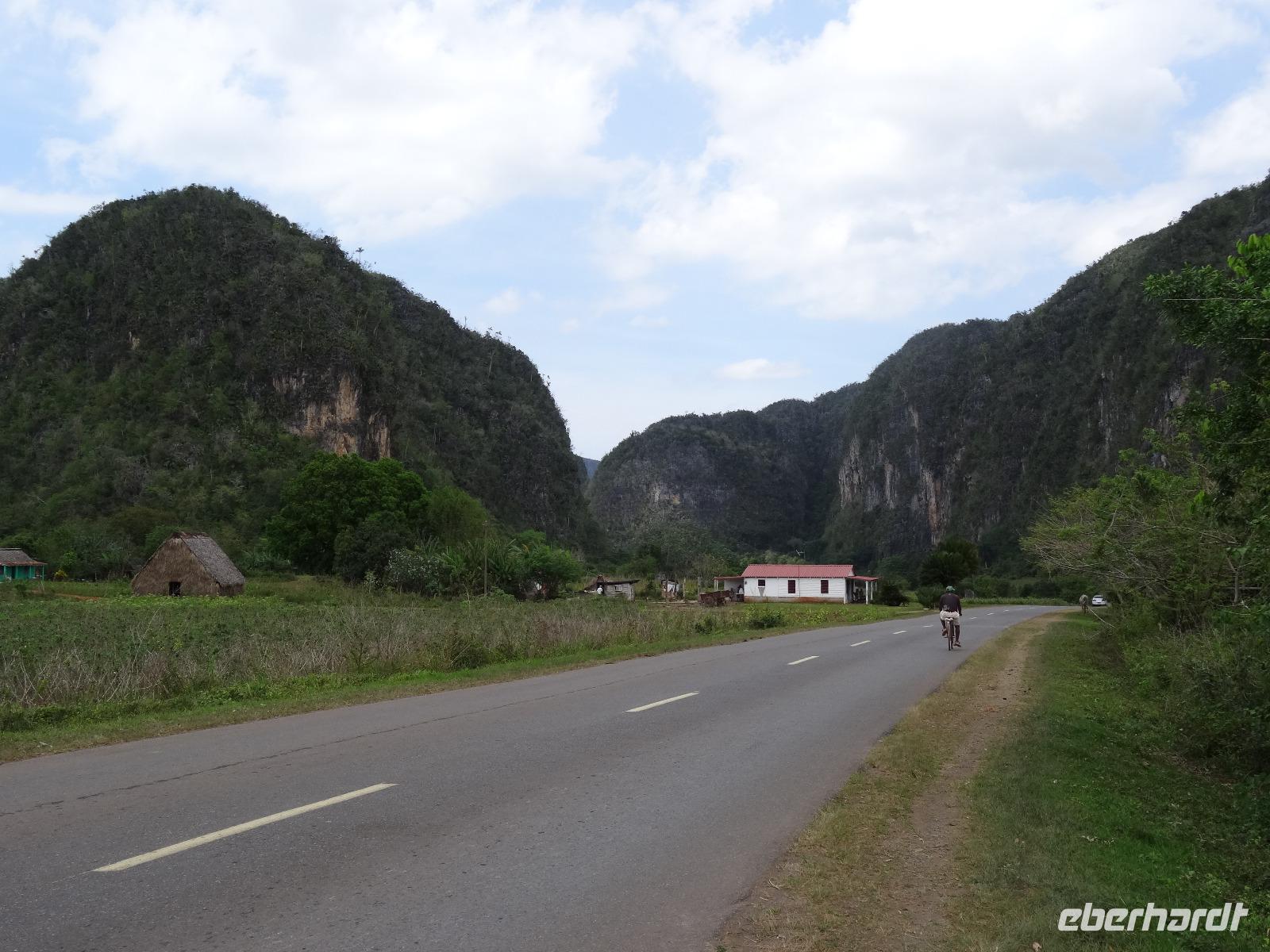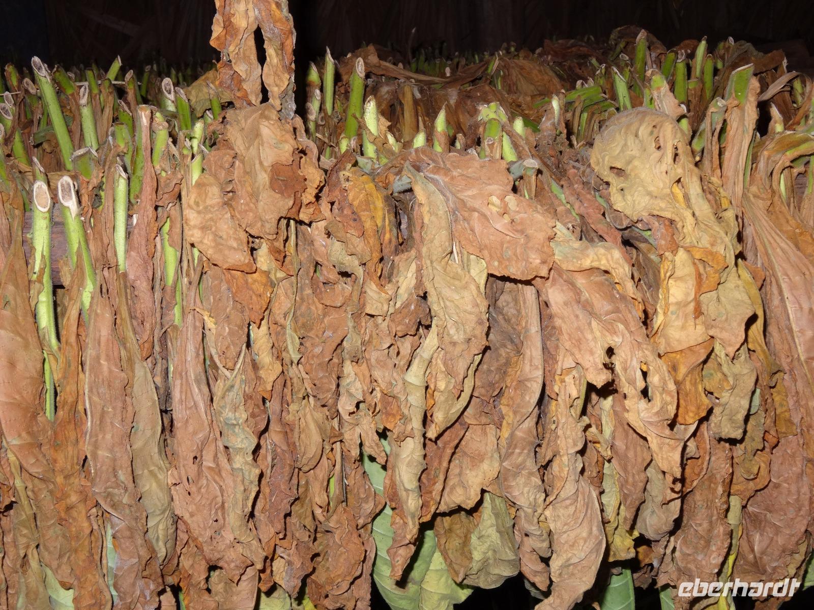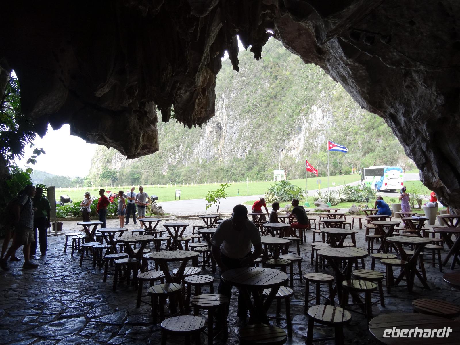 Nach zwei aufeinanderfolgend kurzen Nächten ging es auch heute wieder relativ zeitig am Morgen ins knapp 160 km entfernte Valle de Vinales, einem absoluten Besuchermagnet, Heimat des besten kubanischen Tabaks und der sogenannten "Mogotes", der für dieses Tal typischen Kegelkarstberge. Die durch die Autobahnfahrt relativ ereignislos verlaufenden zweieinhalb Stunden bis zur ersten Zwischenstation Pinar del Rio überbrückten wir mit Informationen und Erzählungen zur Geschichte und Politik des Landes sowie zur Situation und Lebensweise der Kubaner. Darüber hinaus schauten wir uns eine Dokumentation zum Tabakanbau und zur Verarbeitung desselben an. So verging die Fahrt wie im Fluge und wir erreichten Pinar der Rio noch vor der größten Mittagshitze. Unser Ziel in der Provinzhauptstadt ganz im Westen Kubas war eine Guayabita-Fabrik, welche Likör aus der Frucht Guayabita del Pinar, einer Guavenart, herstellt. Wir bekamen bei einer kleinen Führung Einblicke in die Herstellung, Reifung und Weiterverarbeitung des sehr süßen Likörs. Eine kleine Verkostung bildete dann den Abschluss des Besuches. Wir fuhren weiter zum Hotel Los Jazmines, von dessen Terrasse aus man einen überwältigenden Blick auf das vor einem liegende Vinales-Tal hatte. Wie immer in so einer Situation dankt man der Schöpferkraft von Mutter Natur, die eine anmutig und erhaben wirkende Gesteinskomposition in diesen Teil der Insel gezaubert hat. Nach einem solchermaßen fotogenen Genuss wandten wir uns wieder irdischen "Genüssen" zu und besuchten die nicht weit entfernte Tabak-Finca Paraiso, wo wir Informationen zum Anbau des besten kubanischen Tabaks bekamen. Wir besichtigten des Tabakhaus, wo die kostbaren Blätter trockneten, nahmen Erklärungen zu Fermentation entgegen und sahen dem Tabakbauern beim Drehen einer Zigarre zu, die wir dann im Anschluss "kosten" konnten. Wie fast immer wurde das Ganze durch einen aromatischen Kaffee mit dem obligaten Schuss Rum abgerundet. Für 10 kubanische (konvertierbare) Pesos gab es 10 hausgemachte Zigarren zum mitnehmen. Voll gefüllt mit jeder Menge Informationen mussten wir nun auch mal an die Füllung unserer Mägen denken. Im Restaurant Palenque de los Cimarrones, welches malerisch im Vinales-Tal lag, nahmen wir an der Bar zuerst einen göttlichen Drink, einen sogenannten "Oshun" - was Göttin des Flusses bedeutet, um anschließend durch ein kleines Höhlensystem zum Hauptrestaurant vorzudringen. Hier stärkten wir uns bei Hühnchen mit Reis und Kartoffeln, bevor wir zu einer kurzen Wanderung durch das Tal aufbrachen. Vorbei an den teilweise einsturzgefährdet aussehenden Karstfelsen gelangten wir zum "prähistorischen" Wandgemälde Mural de la Prehistoria, welches in grellbunten Farben die schöne Landschaft „bereichert". Pop-Art auf kubanisch. Wem es gefällt. Der Tag war danach schon weit fortgeschritten, so dass wir nun die Rückfahrt ins knapp drei Stunden entfernte Havanna antreten mussten.