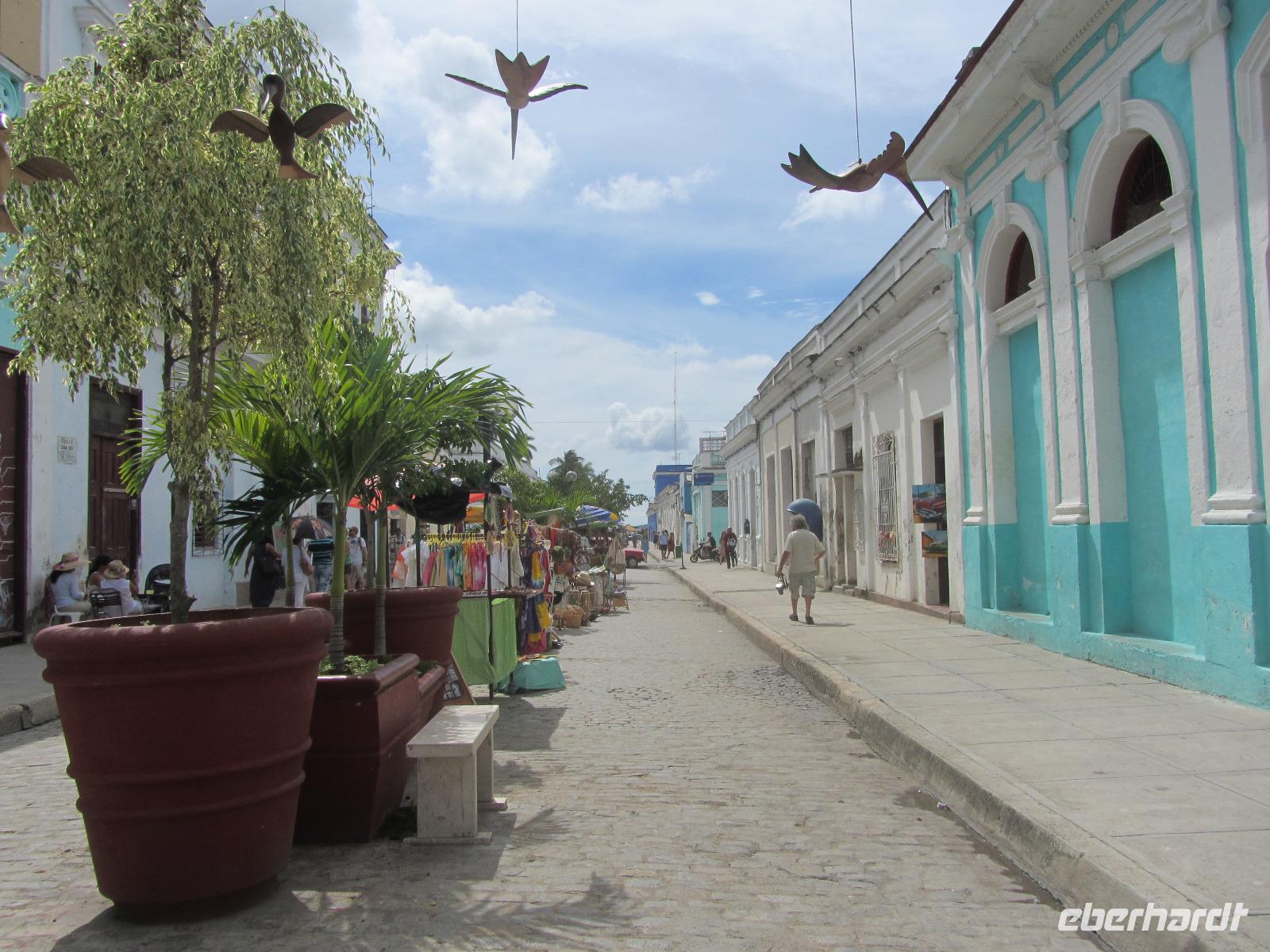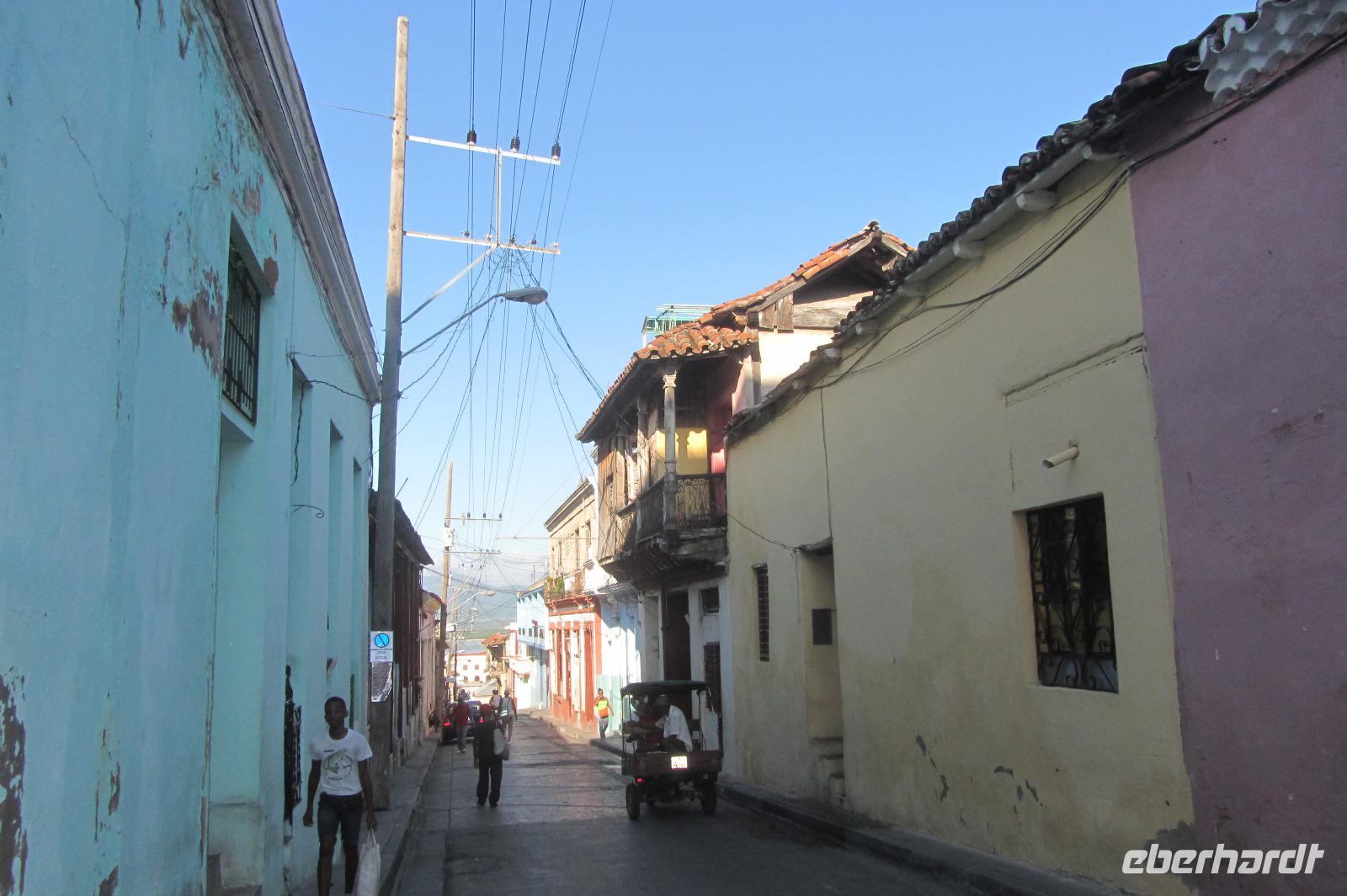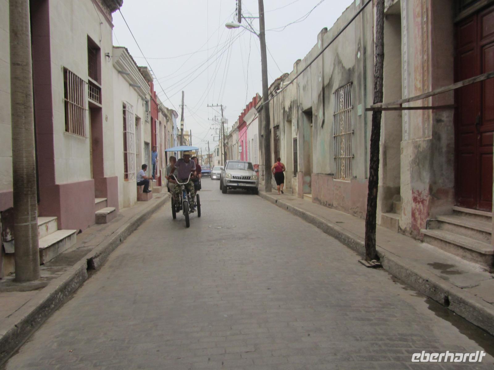 Nach dem Frühstück begeben wir uns auf eine besondere Stadtrundfahrt durch Camagüey, heute einmal etwas anders: auf Bici-Taxis oder Fahrrad-Rikschas. Wir teilen uns auf die Fahrräder auf und lassen uns je zu zweit durch die Stadt fahren. Unterwegs legen wir einige Stopps ein und verstehen nun auch, warum Camagüey als „Stadt der Kirchen" in Kuba bekannt ist. Hier entdecken wir ein wahres Paradies an Sehenswürdigkeiten und imposanten Kolonialbauten. Nach diesem besonderen Erlebnis verabschieden wir uns von der Stadt und es geht weiter in Richtung Westen nach Trinidad. Leider hat das Wetter etwas umgeschlagen, ein Tief aus Kanada begleitet uns und es regnet immer wieder.