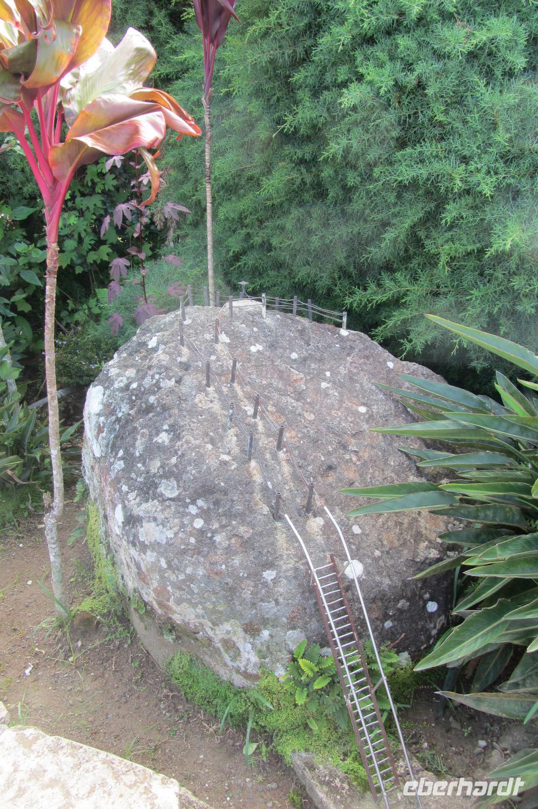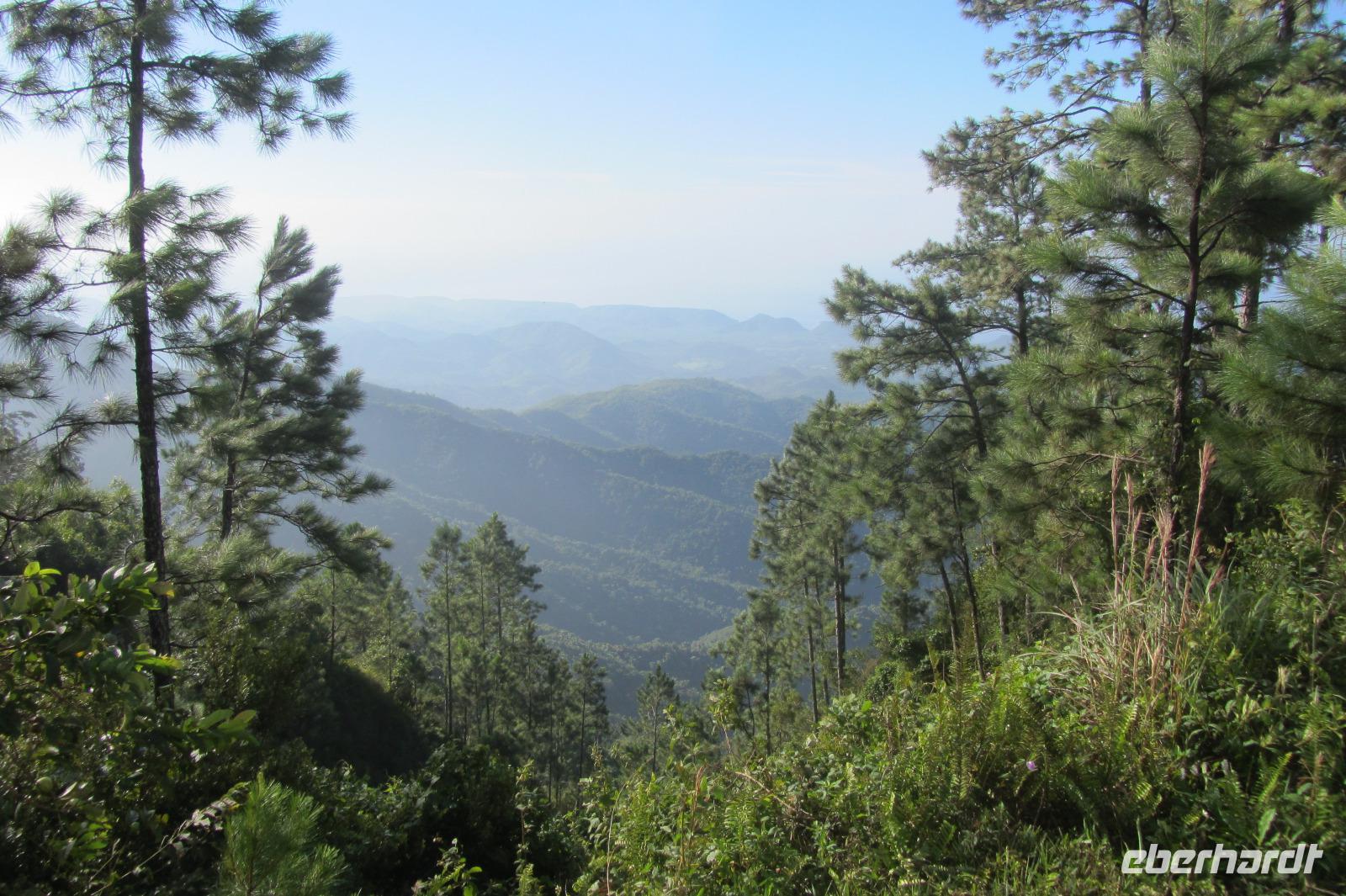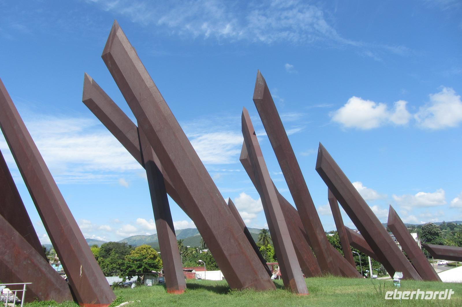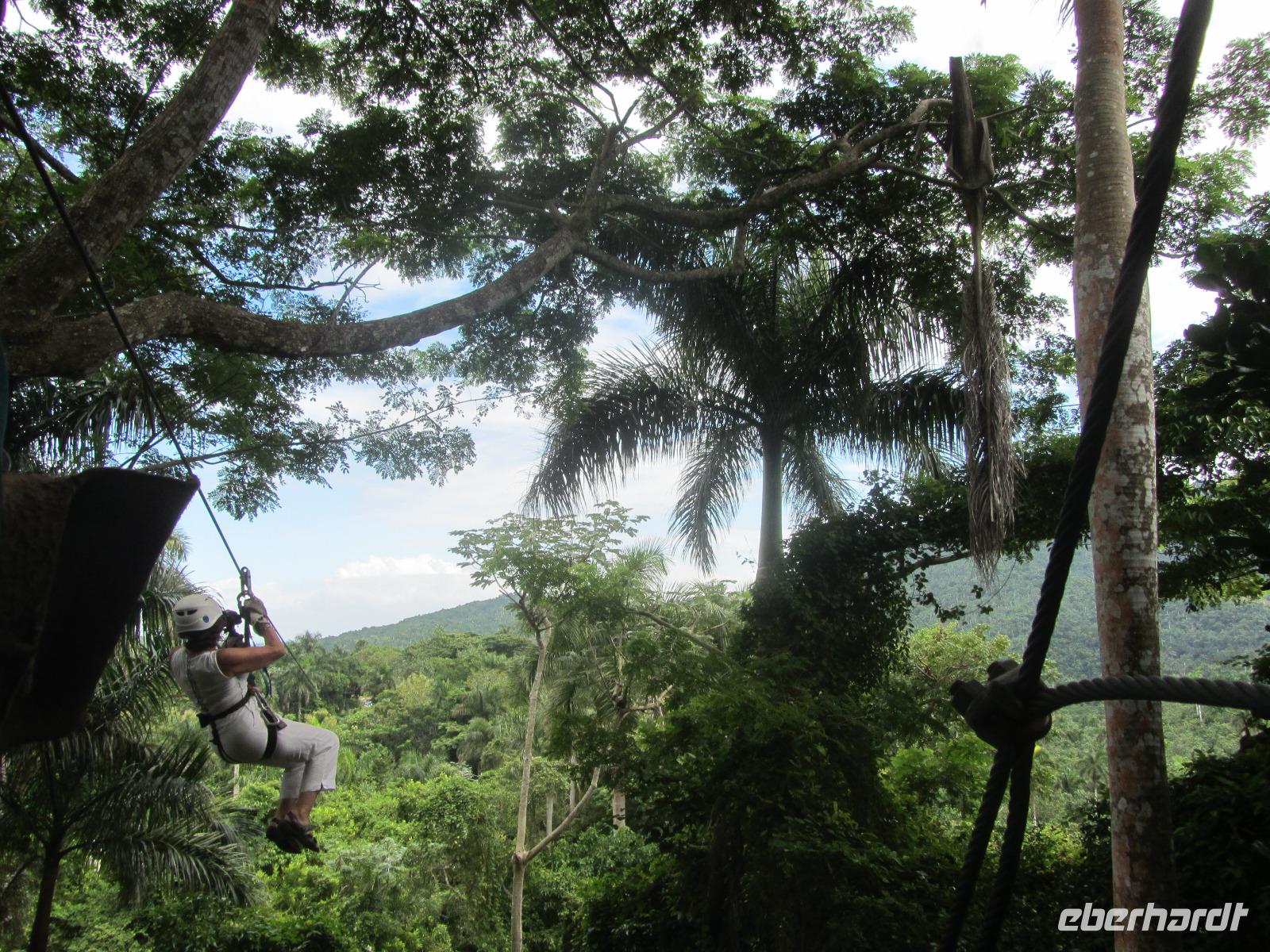 Den Plan nach Osten weiter zu fahren hat uns leider ein Hurrikan durchkreuzt, der vor zwei Wochen starke Verwüstungen in Baracoa angerichtet hat. Deshalb bleiben wir in Santiago de Cuba und unternehmen einen Ausflug in die Umgebung. Wir fahren Richtung Osten und stoppen zuerst am Fuße des Gran Piedra an einer Straße. Nach einem kurzen Spaziergang erreichen wir einen botanischen Garten „Jardin Botanico", wo wir eine eine kleine Führung erhalten. Wir bewundern zahlreiche Bromelien, Hibiskus-Blüten, Königspalmen und Orchideen. Der Garten liegt auf der Höhe von 1000 Metern.