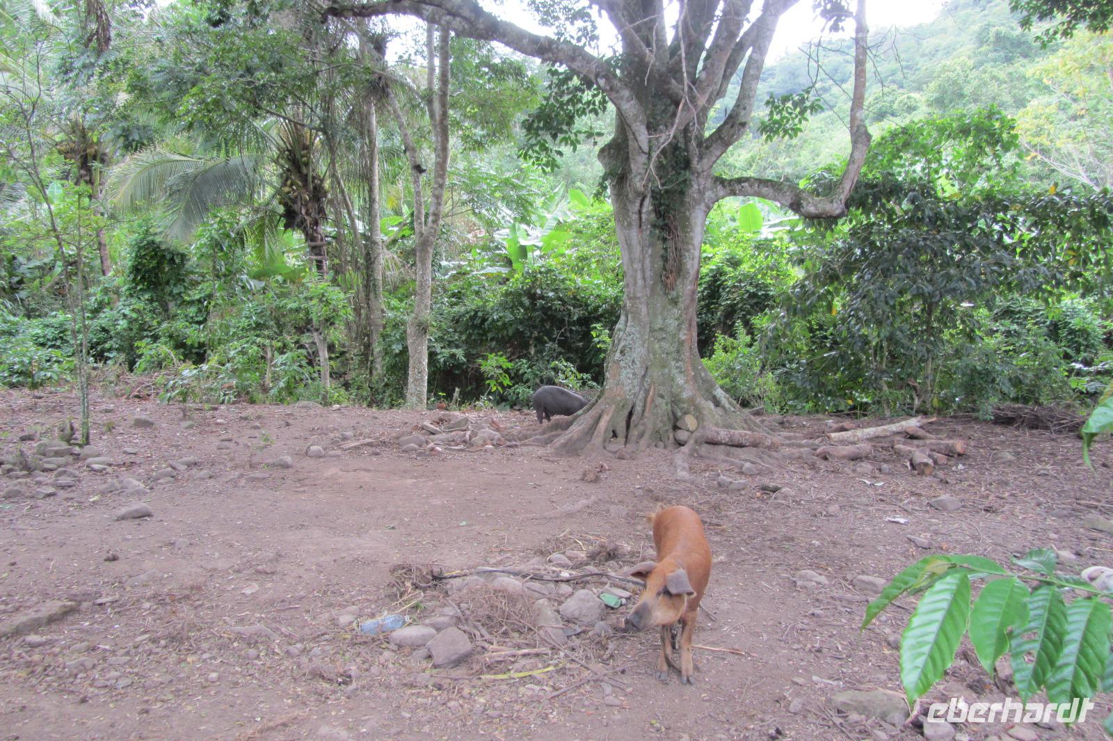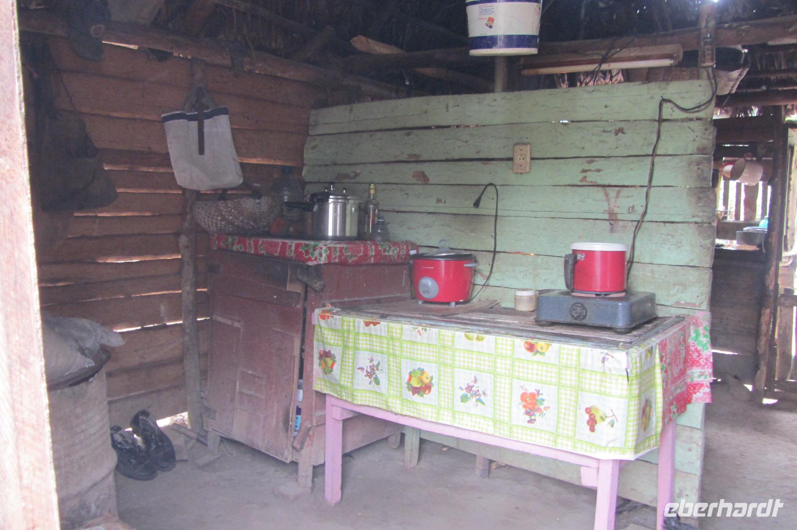 Heute wollen wir einen weiteren Ausflug in die Natur machen. Wir fahren Richtung Westen nach El Salton. Hier wollen wir wandern und baden. Leider spielt das Wetter heute nicht mit und es regnet und wir müssen umplanen. Wir kommen in einem kleinen Hotel inmitten schöner Natur an und verschnaufen etwas. Wir müssen etwas warten, damit der Regen vorbei geht und vertreiben uns die Zeit mit der Zubereitung eines Avocado-Salats. Wir schneiden die frische Avocado und würzen mit Salz, Pfeffer und Limette - das schmeckt sehr gut. Wir erkunden die Umgebung und anschließend genießen wir eines der Nationalgerichte Kubas, das Spanferkel. Es gibt ein umfangreiches Buffet mit Reis, Bohnen, Salat und Spanferkel. Anschließend fahren wir mit dem Bus und unserem Naturführer ein Stück weiter und wandern zu einer Bauernfamilie, wo wir mehr über das Leben der Einheimischen erfahren und frisch gerösteten Kaffee probieren. Gegenüber befindet sich eine Schule, die wir anschließend besuchen. Die Mädchen und Jungen tragen Uniformen und für einen Tag in der Woche steht sogar ein Computer-Kabinett zur Verfügung. Anschließend fahren wir wieder zurück nach Santiago de Cuba, wo wir heute das umfangreiche Buffet unseres 5-Sterne-Hotles genießen.