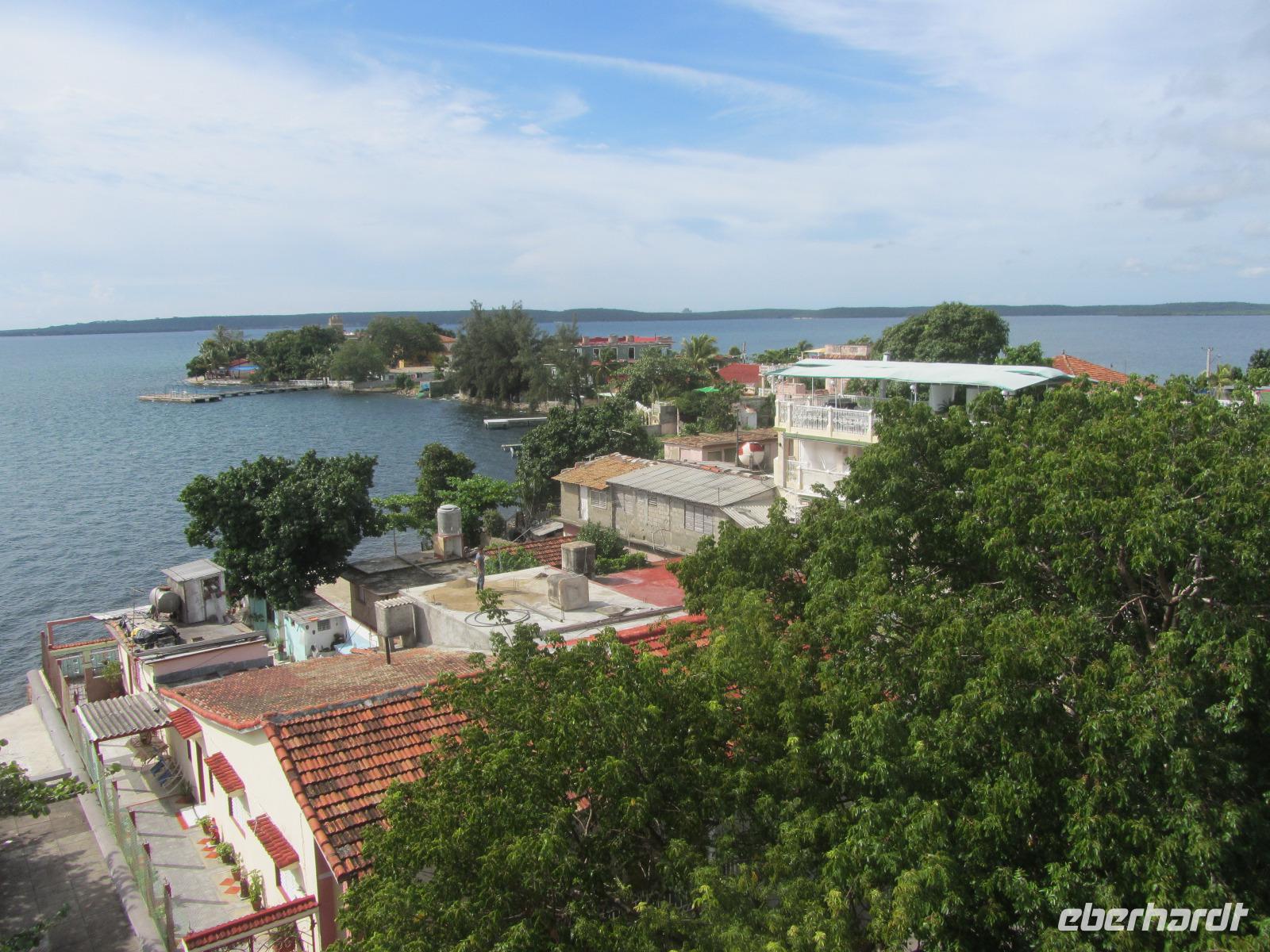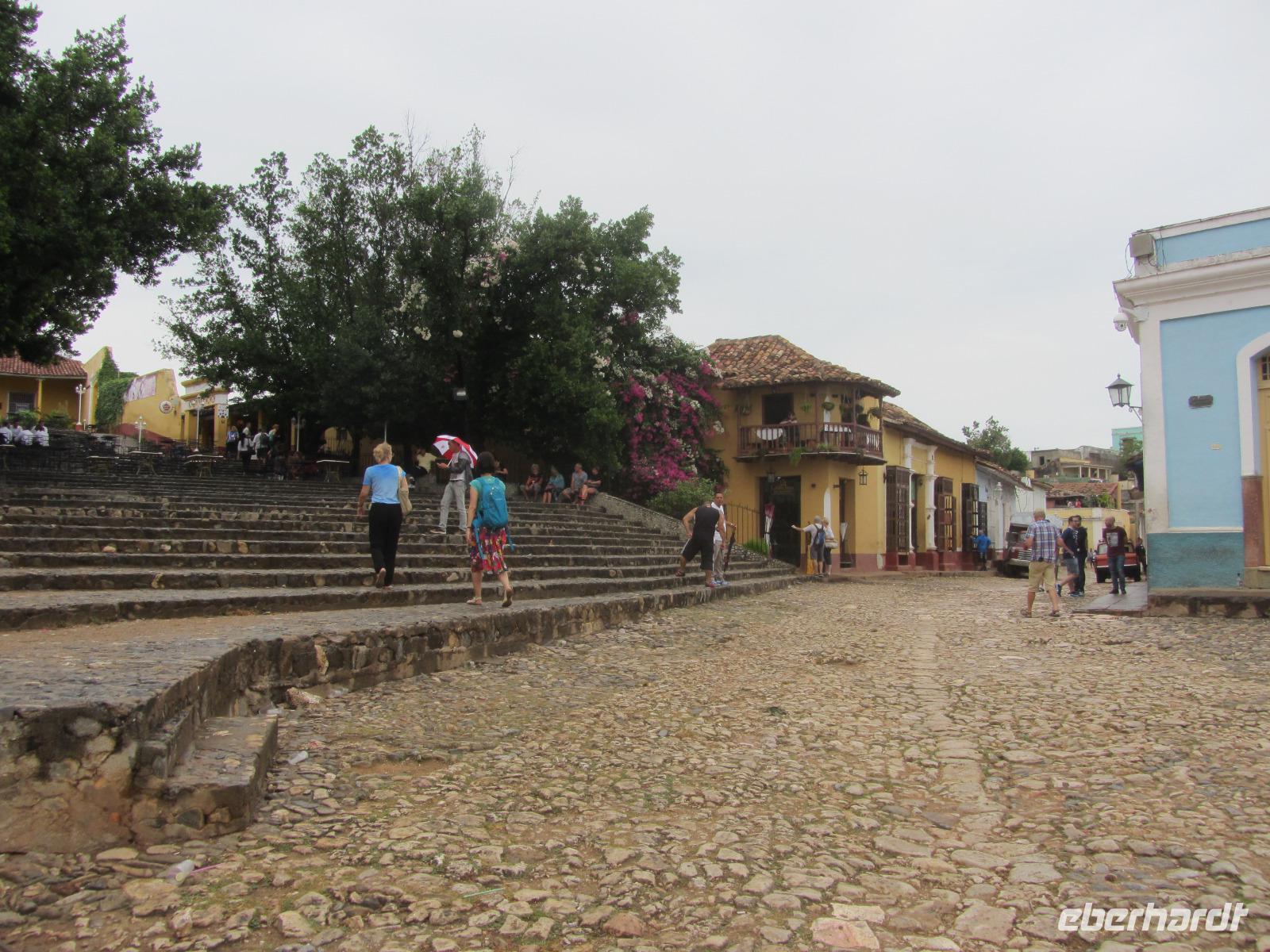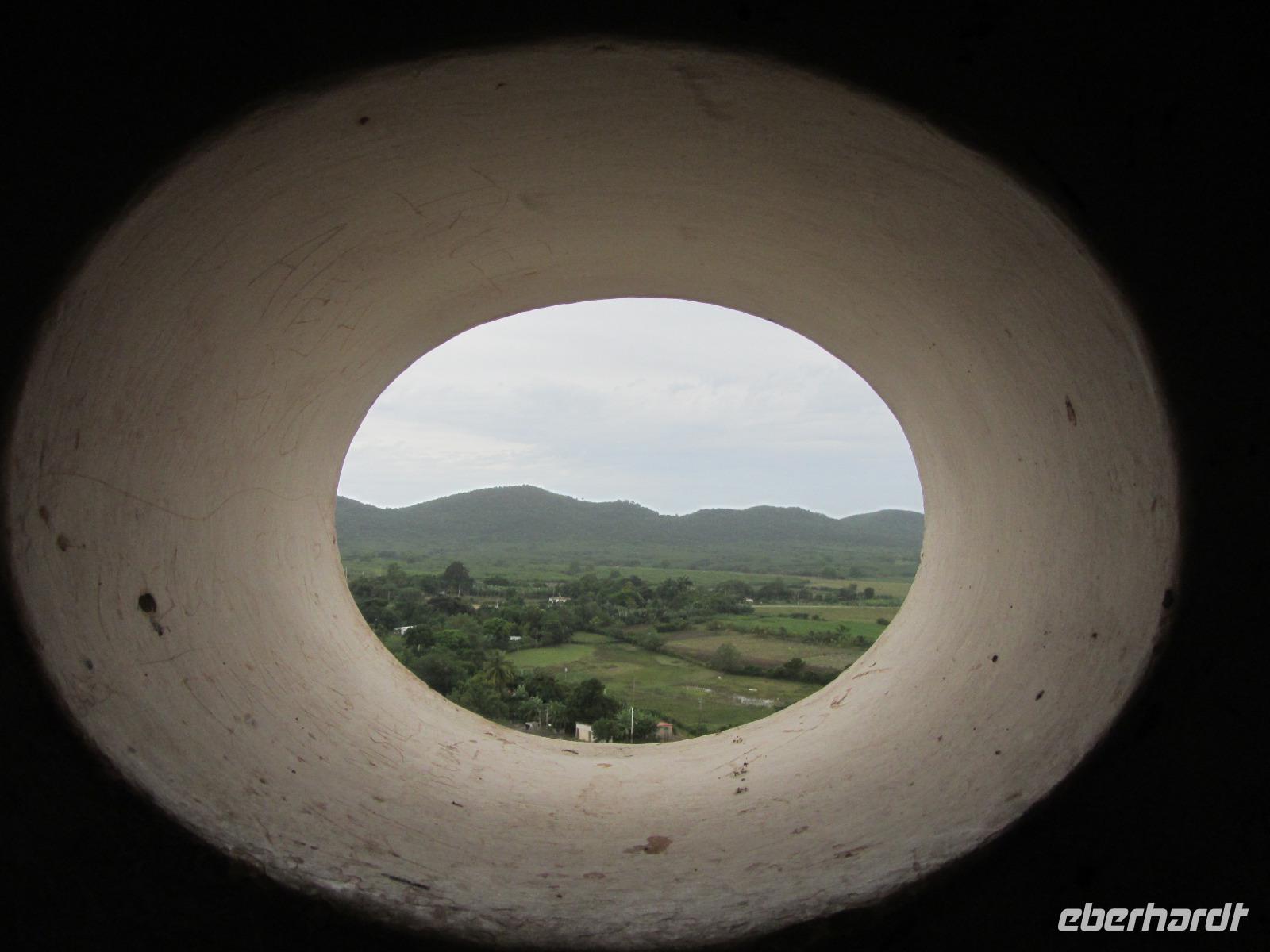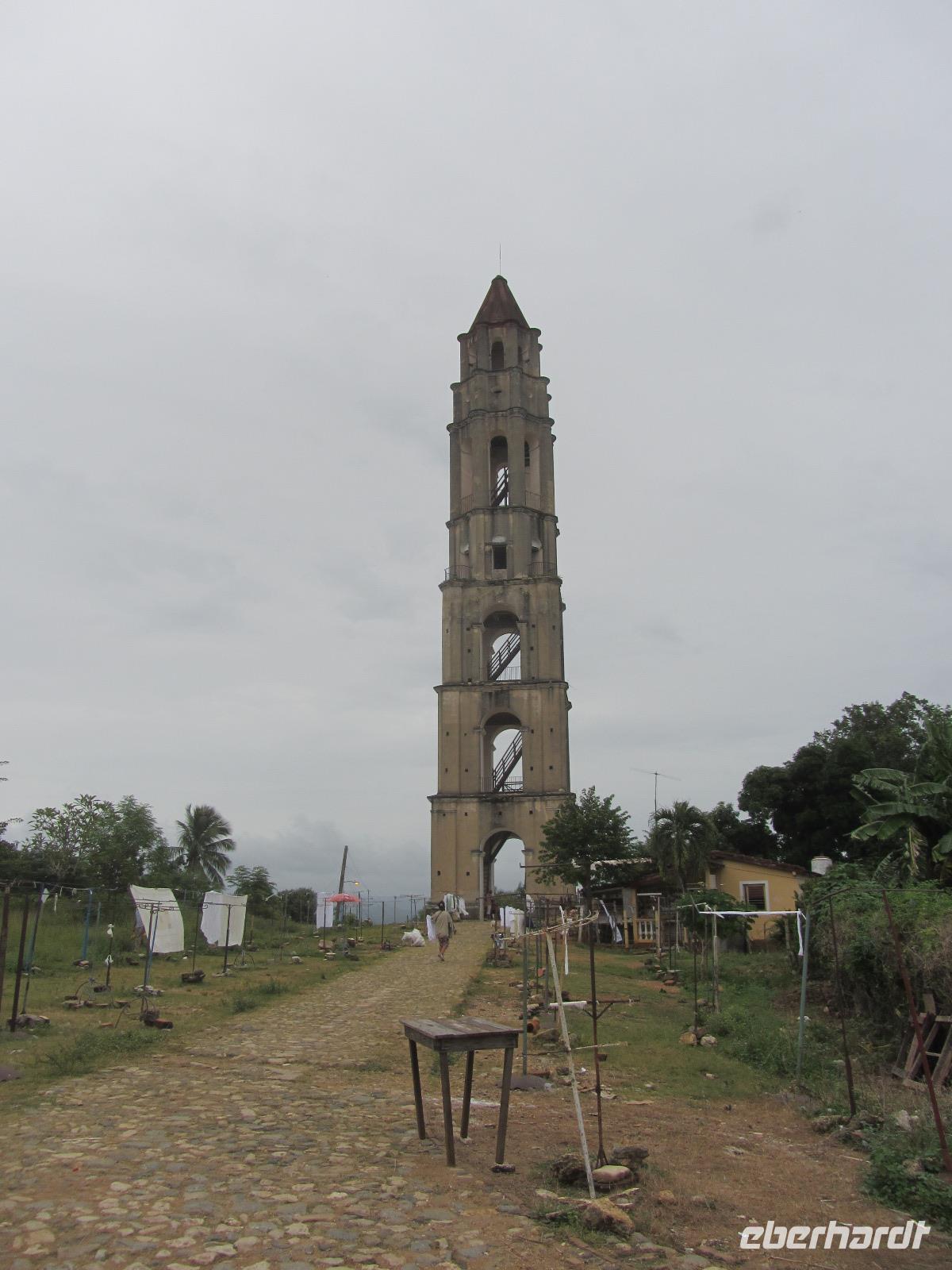 In Sancti Spiritus essen wir heute in einem Restaurant direkt am Fluss zu Mittag. Unser Essen wird frisch vor unseren Augen zubereitet. Anschließend besuchen wir das Landhaus Manaca Iznaga, aus dessen Mitte der charakteristische 50 Meter hohe Iznaga Turm ragt. Rund um dieses Dorf befand sich im 19. Jahrhundert die größte Zuckerrohrplantage, die der Familie Iznaga gehörte. Um den Turm rankt sich eine Legende von zwei Brüdern, die um die Liebe einer schönen Frau stritten. Nach dem erfrischenden Cocktail steigen die meisten von uns den 7-stöckigen Turm nach oben. Von dort genießen wir eine traumhafte Aussicht über das Zuckerrohrmühlental, leider mit wolken-verhangenen Himmel.