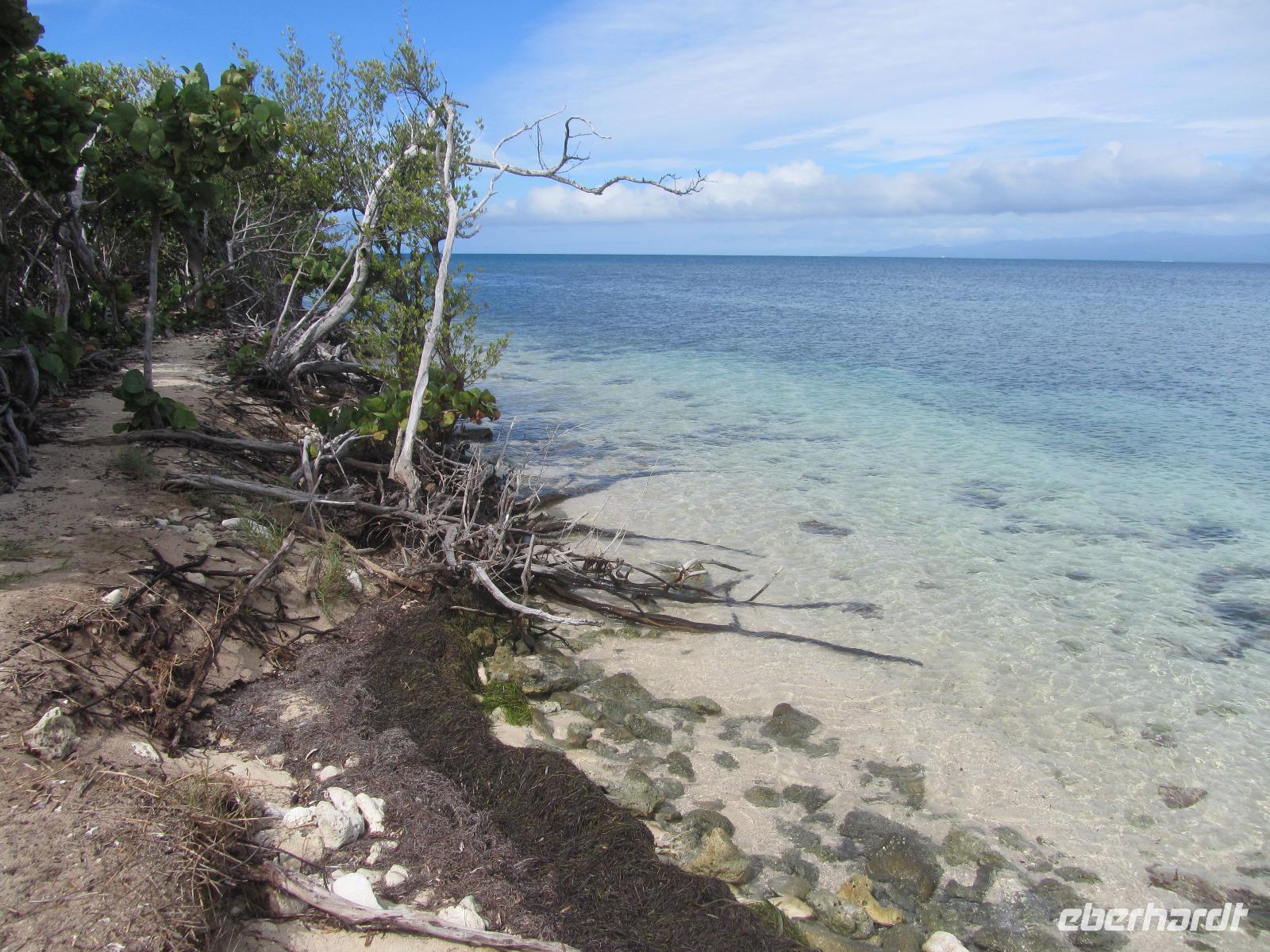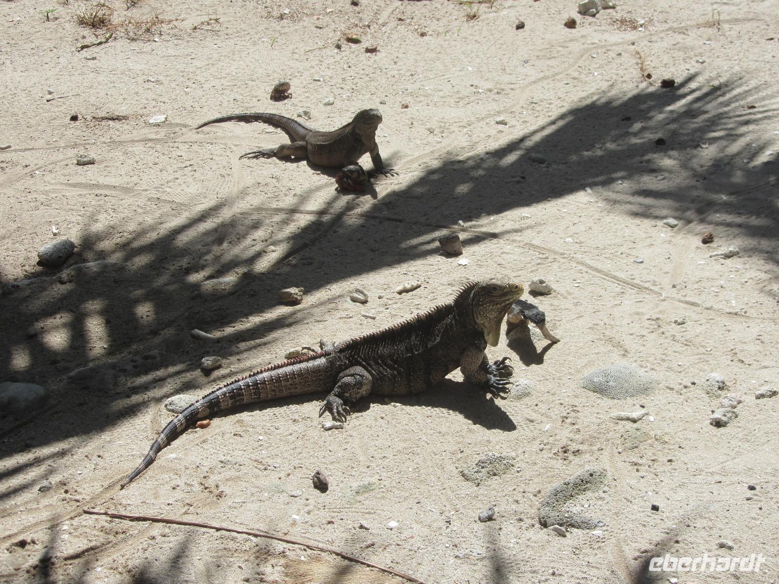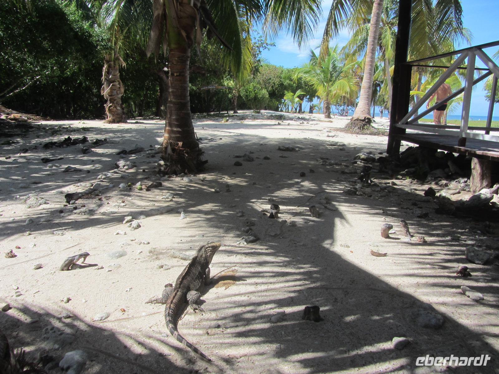 Immer noch bangen wir um das Wetter. Leider hat sich in den letzten Tagen eine Tropische Depression breit gemacht, es regnete und ist bewölkt. Aber heute sieht es endlich wieder gut aus. So starten die meisten von uns zu einem Ausflug mit dem Katamaran auf die Karibikinsel Cayo Blanco. Die Schnorchel-Freunde unter uns entdecken die bunte Tierwelt unter Wasser und die anderen wandern entlang der Küste und entdecken Muscheln, Fossilien und verschiedene Vögel. Wir genießen auch das Meer und den Sand. Wir fühlen uns hier wie Robinson Crusoe. Besonders überrascht sind wir, als die Leguane ganz nah zu uns kommen und wir sie von allen Seiten fotografieren können. Nach einer leckeren Meeresfrüchtepaella vertreiben wir uns die Zeit mit den unzähligen Einsiedlerkrebsen auf der Insel und natürlich einem Glas Rum (oder zwei?). Wir genießen den Strand oder unternehmen einen ausgedehnten Spaziergang am hellblauen Wasser der Karibik. Am Abend treffen wir uns alle wieder im Restaurant La Vigia, wo wir heute mal ganz schick a la carte zu Abendessen.