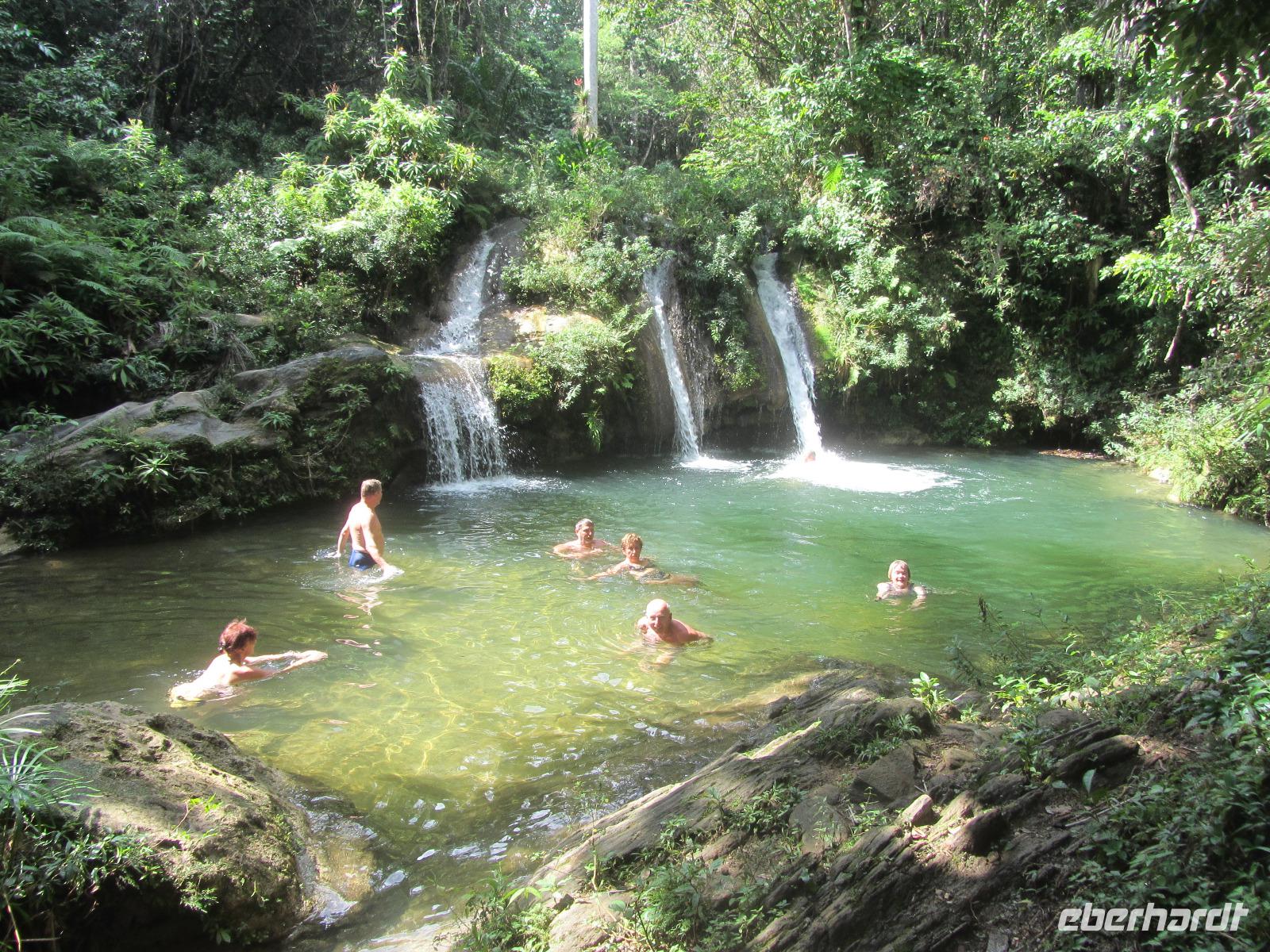 Wir erreichen den Nationalpark Banao - noch ein echter Geheimtipp - durch den uns heute unsere Wanderung führt. Wir haben Glück, die Sonne scheint und wir haben bestes Wanderwetter. Gemeinsam mit unserem Führer wandern wir über Stock und Stein, durch Bäche und über Wurzeln tief in den Regenwald und erfahren mehr über die Natur hier mit mehr als 150 endemischen (nur in Kuba heimischen)Pflanzenarten.Weiter geht es über Stock und Stein, schlammigen roten Lehmboden und über kleine Kletterpassagen tiefer durch den Regenwald.
