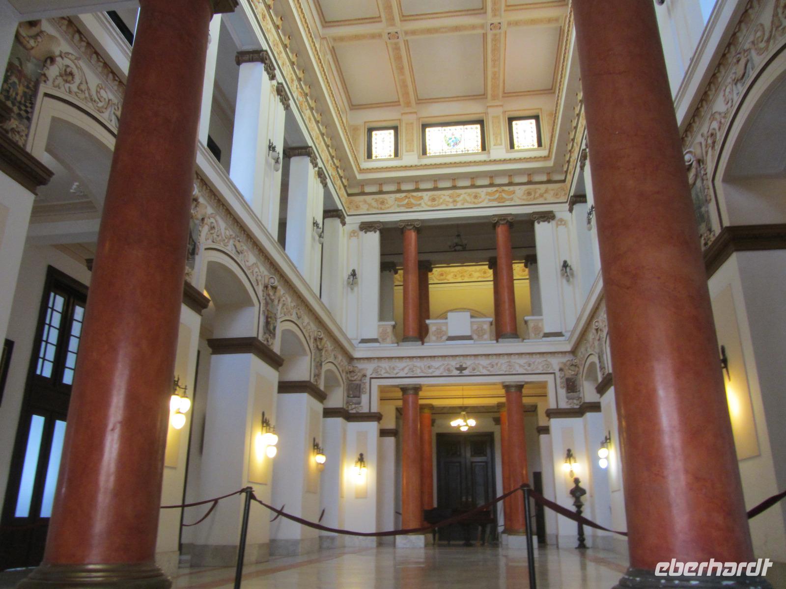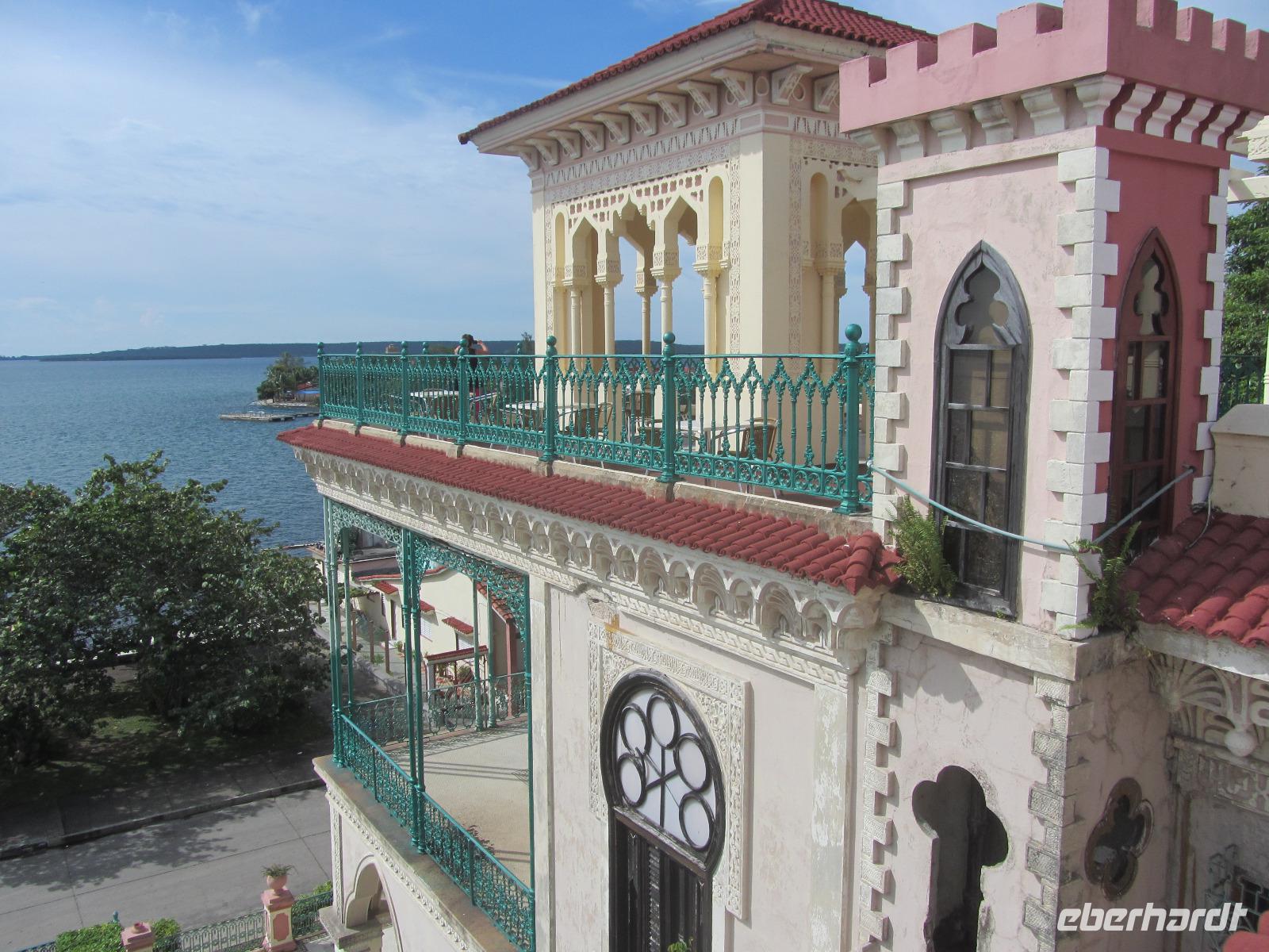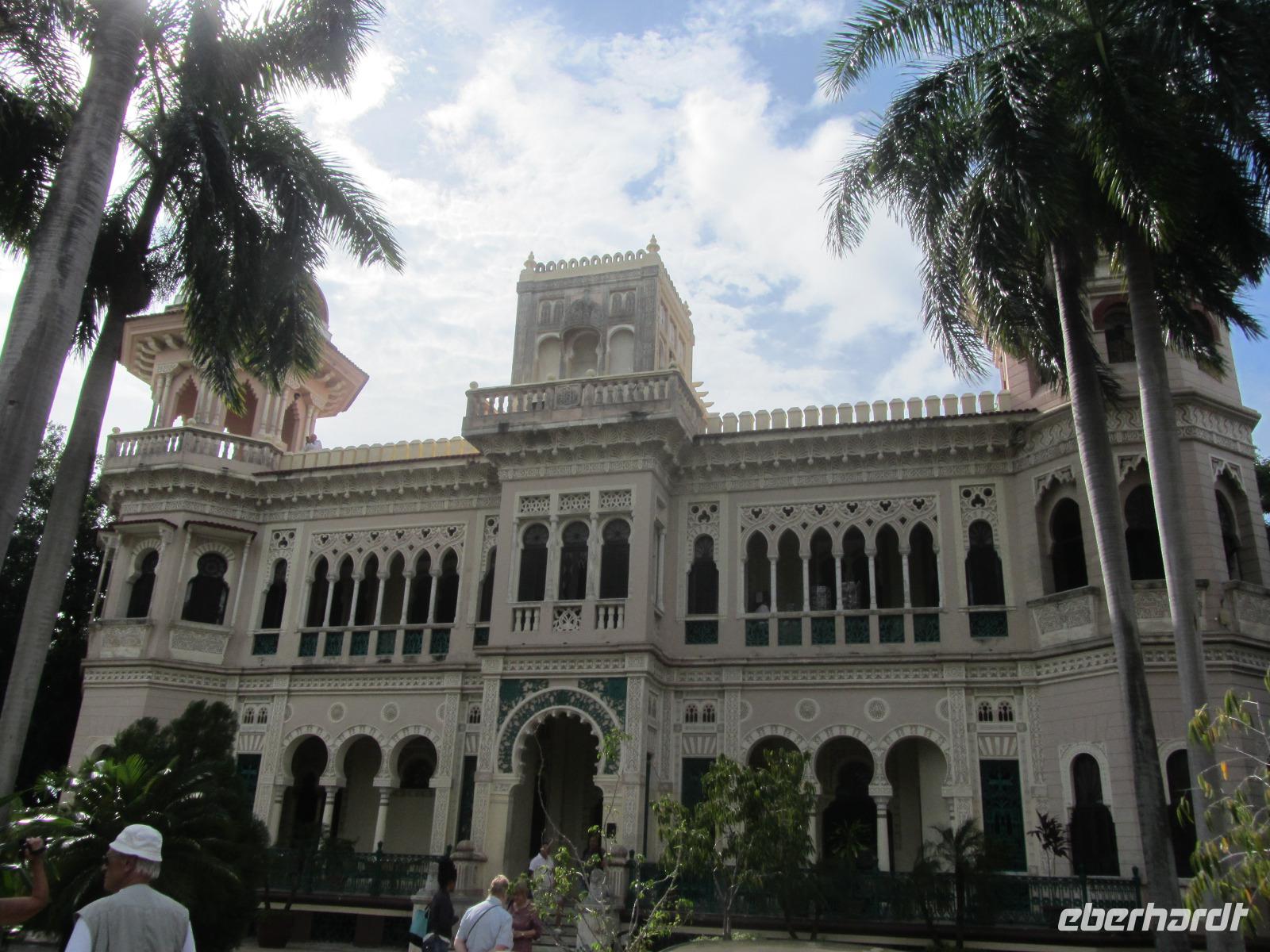 Nach dem Frühstück verlassen wir die Stadt. Vorbei an Karibikstränden und Zuckerrohr-Feldern gelangen wir zum Jardín Botanico in der Nähe von Cienfuegos. Der Park wurde 1901 von einem US-amerikanischen Zuckerbaron gegründet, der seltene und wertvolle Arten aus aller Welt sammelte. Wir lernen verschiedene Palmen-, Ficus- und Hibiskusarten kennen. Unsere Naturführerin Alicia begleitet uns und zeigt uns Bambusarten, einen Ebenholzbaum, Kanonenkugelbäume, Litchibäume und vieles mehr. Nach der Ankunft in Cienfuegos hat Eberhardt als Überraschung für uns heute den Besuch des Palacio del Valle vorbereitet. Wir bewundern diesen beeindruckenden Palast und genießen einen Cocktail auf der Dachterrasse mit herrlichem Ausblick.