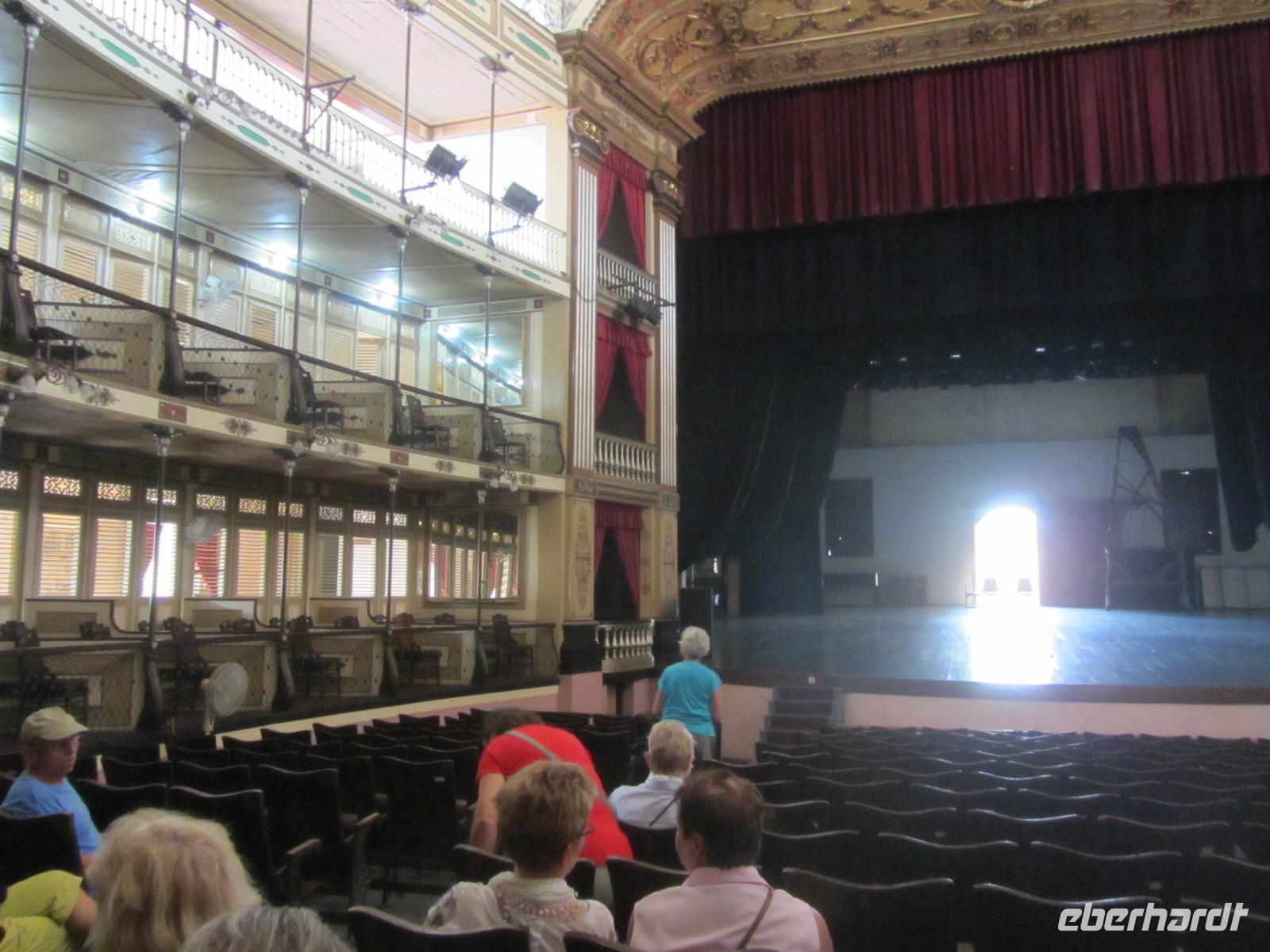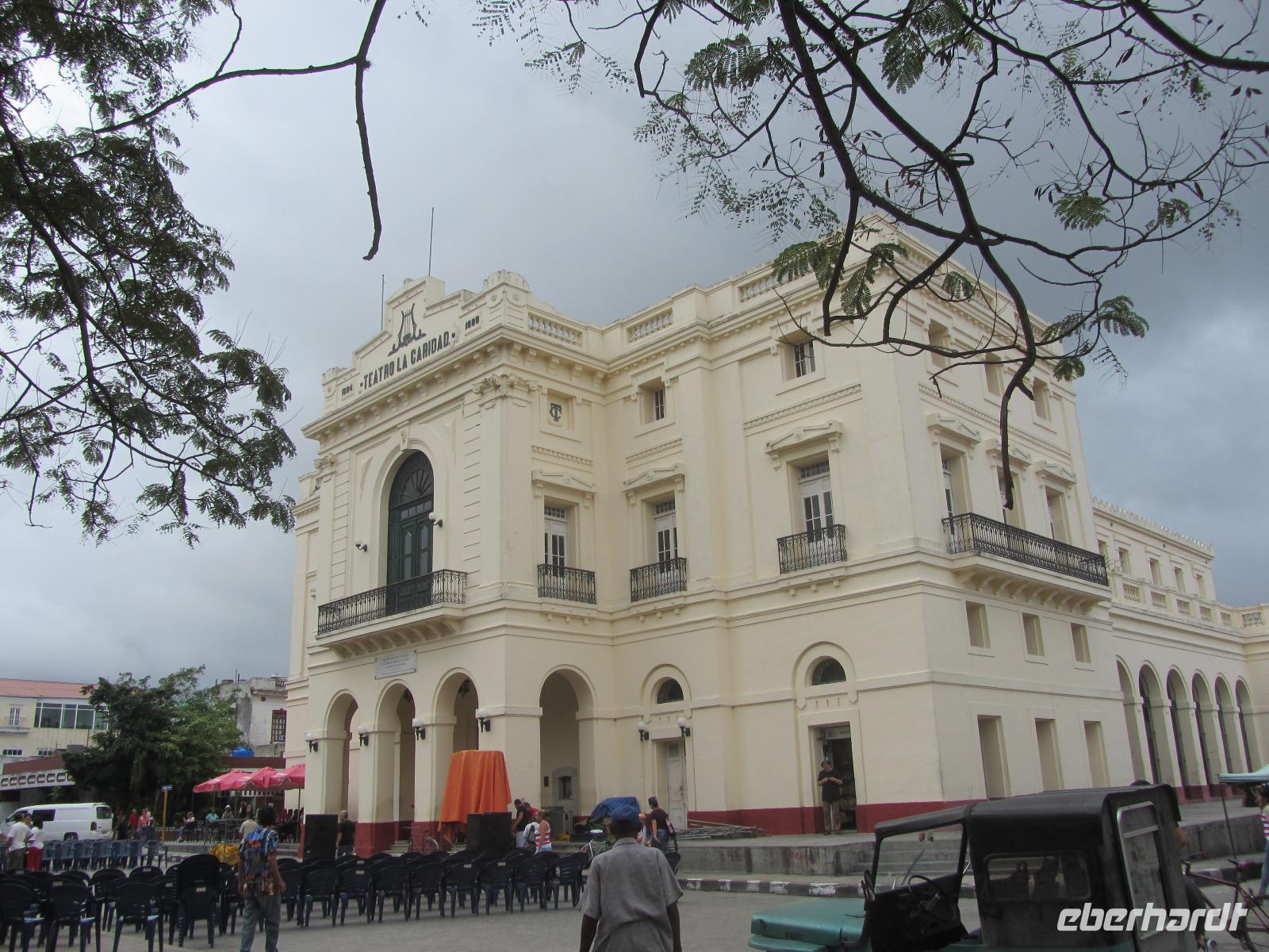 Anschließend fahren wir ins Zentrum der 1819 gegründete Kolonialstadt, die viel Geschichte und interessante Bauwerke bietet. So verstehen wir auch, dass Cienfuegos den Namen „Perle des Südens" trägt. Beim Spaziergang auf der mit drei Kilometern längsten Allee von Kuba, dem Prado, finden wir viele Erinnerungen wir zum Beispiel eine Statue des hoch verehrten Musikers Benny More. Danach spazieren wir auf dem Boulevard, der belebten Einkaufsstraße, zum Parque Marti. Hier befindet sich das Teatro Terry (dort hat schon Caruso gesungen), eines der prunkvollsten Theater des Landes, was wir besuchen. Heute haben wir tolles Wetter, die Sonne meint es gut mit uns. Zum Mittagessen fahren wir weiter nach Santa Clara. Wir essen in einem Paladar mitten in der Stadt, einem privat geführten Restaurant. Wir bewundern unseren Busfahrer Emilio, wie er uns sicher durch die engen Gassen chauffiert. Nach dem Essen und einem kurzen Spaziergang durch die Stadt fahren wir in unser Hotel Los Caneyes, wo uns am Abend ein leckeres Buffet mit kubanischen Spezialitäten erwartet. Den Nachmittag nutzen wir zur Erholung und Entspannung, einem Bad im Pool oder einem Spaziergang durch die herrlich angelegte Garten-Anlage. Am Abend sehen wir eine Modenschau im Hotel.