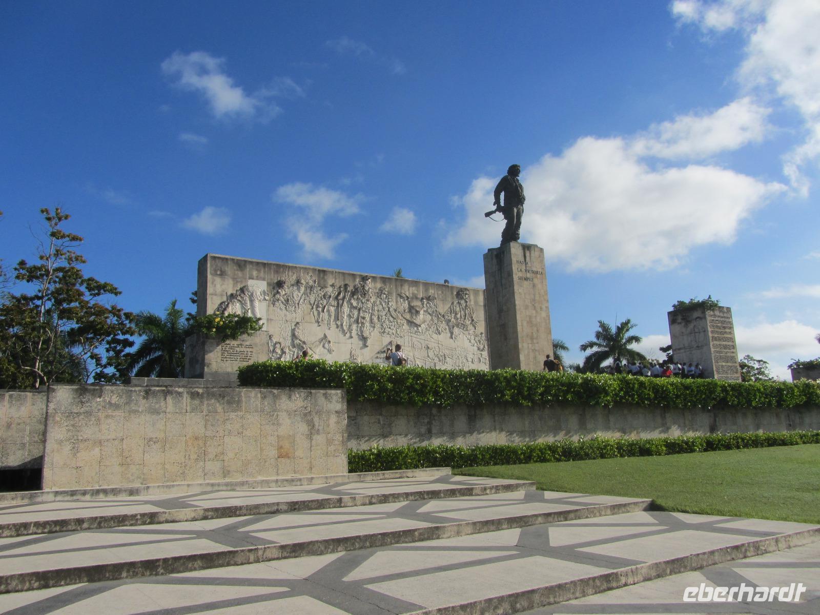 Heute erwartet uns ein Höhepunkt, das Mausoleum von Che Guevara. Der Revolutionär hat sich bis zum heutigen Tag weltweit als Mythos und Ikone etabliert, sein Gesicht ziert Hauswände und ist auf riesigen Postern in ganz Kuba zusehen. Wir hören viele spannende Geschichten über diesen Argentinier, der eine so hohe Bedeutung für die Kubaner hat. Zuerst gehen wir auf den Platz der Revolution. Wir bestaunen das ihm zu Ehren erbaute Monumento y Memorial. Auf einem gewaltigen Stein thront eine circa sieben Meter hohe Statue. Daneben steht der in Stein gemeißelte Abschiedsbrief an Fidel. Den Abschiedsbrief hören wir auf der Weiterfahrt im Bus.