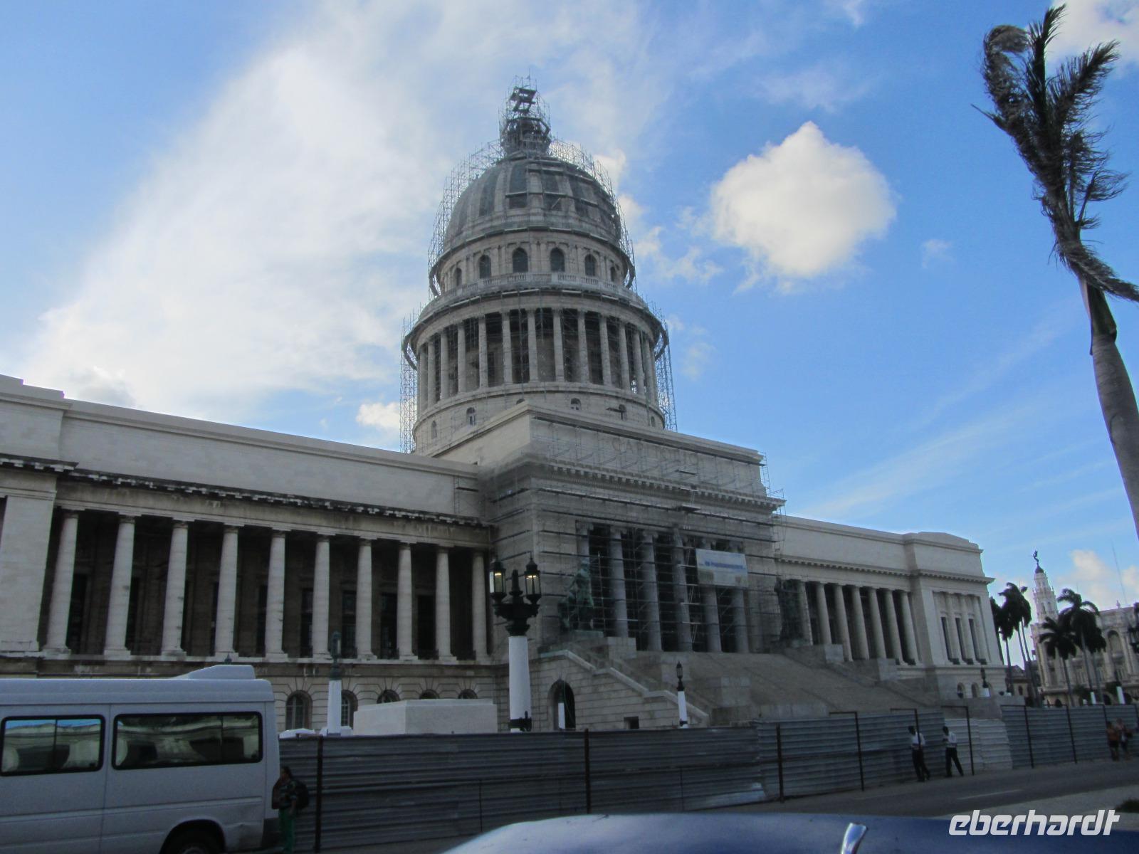 Danach geht es weiter zum Höhepunkt der Reise, in die Hauptstadt Havanna, die auch als „Alte Dame" der Karibik bezeichnet wird. Die Fahrt nach Havanna dauert circa drei Stunden und wir durchqueren dabei die Insel. Unterwegs genießen wir noch eine leckere Piña Colada. Havanna begrüßt uns mit seiner Kolonialpracht bei bestem Wetter. Wir spazieren durch die Altstadt und spüren das kubanische Leben auf dem Weg in ein tolles Restaurant. Danach begeben wir uns auf eine Tour mit Oldtimer durch Havanna und lassen die Atmosphäre der Stadt auf uns wirken. Der Wind pfeift uns um die Ohren. Zuerst fahren wir zur Christus-Statue, von der wir einen herrlichen Überblick über die Stadt genießen. Ein Auto wird unterwegs von der Polizei angehalten. Danach fahren wir weiter entlang des Malecons zum Stadtviertel Miramar und zum Platz der Revolution, wo die Statue von Jose Marti über dem Platz thront. Weiter geht es vorbei am Capitol zu unserem heutigen luxuriösen Hotel Iberostar direkt am Parque Central. Abends fahren wir zum Restaurant nahe des Kathedralen-Platzes und genießen unser Menü auf der Dachterrasse mit Blick auf das Meer, wo wir auch ein Kreuzfahrt-Schiff auslaufen sehen. Auch unser Hotel verfügt über eine Dachterrasse mit wundervollem Ausblick auf das Capitol und den Parque Central.