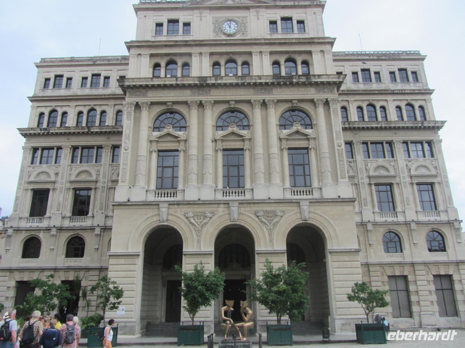 Wir fahren an der Moncada Kaserne vorbei, wo 1953 die erste Revolution stattfand. Heute befinden sich hier ein Museum und eine Schule. Diese Kaserne war Ziel des berühmten Ansturms von Fidel Castro auf den zweitgrößten Armee-Stützpunktes des Landes und ein Zeichen zum Beginn des bewaffneten Kampfes gegen die Diktatur. Auch die Einschusslöcher von damals konnten wir noch gut sehen.