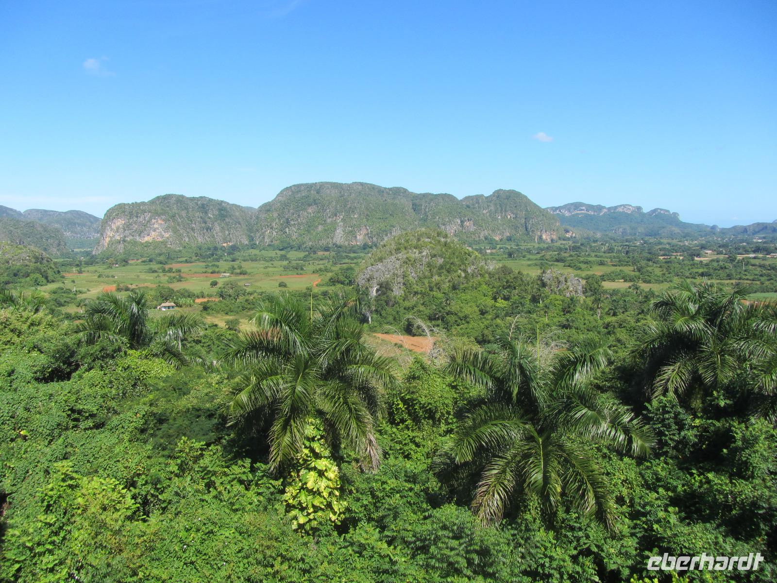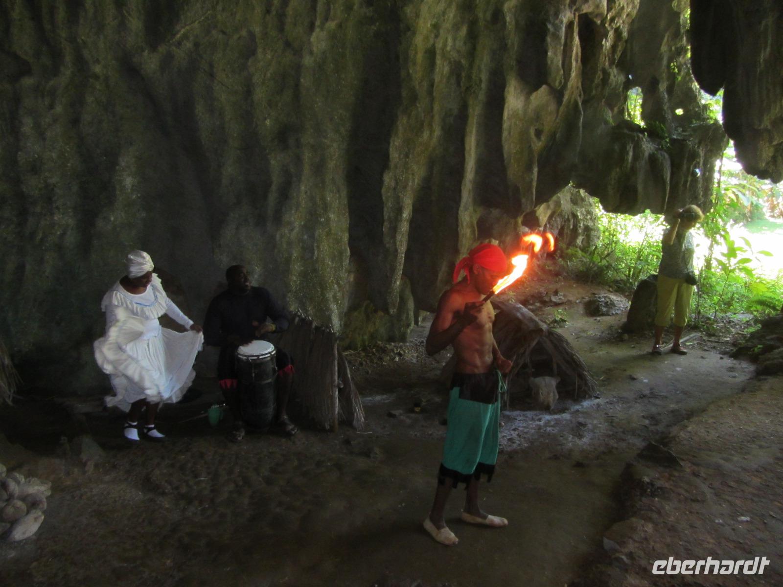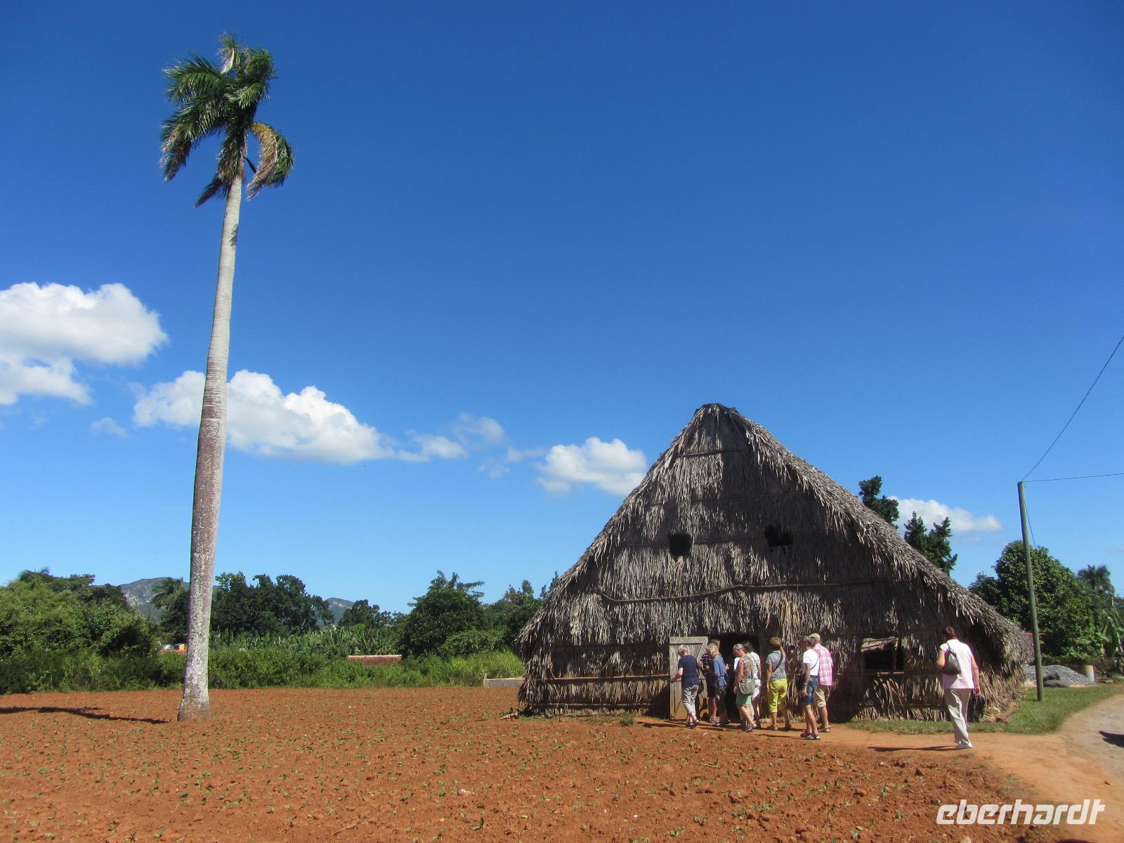 Anschließend besuchen wir einen Tabak-Bauern, der uns die Zigarrenherstellung vorführt und es findet sich auch ein Mutiger in der Gruppe, der die frisch gedrehte Zigarre probiert. Wir schauen uns die Tabakfelder an und besichtigen das Haus der Familie des Tabakbauern. Weiter fahren wir zu einem herrlichen Aussichtspunkt mit wunderbarem Blick auf die vielfotografierten Kegelkarstfelsen. Auf dem Weg zu unserem heutigen Restaurant fahren wir an vielen Karstfelsen, Tabakfeldern und Tabakhütten vorbei. Zu unserer Überraschung spazieren wir durch eine Höhle Cueva de San Miguel und erreichen unser Restaurant. Nach der Ankunft erleben wir noch eine Vorführung mit viel Tanz und Feuer.