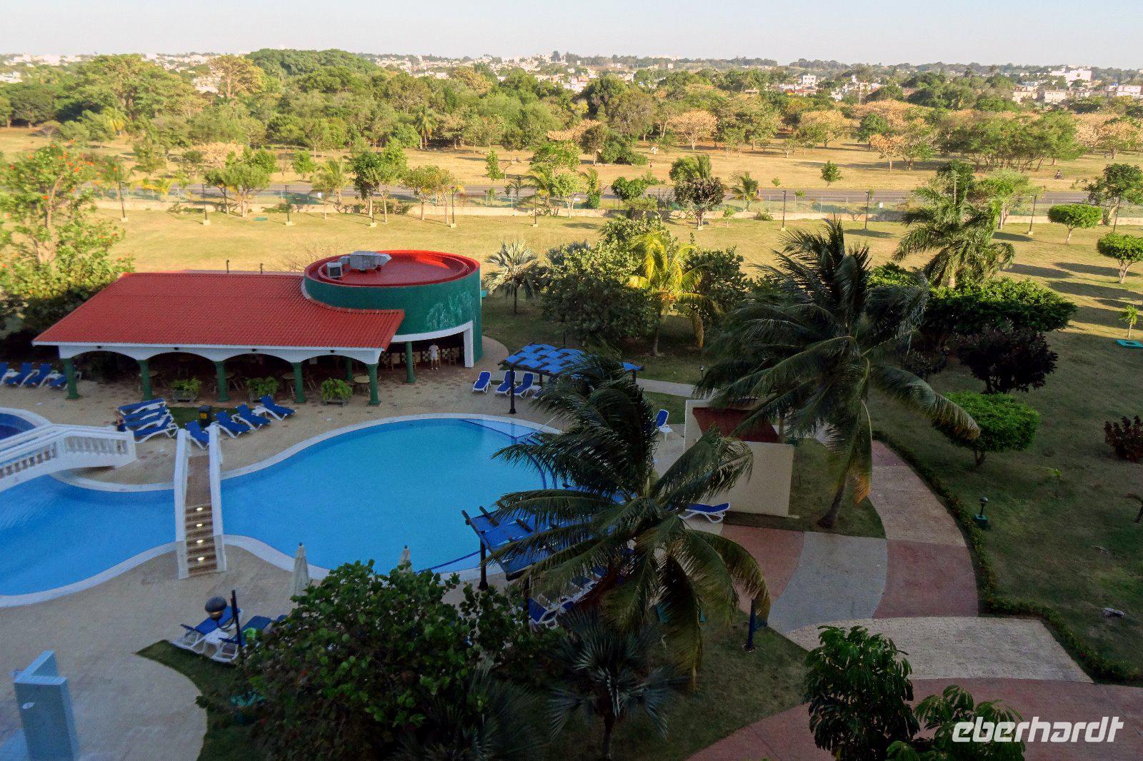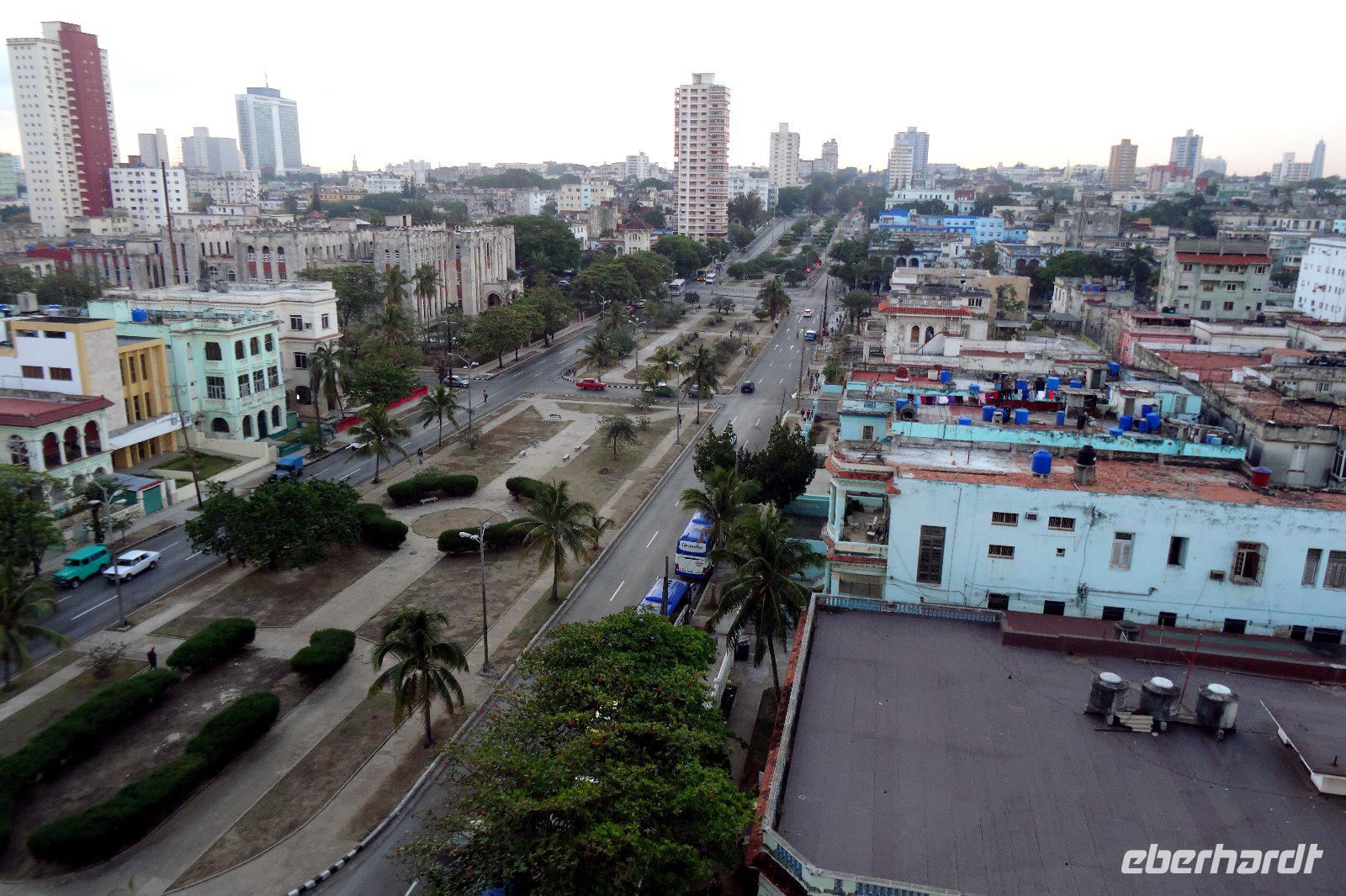 Um noch einen weiteren Stadtteil kennenzulernen fuhren wir nun nach Vedado, einst die unbebaute Schutzzone um Alt-Havanna herum, später das Wohngebiet für betuchte Einwohner der Stadt. Hier besuchten wir eine Bekannte unserer Reisbegleiterin, betrachteten die Wohnung und tranken Kaffee. Danach ging wie immer ein schöner Tag mit einem Drink auf der Terrasse unseres Hotels zu Ende.