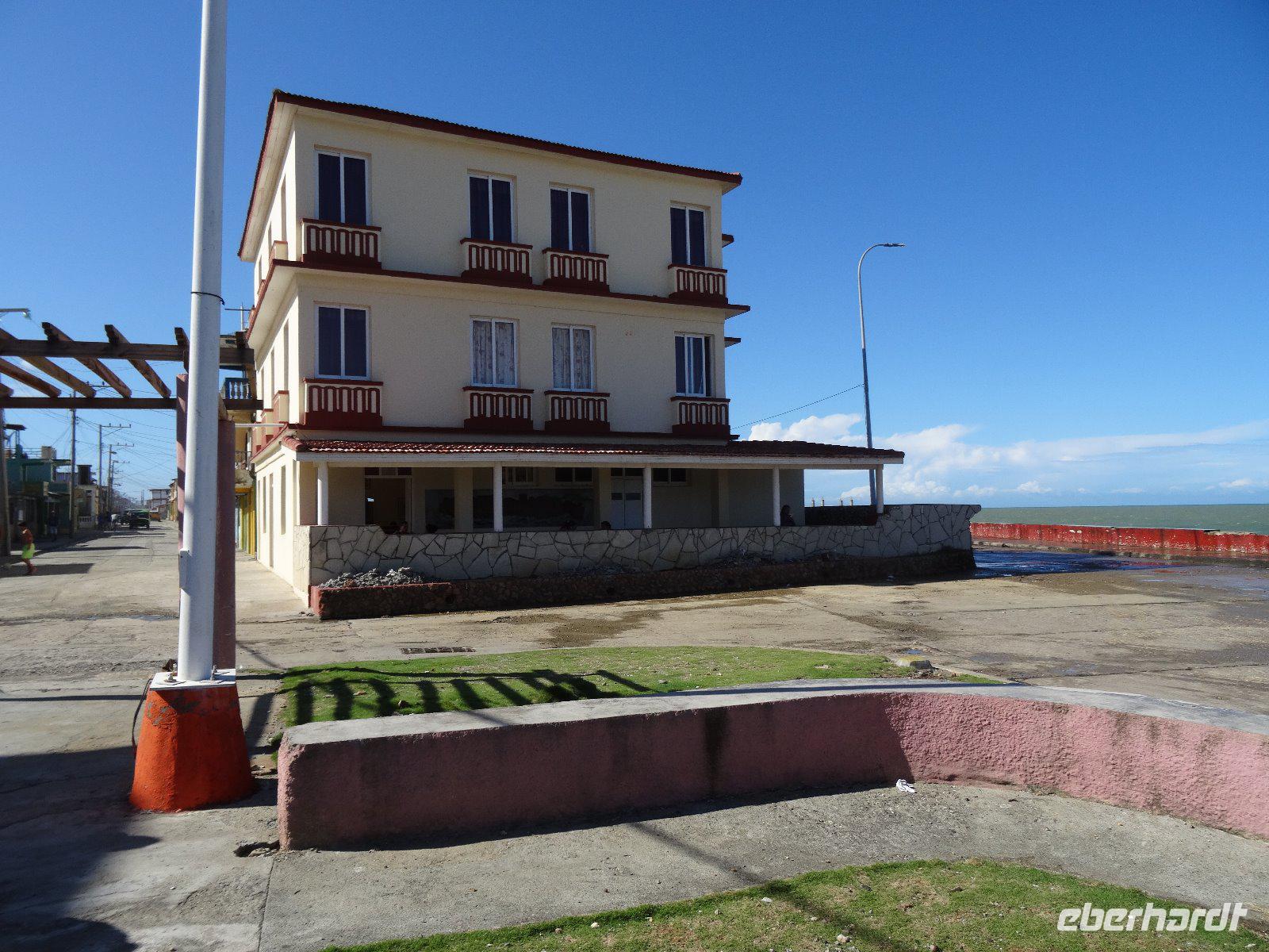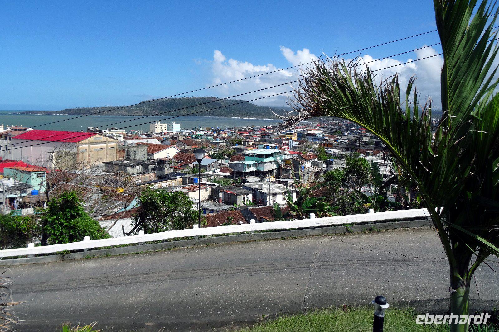 Wir verlassen die Stadt und fahren nun Richtung Baracoa, dem heutigen Tagesziel. Aber auch der Weg ist ein Ziel - es erwartet uns eine schöne Panoramafahrt durchs Gebirge. Aber vorher gibt es noch einen Stop am Aussichtspunkt La Gobernadora und wir riskieren einen Blick auf die US-Marinebasis, es gibt sie seit 1903. Eigentlich sollte der Pachtvertrag nur 100 Jahre bestehen, aber da er nur im gegenseitigen Einvernhemen gelöst werden kann und die USA dies nicht wollen, besteht er noch immer. Nun wird es Zeit für die Weiterfahrt, durch die Trockenregion im Rücken der Sierra Maestra mit ihren zahlreichen Kakteen führt uns der Weg an der Küste entlang. Nach einem Picknick geht es nun endlich in die Berge der Cuchillas del Toa und der Sierra del Purial. Üppig grüne Vegetation und klares Wasser im Überfluss sind die Kennzeichen hier. Nach einer kurvenreichen Bergfahrt erreichen wir das Städtchen Baracoa, die älteste Stadt Kubas und vier Jahre lang die Haupstadt. Die schlechte Verkehrslage führte dann zur Verlegung der Haupstadt erst nach Santiago de Cuba und später nach Havanna.Bei einem Stadtbummel sehen wir das Kreuz, welches Kolumbus am 1.12.1492 hier aufrichtete, sein Denkmal steht am Malecon. Wir steigen hinauf zur Festung und genießen den herrlichen Ausblick auf die Stadt und die Bucht. Noch sind die Schäden, welche der Hurracan Matthew anrichtete, noch nicht vollständig beseitigt, aber das Haus der legendären "Rusa" sieht wieder aus wie neu und in den Gasträumen hängen die verblichenen Fotos der russischen Aristokratin, die zwar vor der russischen Revolution geflohen war, aber in Kuba die Revolutionäre um Fidel unterstützte.