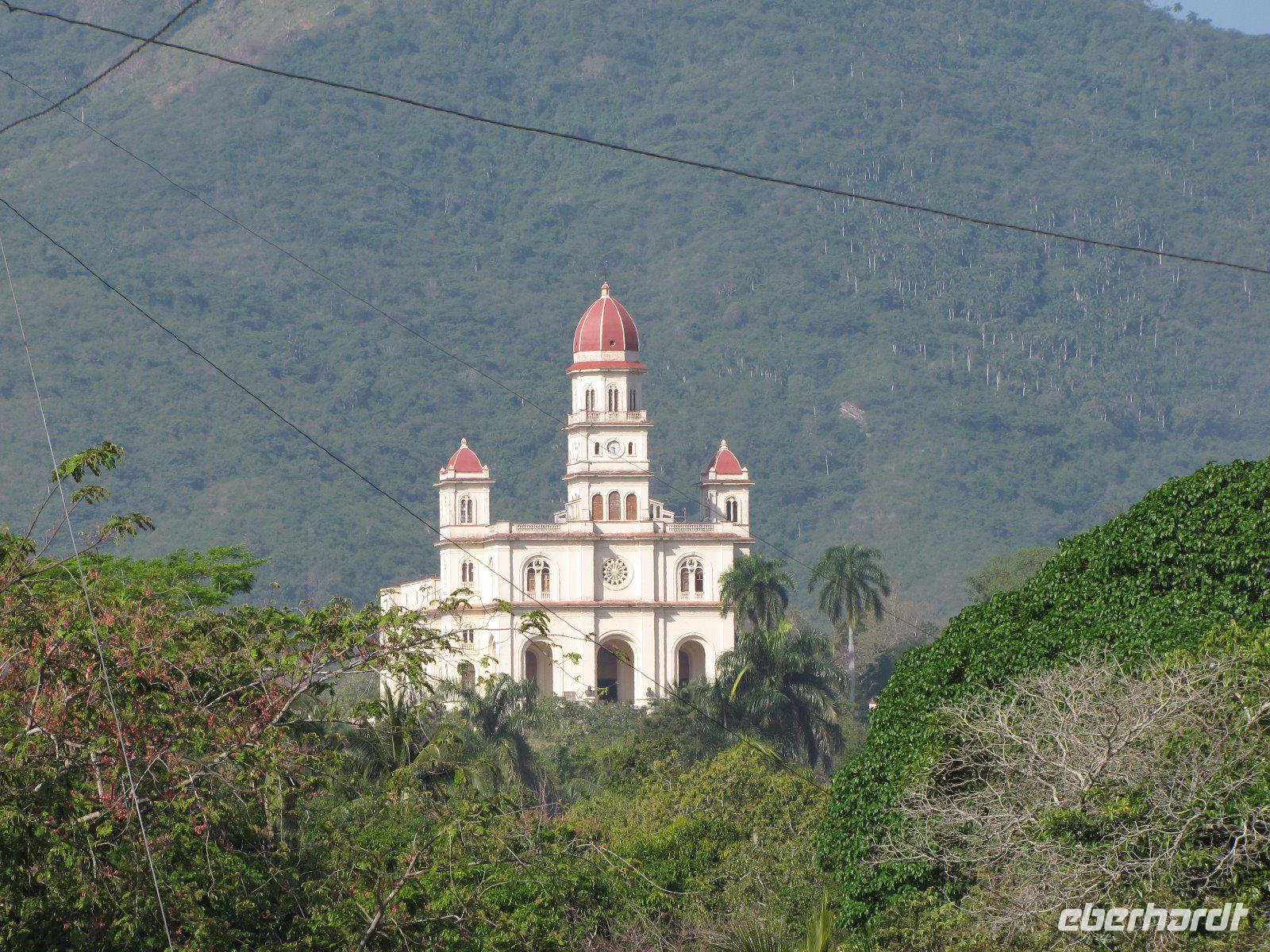 Der nächste Stop ist die Wallfahrtskirche El Cobre, benannt nach der früher hier ausgebeuteten Kupfermine.In dieser Kirche wird die Jungfrau der Barmherzigkeit verehrt, sie ist die Nationalheilige Kubas. Ernest Hemingway hatte ihr seine Nobelpreis-Medaille verehrt, viele Gläubige hinterlegen hier Gaben, um ihre Wünsche oder ihre Dankbarkeit auszudrücken.