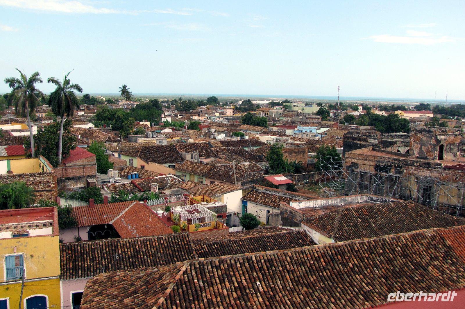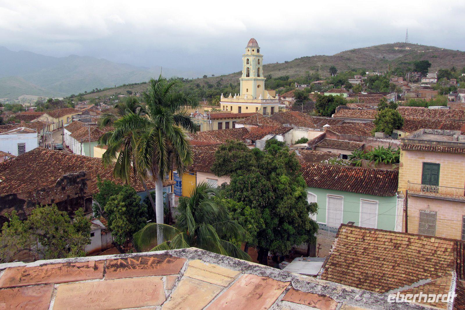 Nun kommt der zweite Teil der Glanzeit aus Kubas Zuckerboom. Wir besuchen die Stadt Trinidad, wandern durch steile kopfsteingepflasterte Gassen, besuchen die Kirche Santisima Trinidad und erklettern den Turm des ehemaligen Klosters San Francisco de Asis. In der Töpferei der Santander -Familie sehen wir zu, wie die Trinkbecher für die regionale Spezialität Canchanchara (Rum, Honig, Zitronensaft, Eis und Wasser) entsehen. Nebenbei schauen wir auch mal in eine Wohnung rein, die an Gäste vermietet wird und sind erstaunt über den Luxus , der hier geboten wird. Man erkennt, diese Menschen in Trinidad leben vom Tourismus.