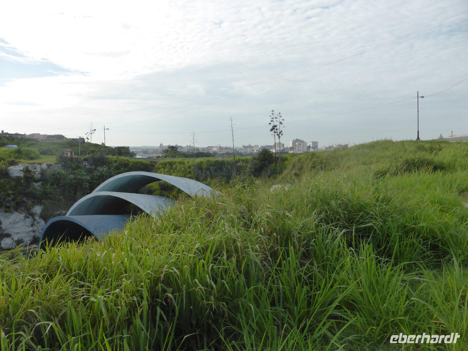 Pepe, unser kubanischer Reiseleiter, und Amilkar, Kubas bester und freundlichster Busfahrer, fahren mit uns hinauf zum Kreuzberg (Loma de la Cruz), hier sind wir 275 m hoch und hätten eigentlich eine sehr schöne Aussicht, aber die Sonneninsel Kuba empfängt uns mit Platzregen. Damit wir nicht zu sehr nass werden, dürfen wir das Restaurant durch die Küche betreten. Wir stärken uns mit einem guten Essen und hören ein wenig kubanische Musik, dann müssen wir weiter, denn das Tagesziel heißt Santiago de Cuba.