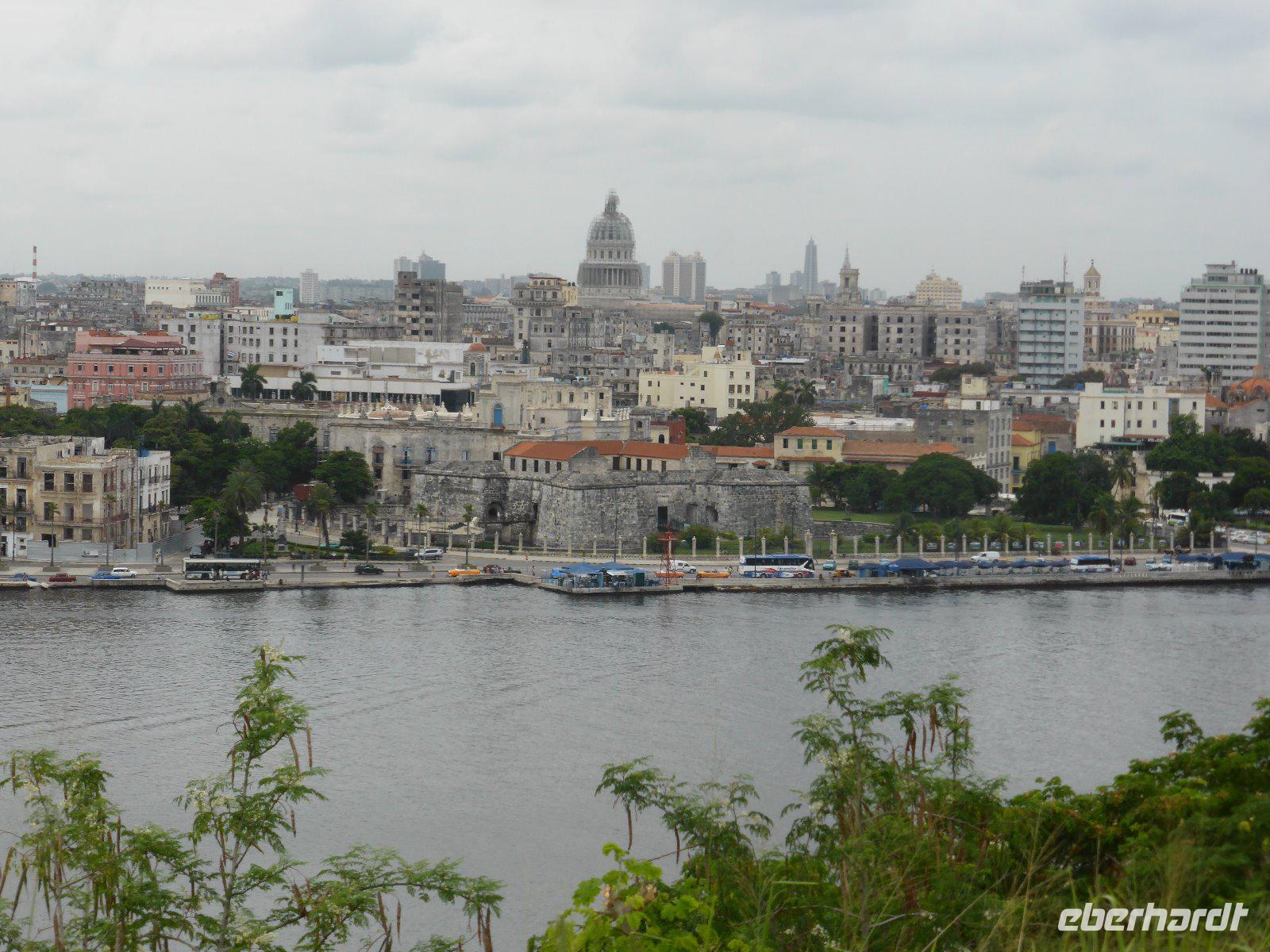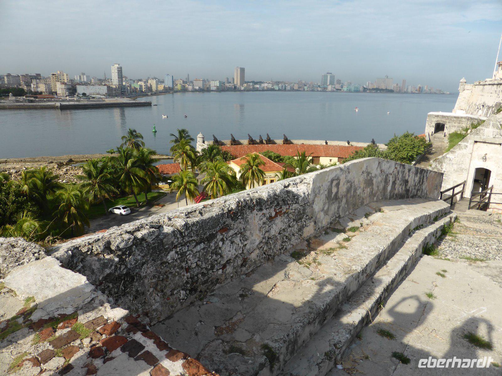Das nächste Ziel ist El Templete, der Gründungsort der Stadt, danach der Palast des Gouverneurs und der seines Stellvertreters, wir betrachten das Holzpflaster und erinnern uns an den Besuch im Botanischen Garten in Cienfuegos. Auf dem Turm der Festung Real Furza sehen wir die Wetterfahne Giradilla, die nun das Wahrzeichen des Rums Havanna Club ist.