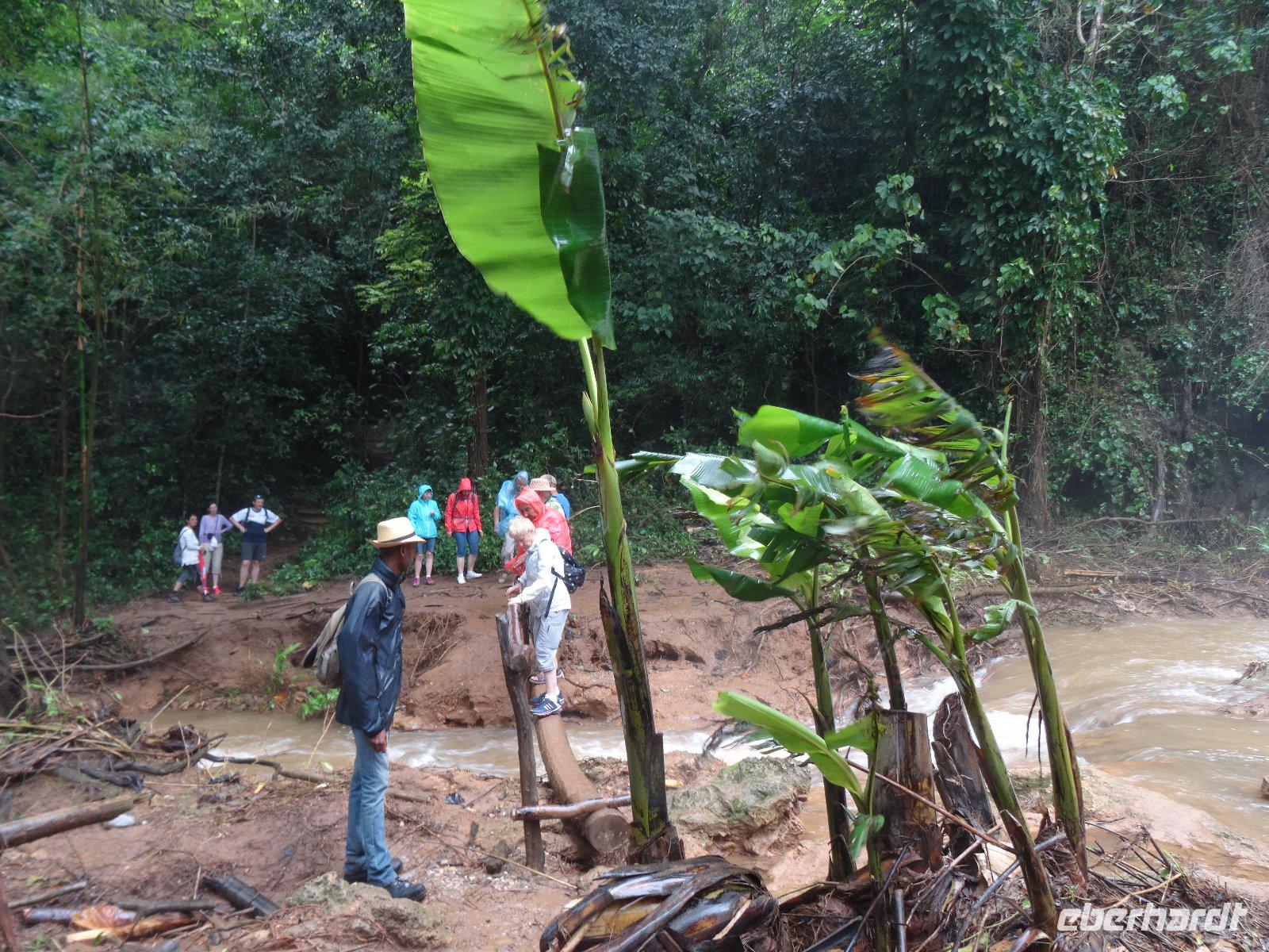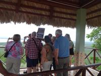 Zunächst schauen wir uns Baracoa an, die älteste Stadt Kubas. Von der Festung Matachin haben wir einen schönen Blick auf die Stadt und die Bucht. Beim Stadtrundgang suchen wir die Kirche mit dem legendären Holzkreuz des Kolumbus auf und gehen durch die engen Straßen und den Boulevard. Leider beginnt es wieder zu regnen, wir flüchten in den Bus und fahren zur Finca Duabe. Hier lernen wir tropische Kultren kennen, vor allem erfahren wir viel über den Kakaoanbau. Unser Führer lädt uns am Schluß zu einem schmackhaften Kakaogeränk ein, es heißt Cachoro und wird mit Kokosmilch bereitet. Wieder regnet es, wir begegnen dem mit dem Cocktail Rio Toa - eine Mischung von Organgensaft und Maracuja, auf Wunsch auch mit Rum. Der Himmel hat ein Einsehen und so können wir die Bootstour auf dem Rio Toa, mit 150 km einem der längsten Flüsse Kubas, wie geplant unternehmen. Ein schmackhaftes Mittagessen mit Suppe aus Bambusrohrschüsseln rundet den Aufenthalt in der Finca ab.