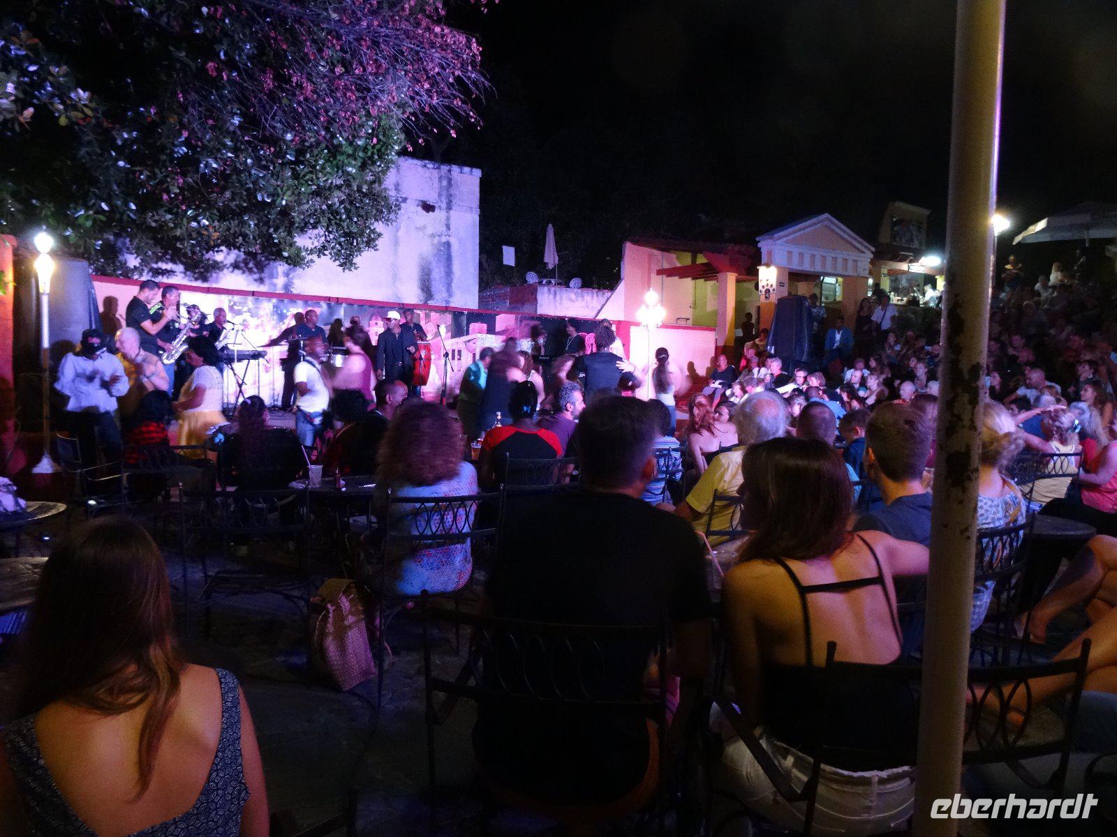 Nun fahren wir in unser Hotel am Strand, nehmen unser Mittagessen ein und erholen uns am Strand. Denn am Abend wollen wir noch einmal in das Nachtleben in Trinidad eintauchen. Nach dem Abendessen fahren wir mit dem Bus wieder in die Stadt und gehen zur singenden Treppe. Wir hören der Musik zu, trinken etwas und einige wagen auch ein Tänzchen.