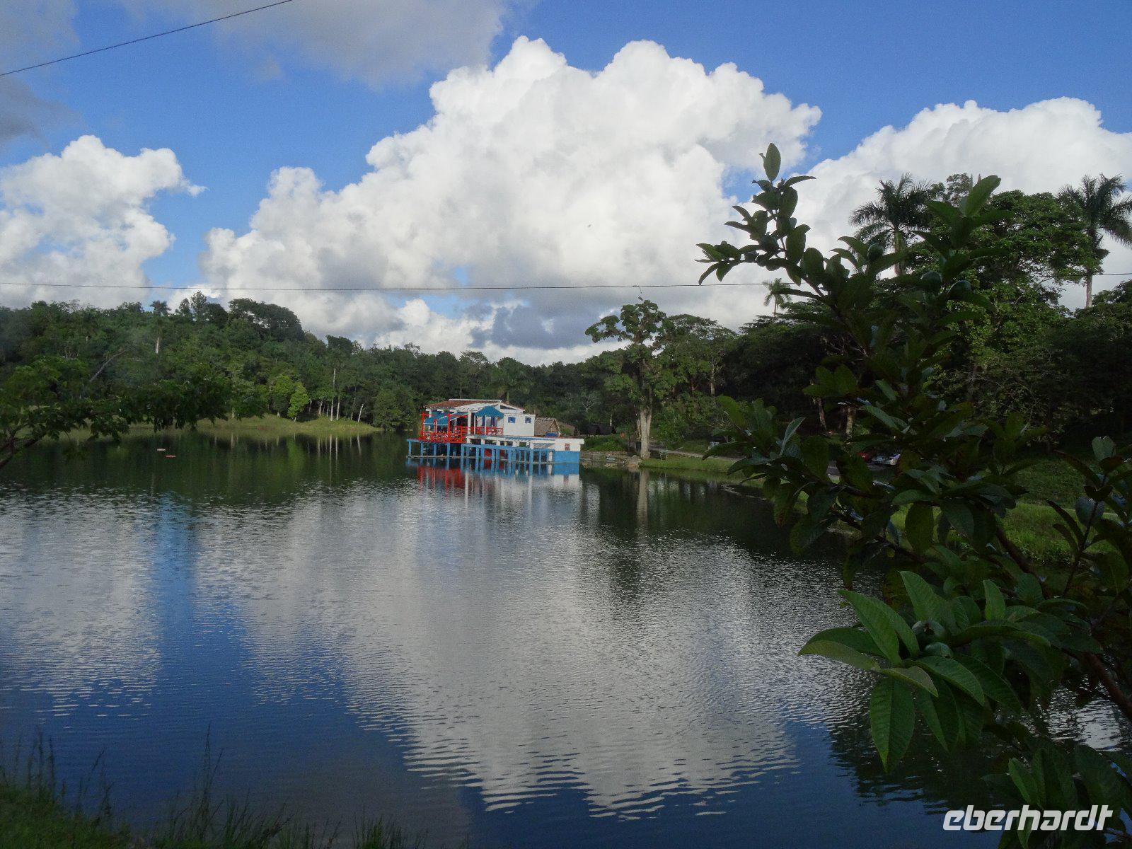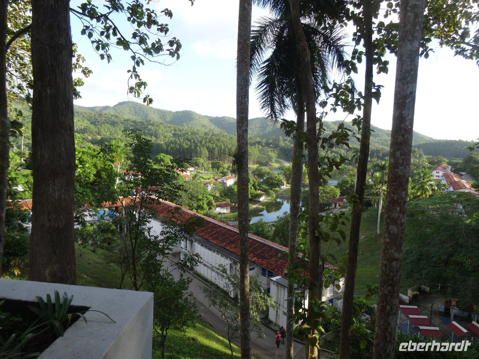 Am Morgen unternehmen wir einen Ausflug in die Welt der Mogotes, der berühmten Karstformationen Kubas. Da gerade kein Andrang herrscht, nutzen wir die Gunst der Stunde für einen zusätzlichen Programmpunkt und unternehmen eine Tour durch die Tropfsteinhöhle "Cueva de los Indios". Mit einem Boot fahren wir auf einem unterirdischen Fluss und am Ausstieg bekommen wir auch endlich auch frischen Zuckerrohrsaft zu kosten. Nun steht der Besuch des Orchideengartens in Soroa auf dem Programm. Der Garten wurde 1943 vom reichen Rechtsanwalt Camacho angelegt, die Orchideensammlung widmete er seiner im Kindbett verstorbenen Tochter. Neben den Orchideen gibt es im Garten viele andere Pflanzenarten (etwa 6000), wie Bromelien, Philodendron, Elefantenfuß, Gummibäume, Yagruma, Brotfruchtbäume, die Korkpalme und Aronstabgewächse. Am Wohnhaus kosten wir frisch gepresste Fruchtsäfte und ruhen etwas aus. Wir essen zu Mittag im Restaurant am Fluss Manantiales und fahren weiter nach Las Terrazas. Das ist eine ökologische Kooperative, die man 1971 gründete, um die Lebensumstände der Landbevölkerung zu verbessern. Terrassenförmig wurden die entwaldeten Hügel aufgeforstet und es wurden ca. 6 Millionen Bäume gepflanzt, vor allem Teak, Kiefern, Zedern und Mahagoni.