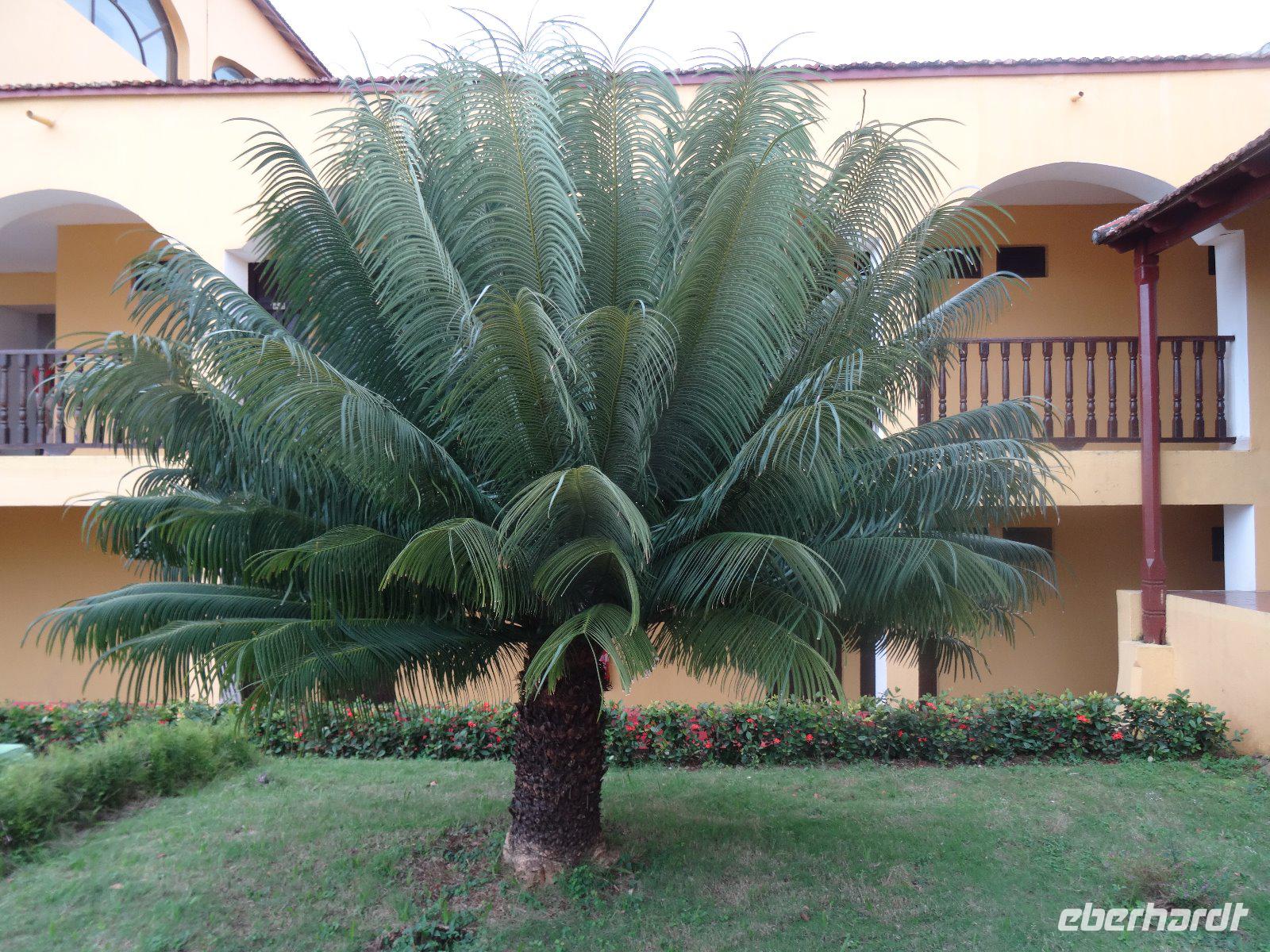 Die Zeit reicht noch für den Besuch des Botanischen Gartens in Cienfuegos. Er wurde 1901 als Versuchspflanzung für Zuckerrohr gegründet, aber bald interessierten den Gründer, den Millionär Atkins, andere tropische Pflanzen mehr und er legte eine Sammlung von Bäumen und Büschen aus vielen tropischen Ländern an. 1919 übergab er die Sammlung der Harvard - Universität, diese zog sich 1961 zurück, seitdem wird die Sammlung von der Akademie der Wissenschaften Kubas gepflegt. Zum Übernachten fahren wir in das Hotel Faro Luna und haben zwar einen schönen Blick auf das Meer, aber der Strand ist felsig und nicht zum Baden geeignet