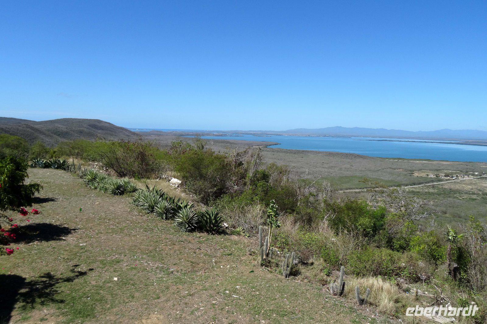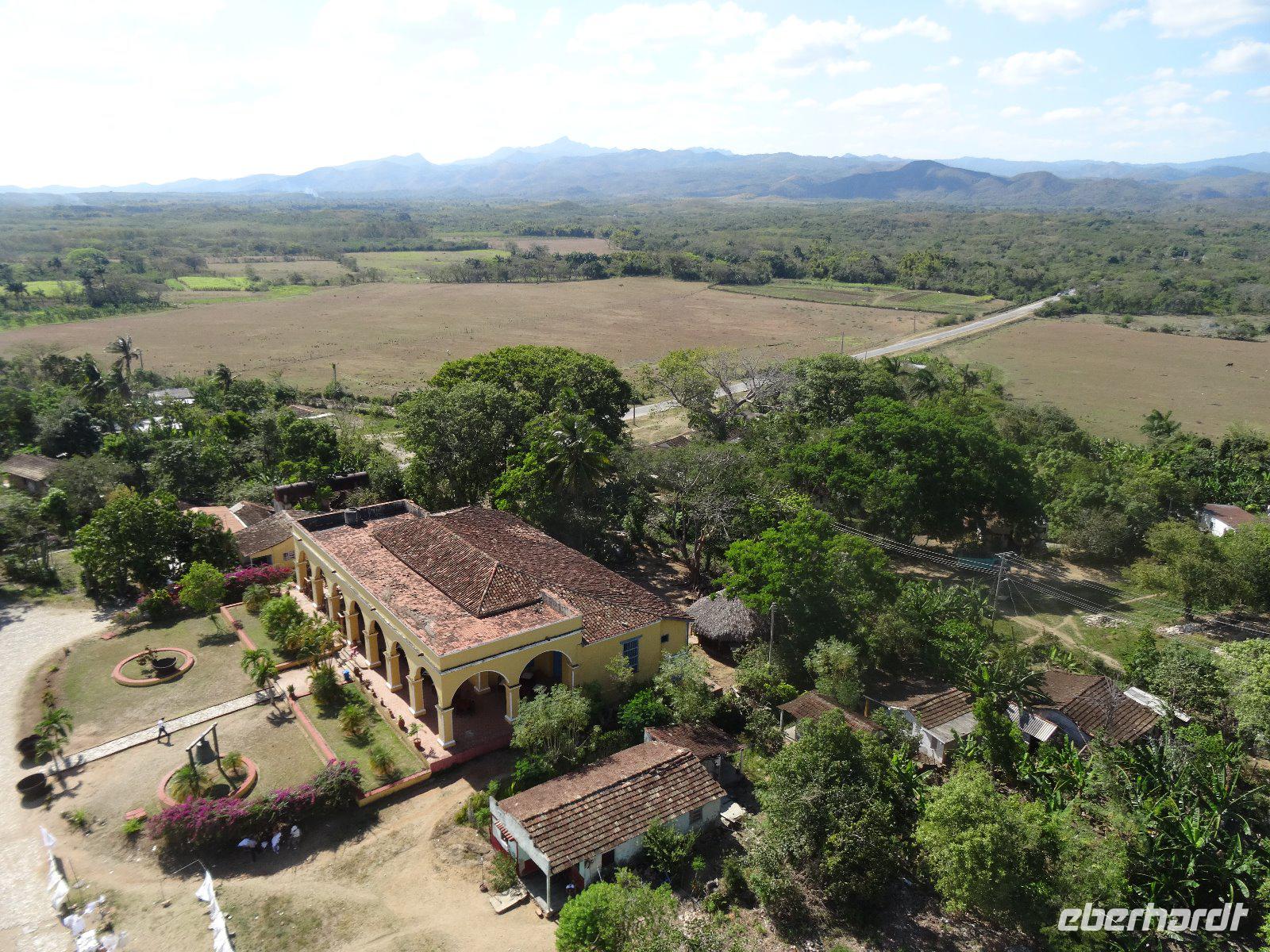 Die Stadt ist nicht so sehr touristisch und so wandern wir zum Fluss Yayabo und besehen die einzige steinerne Bogenbrücke, welche es in Kuba gibt. Im nahegelegenen Restaurant essen wir zu Mittag und trinken die Spezialität Cunyaya (Zuckerrohsaft, Honig, Zitrone, Rum).Bemerkenswert ist die schöne alte Kirche von 1680, auch das frühere Wohnaus des Arztes del Rijo ist ein Foto wert. Um noch weiter in die Geschehnisse um den Zuckerboom einzutauchen, fahren wir nun nach Manaca Iznaga, wo sich das Landhaus der Familie Iznaga befindet. Und natürlich der 46 m hohe Wachturm, der Geschichte nach von einem Sohn der Iznagas errichtet um seine Zukünftige damit zu beeindrucken. Sein Bruder, in die gleiche Frau verliebt, ließ einen ebenso tiefen Brunnen graben. Die Frau entschied sich letztendlich für den Turmbauer. Auch wir entschieden uns für ihn und bestiegen den Turm. Die Mühe wurde mit einer schönen Aussicht belohnt. Im ganzen Tal wurde das Zuckerrohr angebaut und der Zucker ging vom nahegelegenen Hafen in die ganze Welt und begründete so den Reichtum der Stadt Trinidad. Aber wir fahren jetzt erst einmal in das Strandhotel Brisas del Mar auf der Halbinsel Ancon und lassen uns mit Fischgerichten im Restaurant Vigia verwöhnen.
