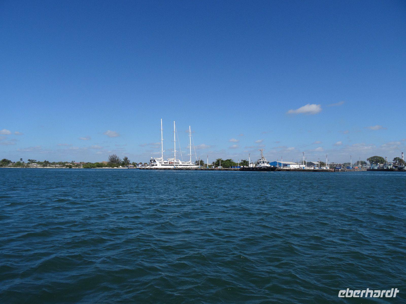 Der Hafen von Cienfuegos befindet sich in einer großen Taschenbucht und ist so gut geschützt. Wir fahren zur Landzunge Punta Gorda mit ihren schönen Villen und dem interessanten Palacio El Valle, den wir natürlich besuchen. Von der Dachterrasse aus kann man die ganze Bucht überblicken und auch die Mischung aller Baustile im Haus bestaunen. Um den Eindruck zu vervollständigen, unternehmen wir eine Fahrt mit dem Boot durch die Bucht von Cienfuegos und lassen die Stadtsilhouette vom Boot aus auf uns wirken. Da eine Seefahrt hungrig macht, gönnen wir uns im Jachtklub eine Mittagspause und fahren so gestärkt nach Santa Clara, um hier das Mausoleum und das Museum für Che Guevara zu besuchen. Die Schlichtheit des Mausoleums, in dem die sterblichen Überreste Che Guevaras und seiner Kampfgefährten ruhen ist beeindruckend.