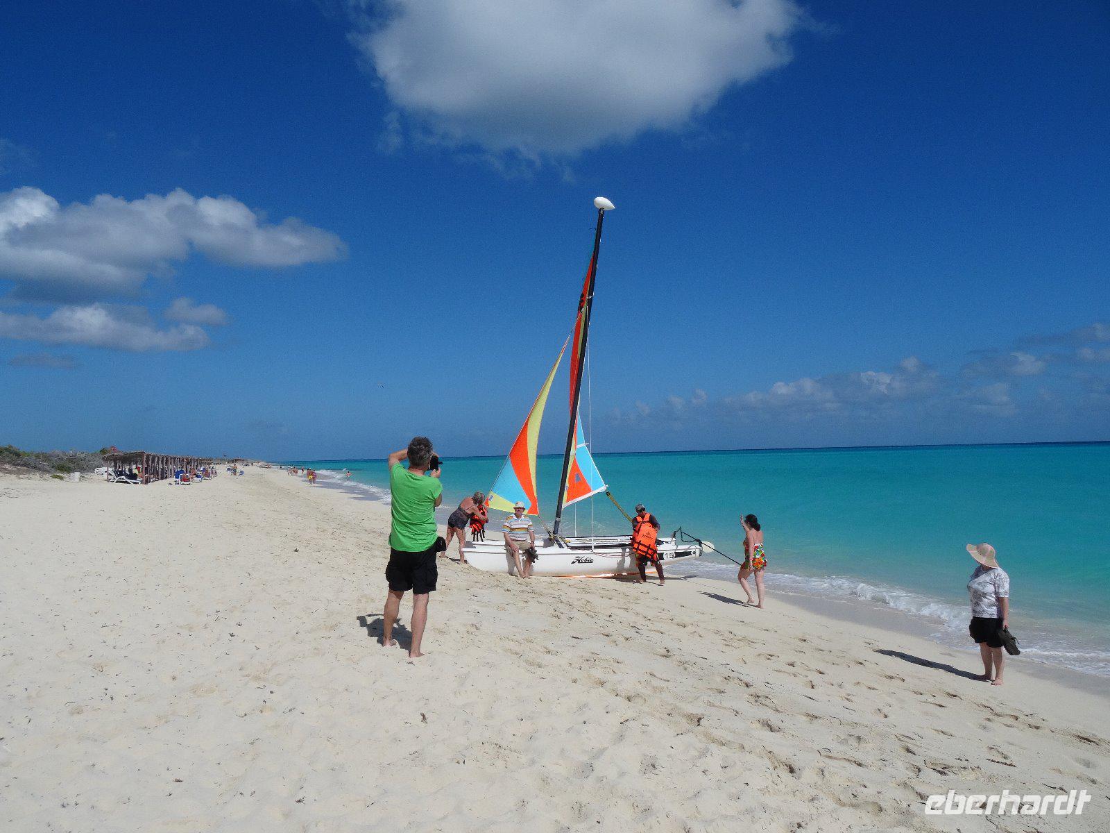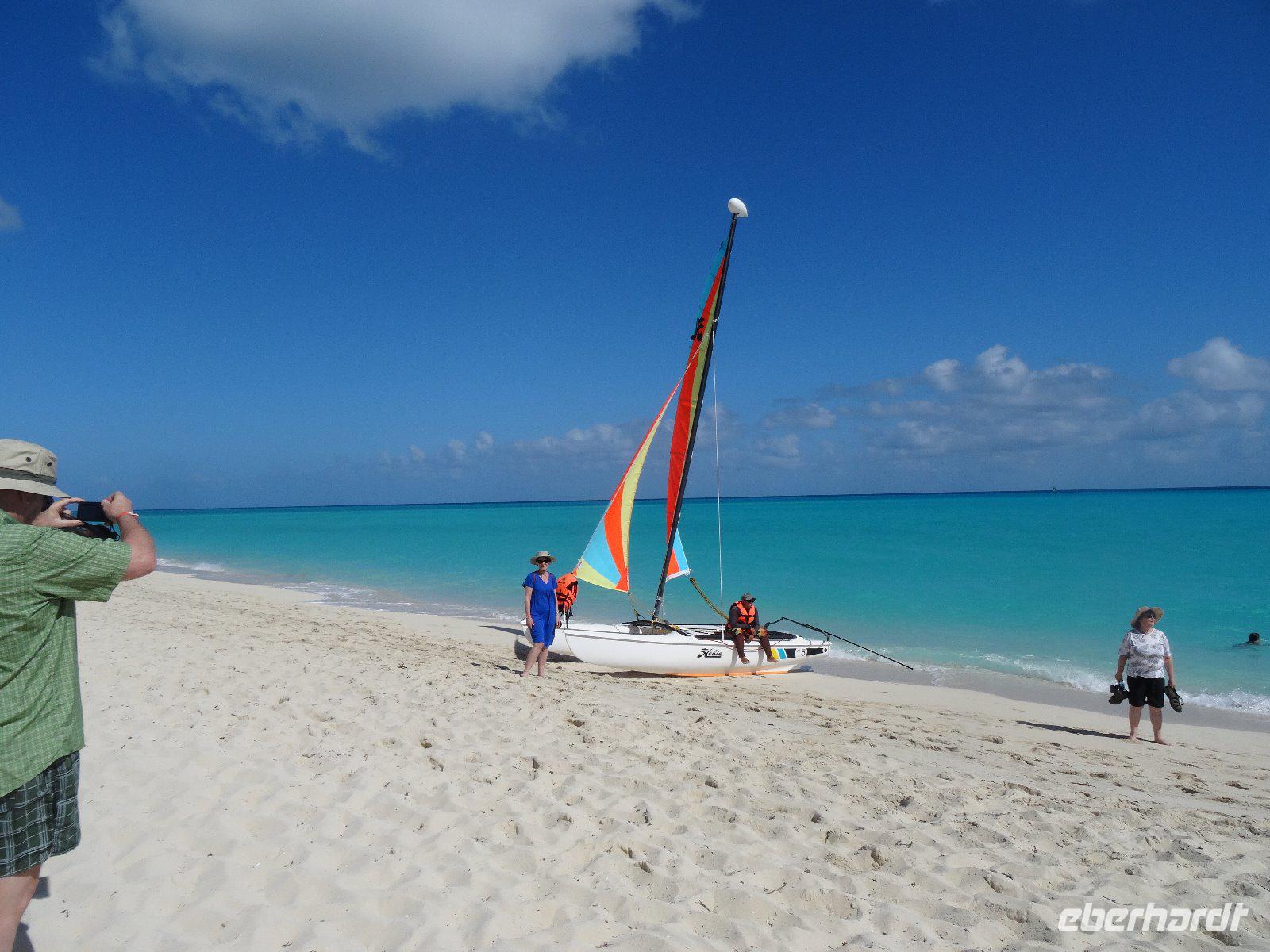 Um nicht nur faul am Strand herumzuliegen, verdienen wir uns das Mittagessen mit einer Wanderung zum Hotel Playa Santa Maria. Dort gibt es eine gut sortierte Zigarrenlongue und wir können uns in aller Ruhe die verschiedenen Zigarrenmarken ansehen und befühlen, hören wie man sie fachgerecht anzündet und probieren natürlich auch gleich. Nach dem Rückweg haben wir Appetit auf das gute Mittagessen vom Büfett entwickelt, danach ist wieder Strand angesagt.