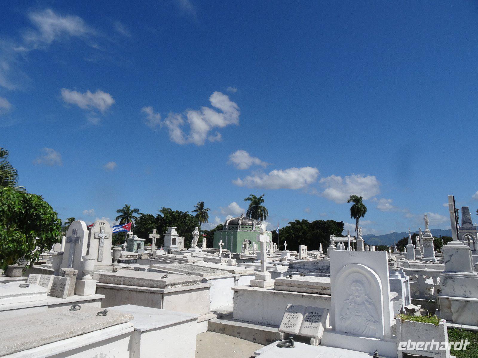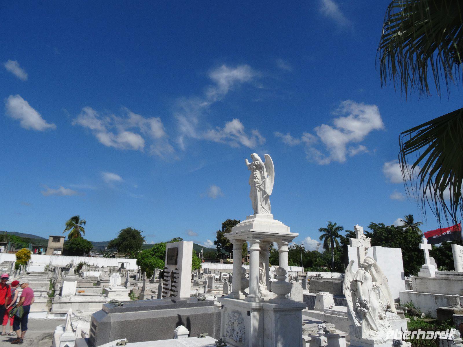 Heute erwartet uns die heimliche Hauptstadt Kubas - Santiago de Cuba. Das erste Ziel ist der Friedhof Santa Ifigenia. Er gehört zu den schönsten Friedhöfen der Insel, hier sind José Marti, Carlos Manuel de Cespedes und Fidel Castro begraben. Wir sehen auch die Gräber der Bacardi-Familie und das von Compay Segundo. Nachdem wir noch den Wachwechsel beobachtet haben, verlassen wir den Friedhof und besuchen die Festung El Morro. Sie wurde 1640 vom Baumeister Antonelli errichtet. Seit 1978 ist sie ein Museum und man erfährt hier etwas über die Piraten. Wir jedoch stärken uns mit einem guten Mittagessen und genießen den schönen Blick auf die Bucht.