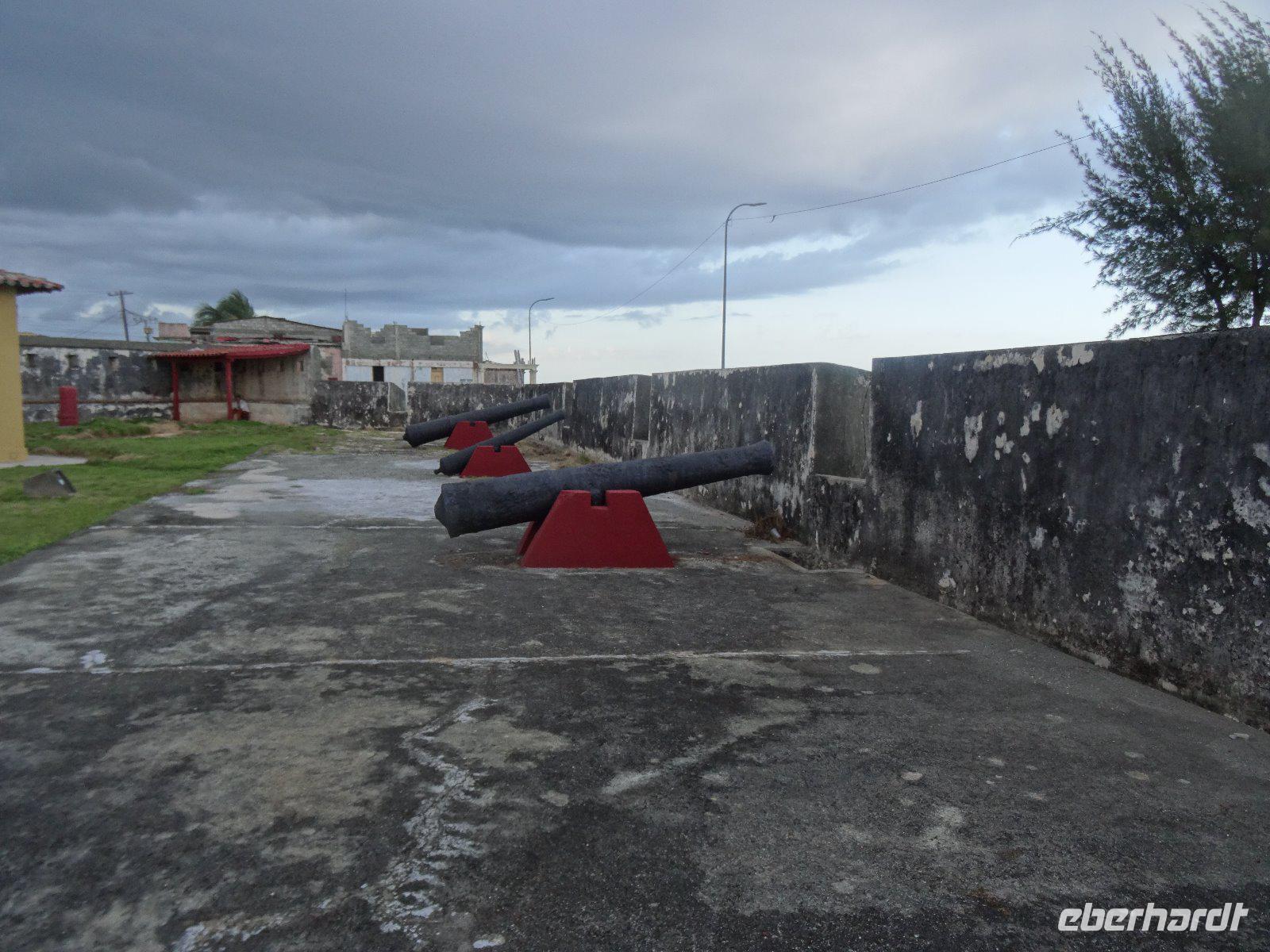 Nun geht unsere Fahrt Richtung Westen, nach kurzer Fahrt gibt es den ersten Halt an der Wallfahrtskirche El Cobre. Wir statten der Nationalheiligen Kubas einen Besuch ab und hören noch ein Stück von der Sonntagsmesse. Dann geht es weiter bis Bayamo, hier entstand die Nationalhymne Kubas, die Bayamesa. Die Stadt trägt den Beinamen die Heldenhafte, weil ihre Bewohner während des Unabhängigkeitskrieges lieber die Stadt abbrannten, als sie den Spaniern zu überlassen. Schnell noch ein Foto vom Denkmal des Carlos Manuel de Cespedes, der hier geboren wurde und dann geht es weiter Richtung Camagüey. Vorher gibt es einen Stopp an der Raststätte La Redonda und am Nachmittag haben wir Camagüey erreicht. Die Fahrradtaxis erwarten uns schon und es folgt eine für uns recht bequeme Stadtrundfahrt. Wir besuchen die wichtigen Plätze und Kirchen und besonders der Platz Carmen erfreut uns mit den lebensgroßen Figuren aus dem Alltagsleben der Stadt. Schnell wird es dunkel und so begeben wir uns zum Hotel "Santa Maria", checken ein und laufen dann durch die verwinkelten Gassen zum Restaurant "1800", um dort zu Abend zu essen.