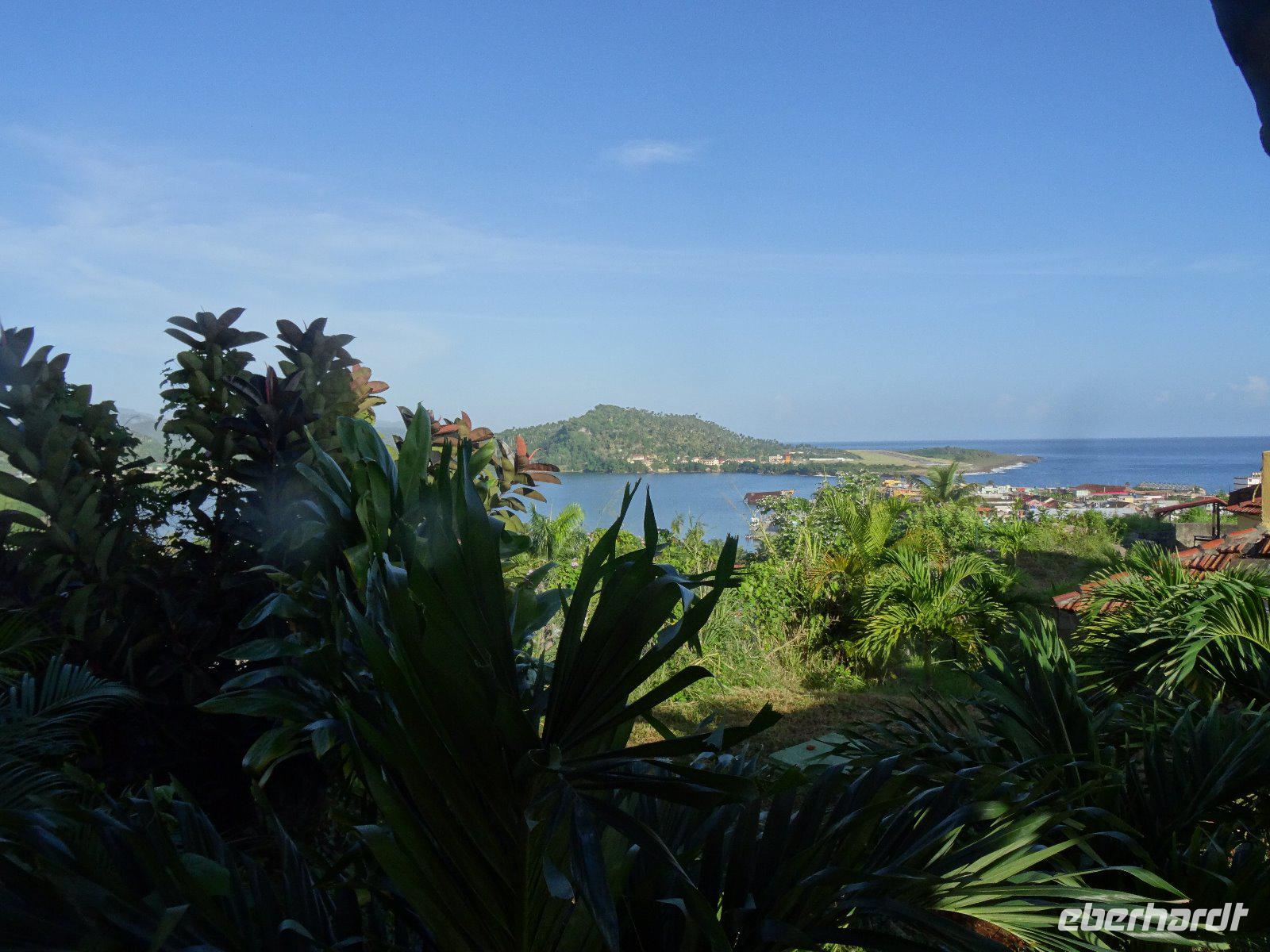 Es erwartet uns eine schöne Fahrt über Guantanamo über die Bergstraße La Farola nach Baracoa, der ältesten Stadt Kubas. Der erste Halt erfolgt am Aussichtspunkt La Gobernadora, von dort aus kann man in der Ferne den US-Stützpunkt sehen, er ist wie eine Siedlung mit allen Erfordernissen ausgestattet. Das folgende Trockengebiet um Imias ist bekannt für die vielen Kakteen, die hier wachsen. An einer kleinen Bucht befindet sich ein Rastplatz und hier verzehren wir den Inhalt unserer Lunchbox, trinken dazu Kaffee und natürlich auch einen Rum. Die Fahrt führt nun in die Berge der Sierra Purial und wir bewundern das beeindruckende Panorama und die üppige Pflanzenwelt. In Baracoa fahren wir zum Malecon, dort gibt es die Festung Matachin und auch ein Standbild des Entdeckers Kubas, Christoph Kolumbus. Die Kirche mit dem Kreuz des Kolumbus ist leider geschlossen und so wandern wir ein wenig durch das Städtchen und checken dann im Hotel Castillo ein. Die Lage hoch oben über der Stadt ist wunderschön und wir genießen den Anblick und erfrischen uns im Hotelpool.