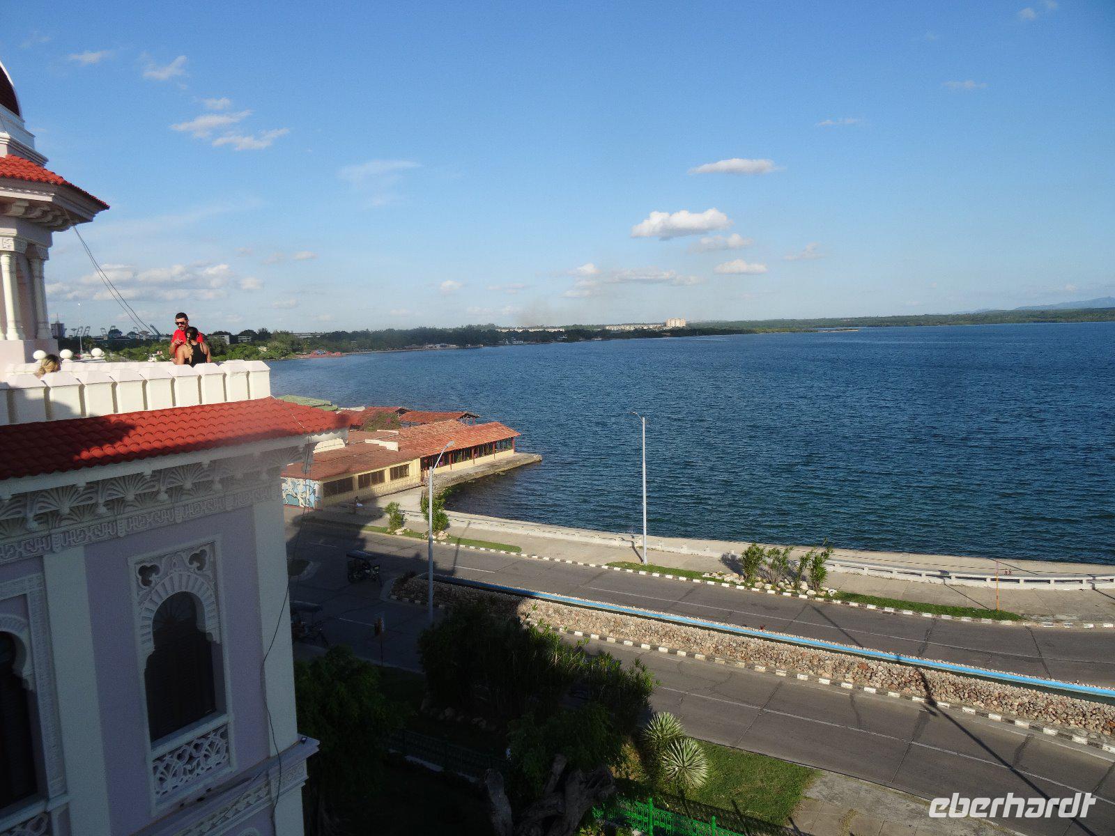 Den "Abenddrink" nehmen wir in Cienfuegos auf der Dachterrasse des Palastes del Valle, benannt nach seinem Gründer, dem Zuckerbaron Acisclo del Valle Blanco. Die drei Türme des Gebäudes in ihrer wunderlichen Mischung aus Gotik, Barock und Mudejar-Stil stellen die Macht, Religion und Liebe dar.