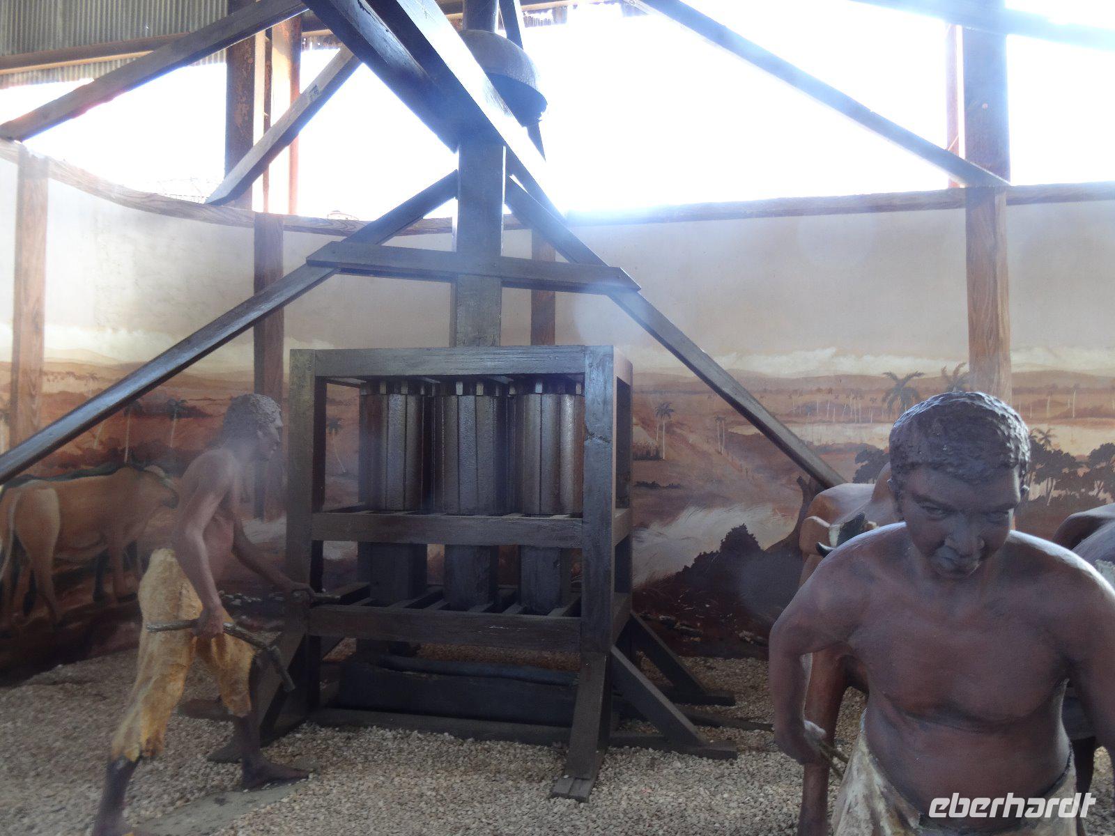 Noch haben wir einen weiteren Programmpunkt und so brechen wir auf, obwohl noch viel zu erzählen wäre. Wir fahren in eine ehemalige Zuckerfrabrik in Caibarien, Marcello Salado. Sie ist heute ein Museum und wir können anschaulich die Zuckergewinnung nachverfolgen. Besonders beeindruckend ist der Park mit vielen alten Lokomotiven, welche hier nun ihren letzten Standort gefunden haben.