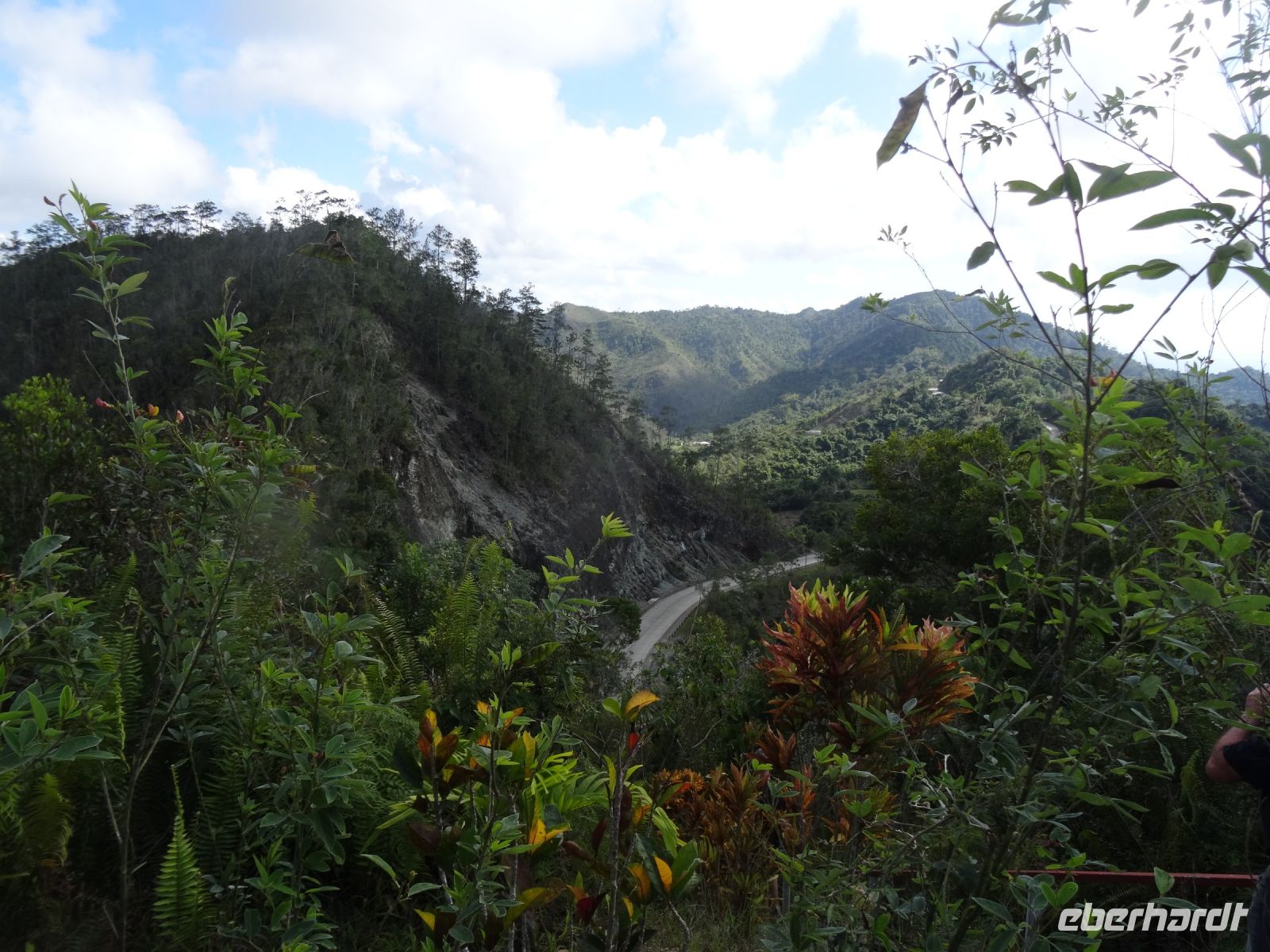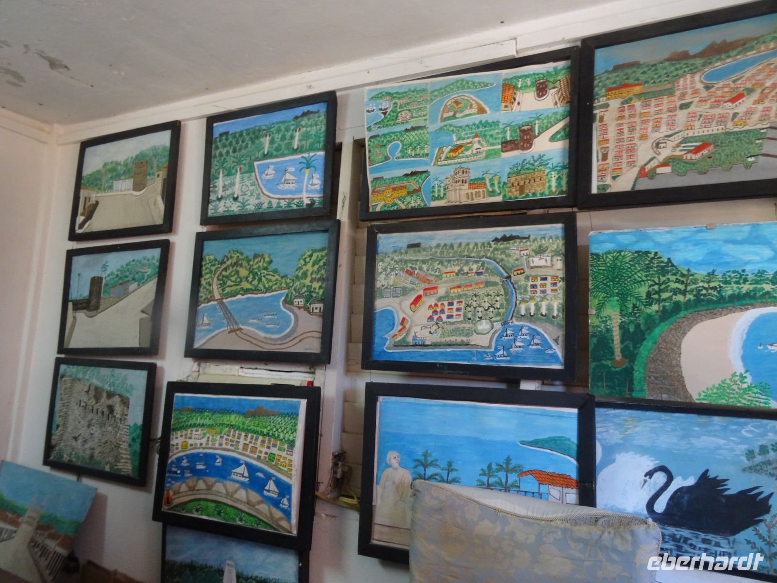 Wir laden unsere Picknickvorräte ein und es beginnt ein neuer Reisetag. Der erste Halt erfolgt in Guantanamo, weltbekannt durch den Militärstützpunkt der Amerikaner in der Bucht von Guantanamo. Er besteht seit 1903 und die Amerikaner halten den Pachtvertrag auch nach Ablauf der vorgesehenen 99 Jahre weiterhin aufrecht. Vom Aussichtspunkt La Gobernadora werfen wir einen Blick in Richtung Stützpunkt und dann geht es weiter an der Küste entlang Richtung Berge. Hier ist es sehr trocken und es wachsen vor allem Kakteen auf dem kargen Boden. Kurz vor Beginn der Bergstraße machen wir Halt am kleinen Rastplatz La Chivera. Hier bekommen wir Kaffee und können unsere Sandwiches essen, auf das Meer schauen und uns auf die kommende Bergfahrt einstellen. Die Fahrt über die Farola führt uns durch die Sierra de Purial nach Baracoa. In vielen Serpentinen windet sich die Straße durch die Berge, sie ist die einzige Zufahrt nach Baracoa und wurde erst nach der Revolution erbaut. Baracoa ist die älteste Stadt Kubas und war zeitweilig seine Hauptstadt, musste aber diese Funktion sehr bald an Santiago de Cuba abgeben. Wir freuen uns nach der langen Fahrt über etwas Bewegung und laufen am Malecon entlang Richtung Kirche. Leider ist sie geschlossen, ebenso das kleine Museum der Festung Matachin. Dafür besuchen wir den Ziehsohn der legendären Einwohnerin Baracoas, der "Rusa" in seinem Atelier. Er erzählt uns vom Leben seiner Stiefmutter und wie sie mit ihrem Geld die Revolutionäre unterstützte. Das Denkmal des Indianerhäuptlings Hatvey erinnert an das grausame Schicksal der kubanischen Ureinwohner, die von den Spaniern ausgerottet wurden.