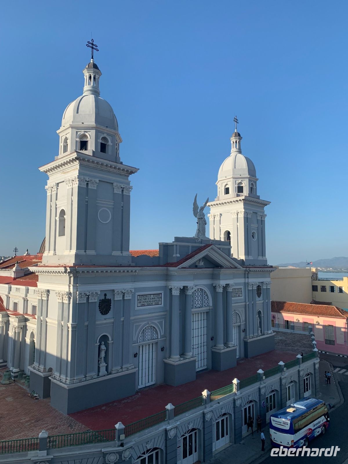 In Santiago de Cuba angekommen, begeben wir uns zunächst zum Friedhof Santa Ifigenia. Er ist der zweitgrößte Friedhof Kubas und hier ruhen eine Reihe bedeutender Persönlichkeiten, wie z.B. der Nationaldichter José Marti, der 1. Präsident Kubas, Estrada Palma, Carlos Manuel de Cespedes aber auch der Musiker Compay Segundo, die Familie der Rumdynastie Bacardi und viele mehr. 2016 wurde Fidel Castro in einem Wagen von Havanna hierher gebracht. Nachdem wir noch die zackige Wachablösung bewundert haben, ging es zur gut erhaltenen Festung San Pedro de la Roca del Morro. von hier hat man einen herrlichen Blick in die Bucht von Santiago. Den hat man auch vom nebenan gelegenen Restaurant, in dem wir ein gutes Mittagessen einnahmen. Frisch gestärkt unternahmen wir noch einen Innenstadtbummel und besuchten das Wohnhaus des ersten Gouverneurs der Insel, Diego Velazquez. Prächtige Möbel und andere Gegenstände zeugen vom Reichtum des Gouverneurs. Danach bezogen wir unser Hotel "Casa Granda" und fuhren anschließend zu einem guten Abendessen im Restaurant "La Terraza de Caridad" mit einer Kaffeezeremonie und einer Tanzvorführung. Damit ging ein interessanter Tag zu Ende.